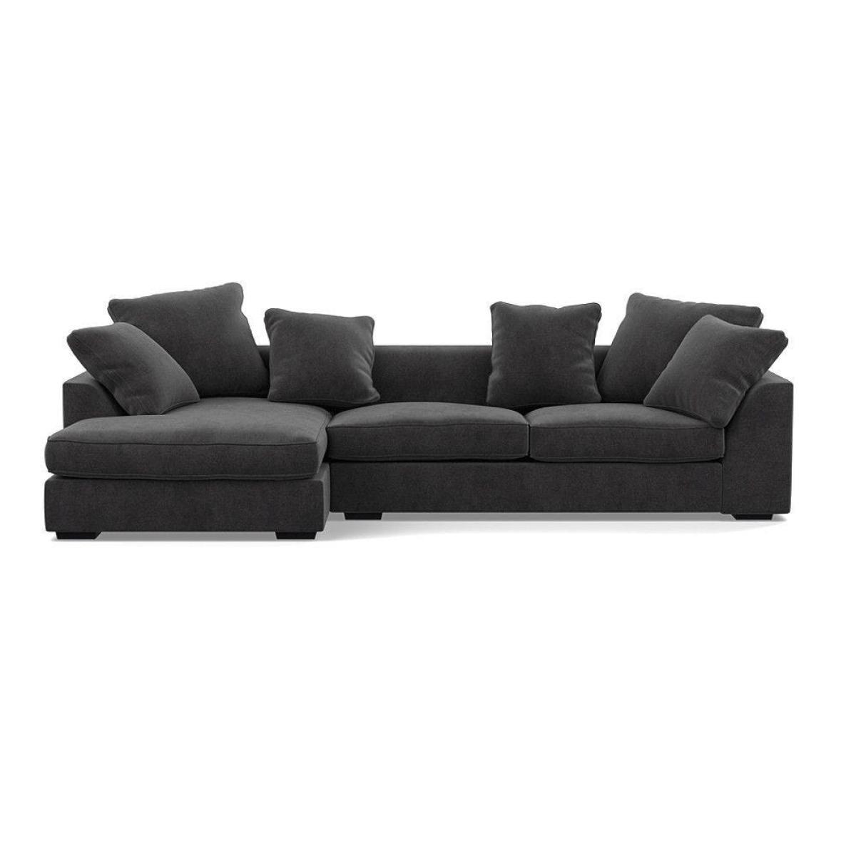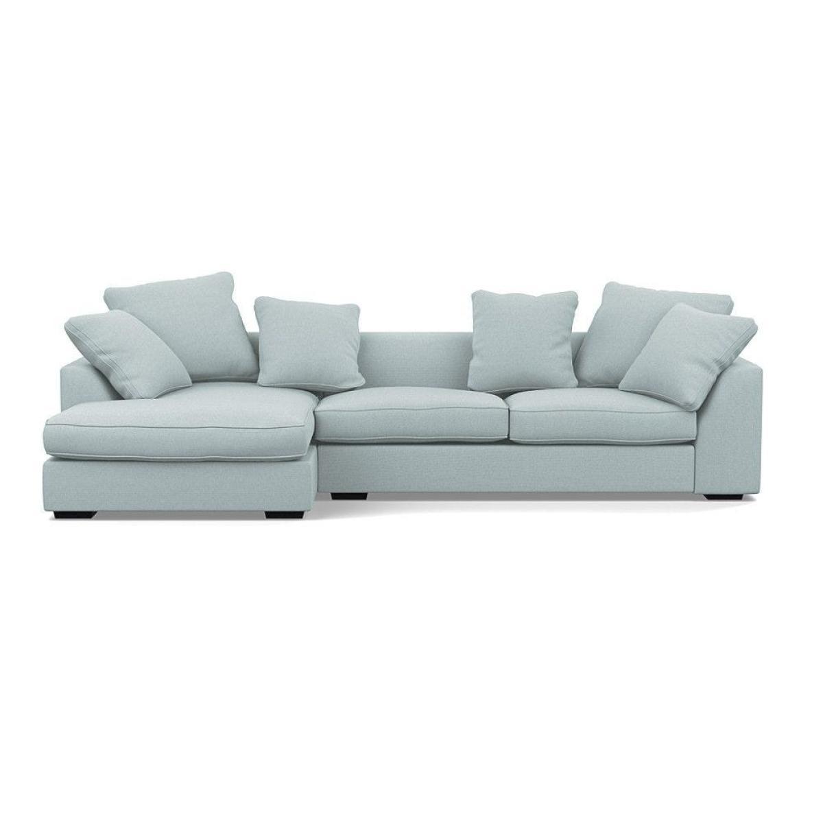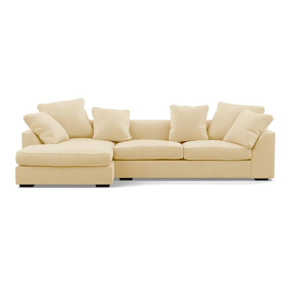 Immerse yourself in the Cumulus, a sumptuously designed piece that gives landscape to your living room. Providing plentiful space and comfort, the simple curves of this inviting corner sofa are accented by large scatter cushions and a built-in chaise longue that allows for a full recline. A soothing, contemporary design, the Cumulus has deep feather filled seats, serpentine sprung base and an extended chaise for optimum support. Slender back cushions feature double piping around their border and can be rearranged to suit your interior scheme. Made from a robust solid wood frame, the straight lines and edging of the Cumulus are contrasted by sloping curves that run along the top of its arms and backrest, while other more subtle details include hidden feet that provide a soft, floating feel.