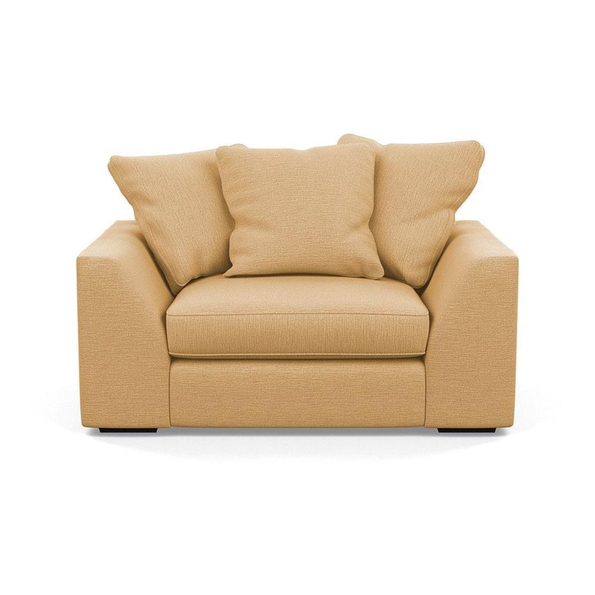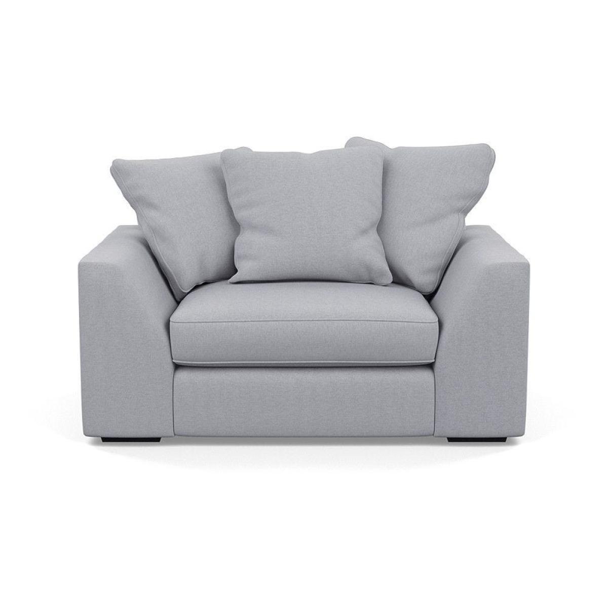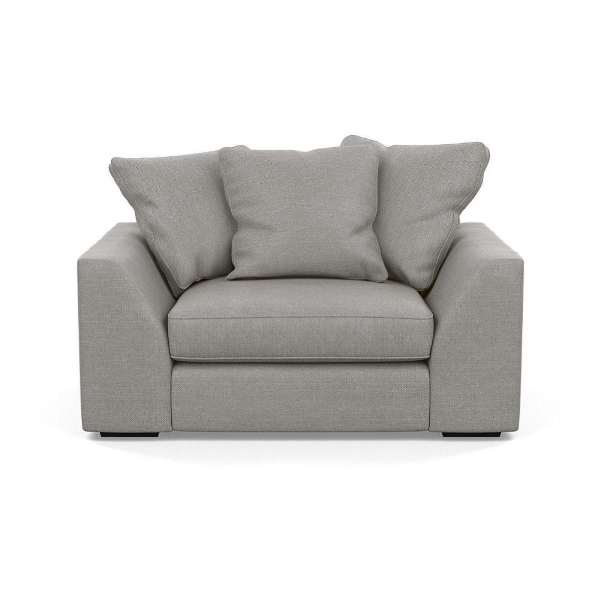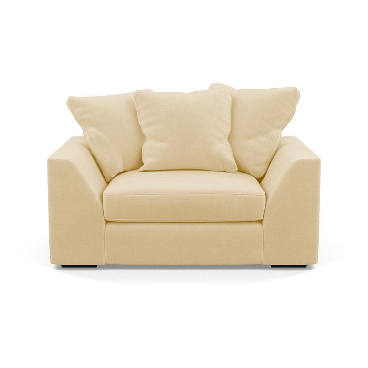 Immerse yourself in the Cumulus, a sumptuously designed piece that gives landscape to your living room. Providing plentiful space and comfort, the simple curves of this inviting loveseat are accented by large scatter cushions that can be arranged to suit the mood. A soothing, contemporary design, the Cumulus has deep feather filled seats, serpentine sprung base for optimum support. Slender back cushions feature double piping around their border and can be rearranged to suit your interior scheme. Made from a robust solid wood frame, the straight lines and edging of the Cumulus are contrasted by sloping curves that run along the top of its arms and backrest, while other more subtle details include hidden feet that provide a soft, floating feel.