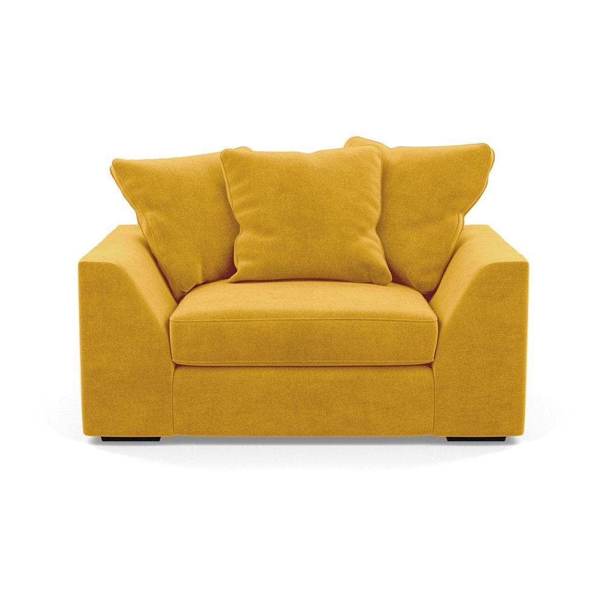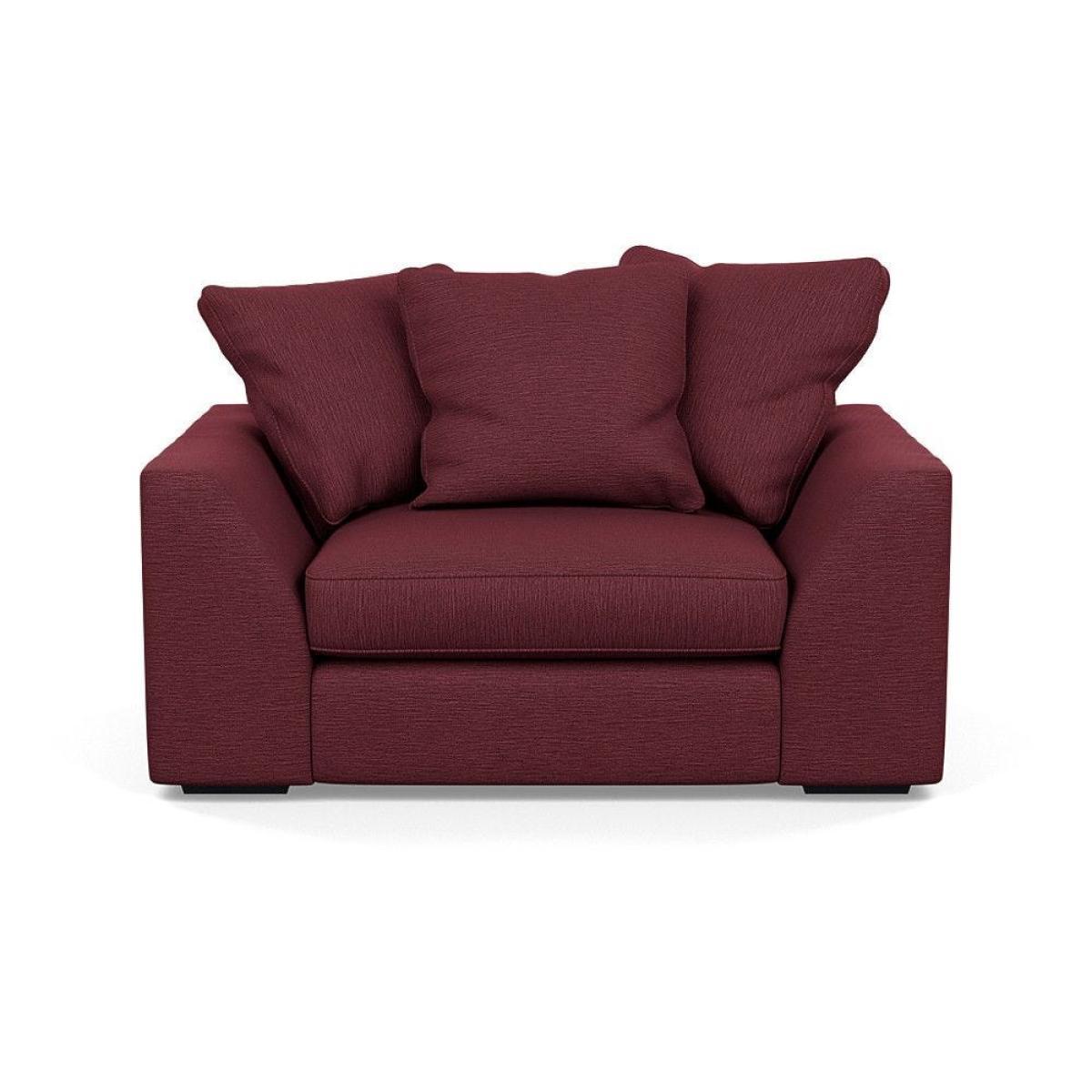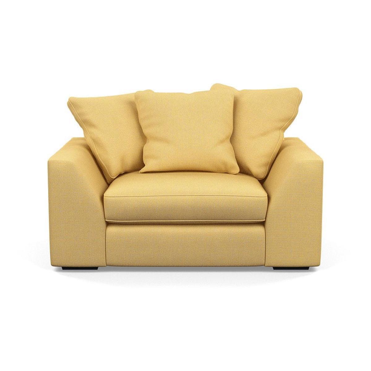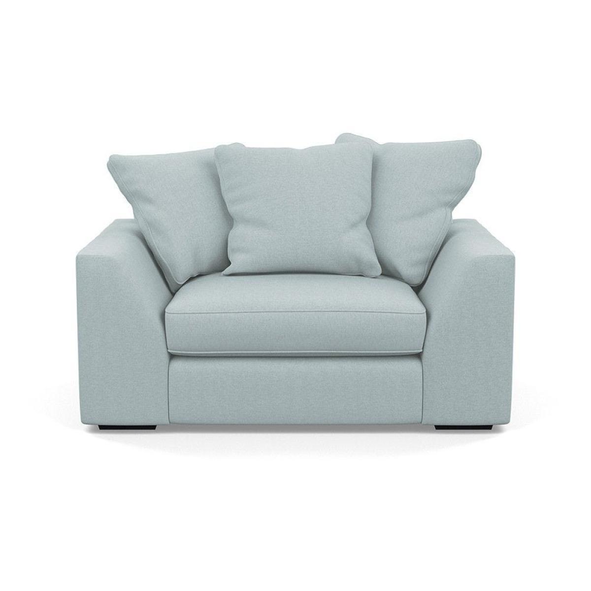Immerse yourself in the Cumulus, a sumptuously designed piece that gives landscape to your living room. Providing plentiful space and comfort, the simple curves of this inviting loveseat are accented by large scatter cushions that can be arranged to suit the mood. A soothing, contemporary design, the Cumulus has deep feather filled seats, serpentine sprung base for optimum support. Slender back cushions feature double piping around their border and can be rearranged to suit your interior scheme. Made from a robust solid wood frame, the straight lines and edging of the Cumulus are contrasted by sloping curves that run along the top of its arms and backrest, while other more subtle details include hidden feet that provide a soft, floating feel.