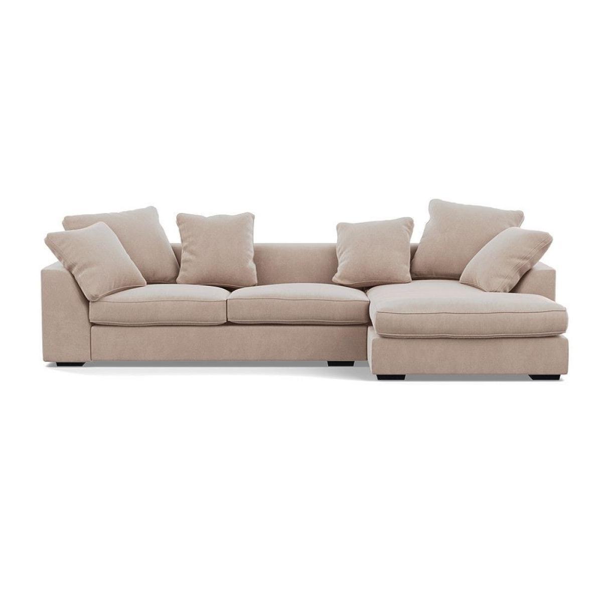 Immerse yourself in the Cumulus, a sumptuously designed piece that gives landscape to your living room. Providing plentiful space and comfort, the simple curves of this inviting corner sofa are accented by large scatter cushions and a built-in chaise longue that allows for a full recline. A soothing, contemporary design, the Cumulus has deep feather filled seats, serpentine sprung base and an extended chaise for optimum support. Slender back cushions feature double piping around their border and can be rearranged to suit your interior scheme. Made from a robust solid wood frame, the straight lines and edging of the Cumulus are contrasted by sloping curves that run along the top of its arms and backrest, while other more subtle details include hidden feet that provide a soft, floating feel.