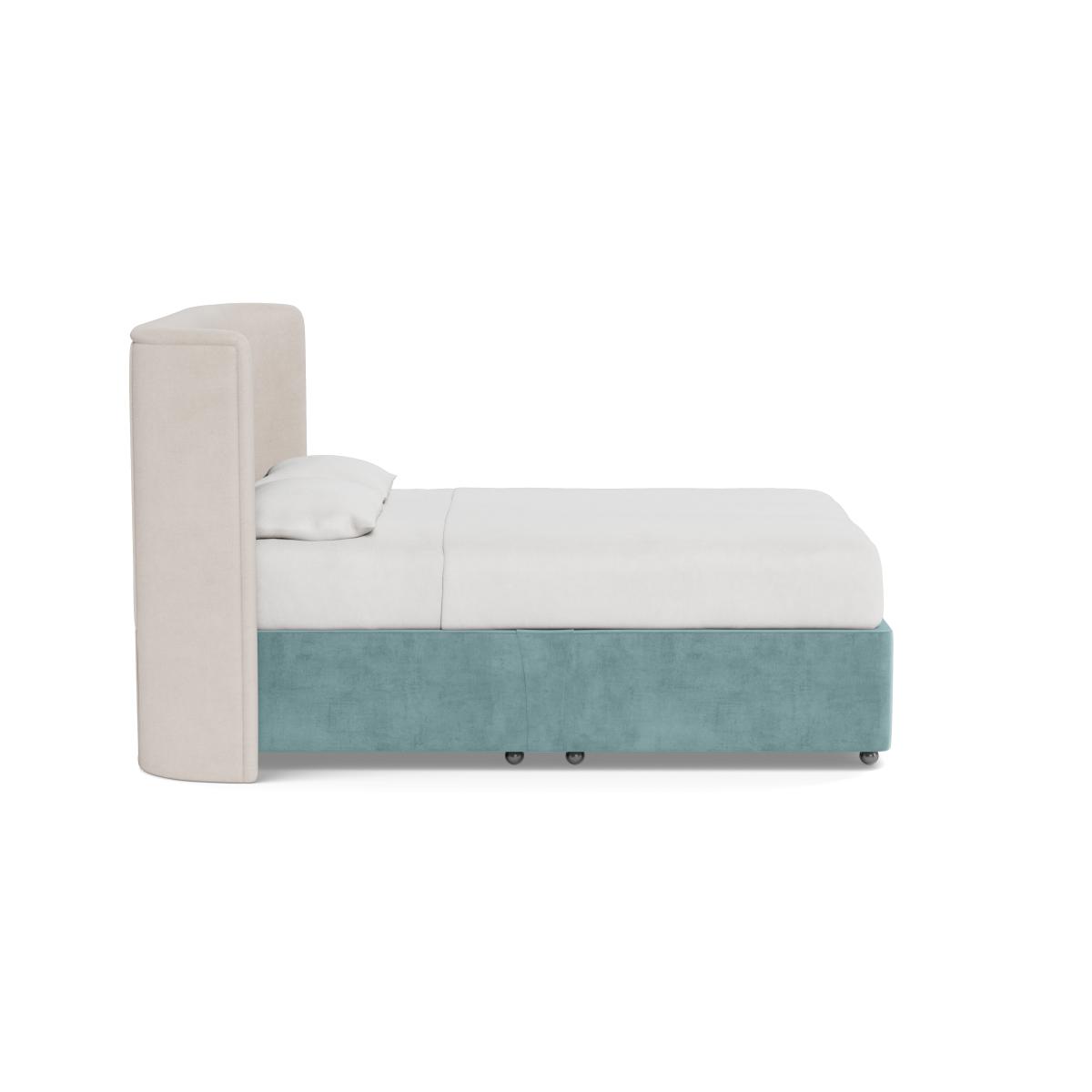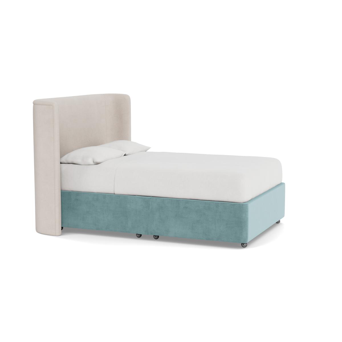 This divan base is a stylish choice for modern and contemporary interiors, thanks to its luxe velvet finish and mineral blue hue, which adds a subtle pop of colour without overpowering the space. I love how its clean lines and minimal profile create a sophisticated look, perfect for both understated schemes and more eclectic bedrooms. It works particularly well paired with elegant bedding and textured cushions to add depth. Practical styling tips include layering with contrasting throws or adding metallic accents for a hint of glamour. The neutral headboard also makes it versatile for various colour palettes, making it a reliable yet chic foundation for a well-designed bedroom.
