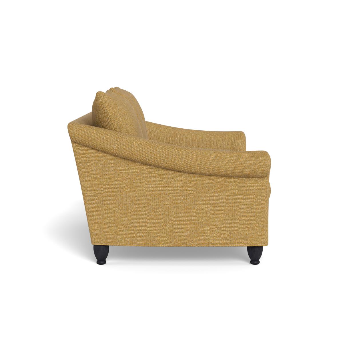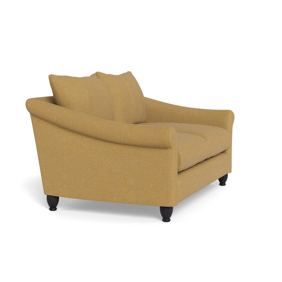 I love this two-seater because of its versatile style and comfort, making it a great addition to both cosy living rooms and more contemporary spaces. The boucle tweed fabric offers texture and visual interest while remaining practical for everyday use, as it’s durable and easy to maintain. Its warm citrine colour is especially effective in adding a pop of colour to neutral palettes or complementing earthy tones. For styling, consider pairing it with patterned cushions or soft throws to soften the look or contrasting textures such as leather or metal accessories for a more modern feel. It works particularly well in casual, welcoming interiors, but can also be dressed up for a more sophisticated look with chic lighting and minimalist decor.