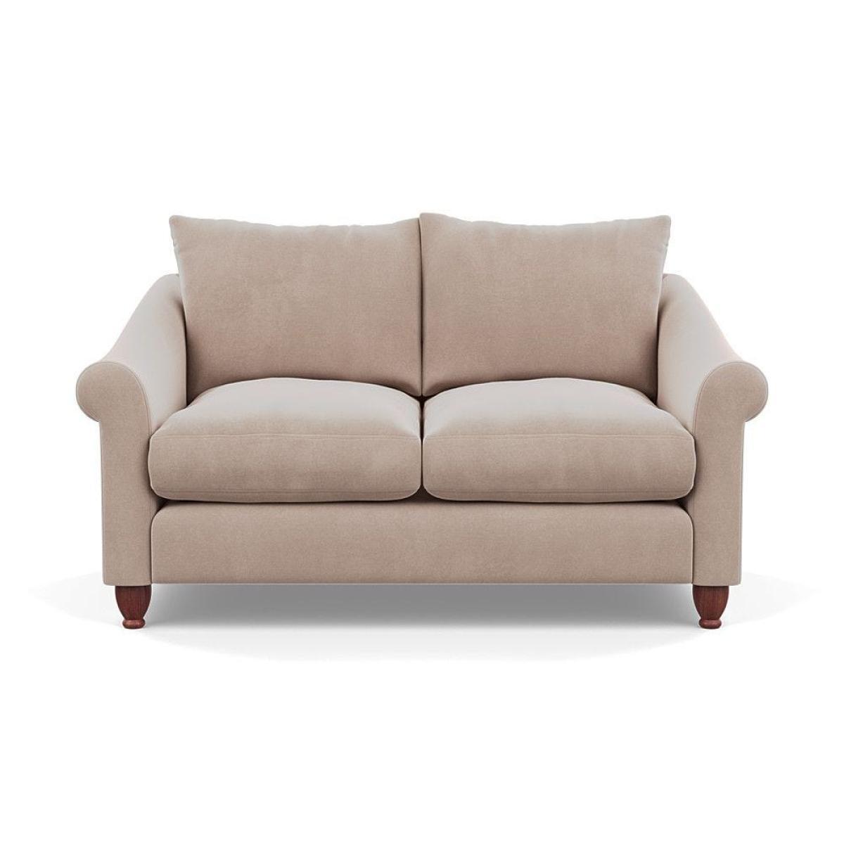 Recreating a classic British design in contemporary materials, this sofa is part of the Heal’s exclusive Devon collection. With its scroll-armed profile, high cushioned seat back, and tapered legs, this sofa is a true luxury to sink into. Its feather-filled cushions are available in a range of Heal’s fabrics and colours – to perfectly match your style and interior design. Pair alongside a Devon armchair or loveseat for a complete contemporary look. Scatter cushions not included.