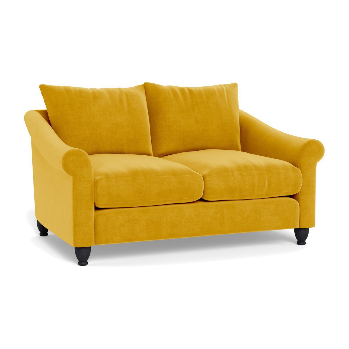 Heal's Devon 2 Seater Smart Luxe Velvet Canary Dark Brown Stain Beech Feet - Heal's UK Furniture