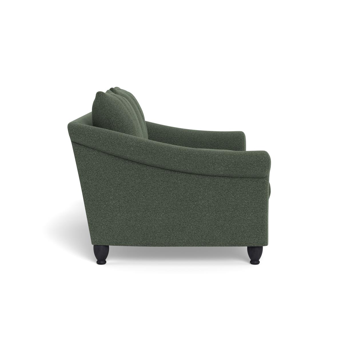 I love this two-seater because its boucle fabric gives it a contemporary yet cosy feel, making it perfect for both modern and traditional interiors. The rich fern colour pairs beautifully with earthy tones and neutral palettes, while the walnut-stained feet add a touch of warmth and refinement. It works particularly well in relaxed living spaces, sitting rooms, or even as an accent piece in a bedroom corner. For styling, consider pairing it with textured cushions and throws in similar earthy hues or contrasting colours to add visual interest. The compact size also makes it versatile for smaller rooms or spaces where a statement piece is needed without dominating the space.