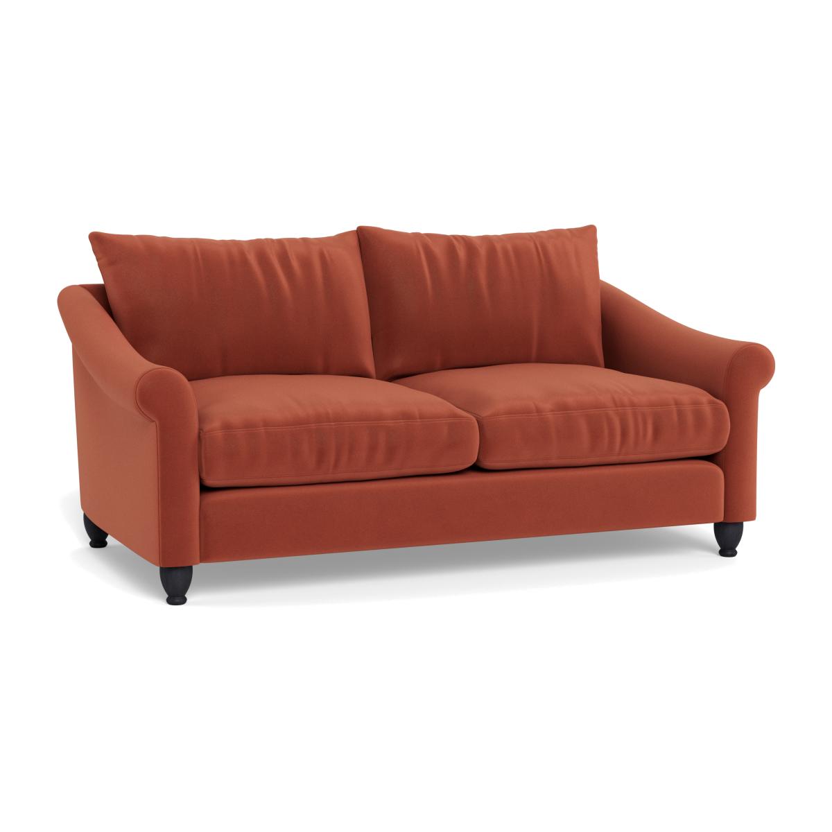 I’m a fan of the Devon three-seater in tawny velvet for its perfect balance of classic curves and modern simplicity. The warm terracotta tone works brilliantly in both neutral schemes (paired with cream linen curtains and a jute rug) and richer, jewel-toned rooms where it can stand up to deep blues or emerald greens. For styling, keep its clean lines front and centre by choosing slim metal-legged side tables and a low-pile rug in muted stripes. Add two scatter cushions in contrasting textures - think boucle or leather - and layer in a wool throw for extra depth. Its scale suits mid-century or contemporary living spaces, and the hard-wearing velvet makes it practical for everyday use.
