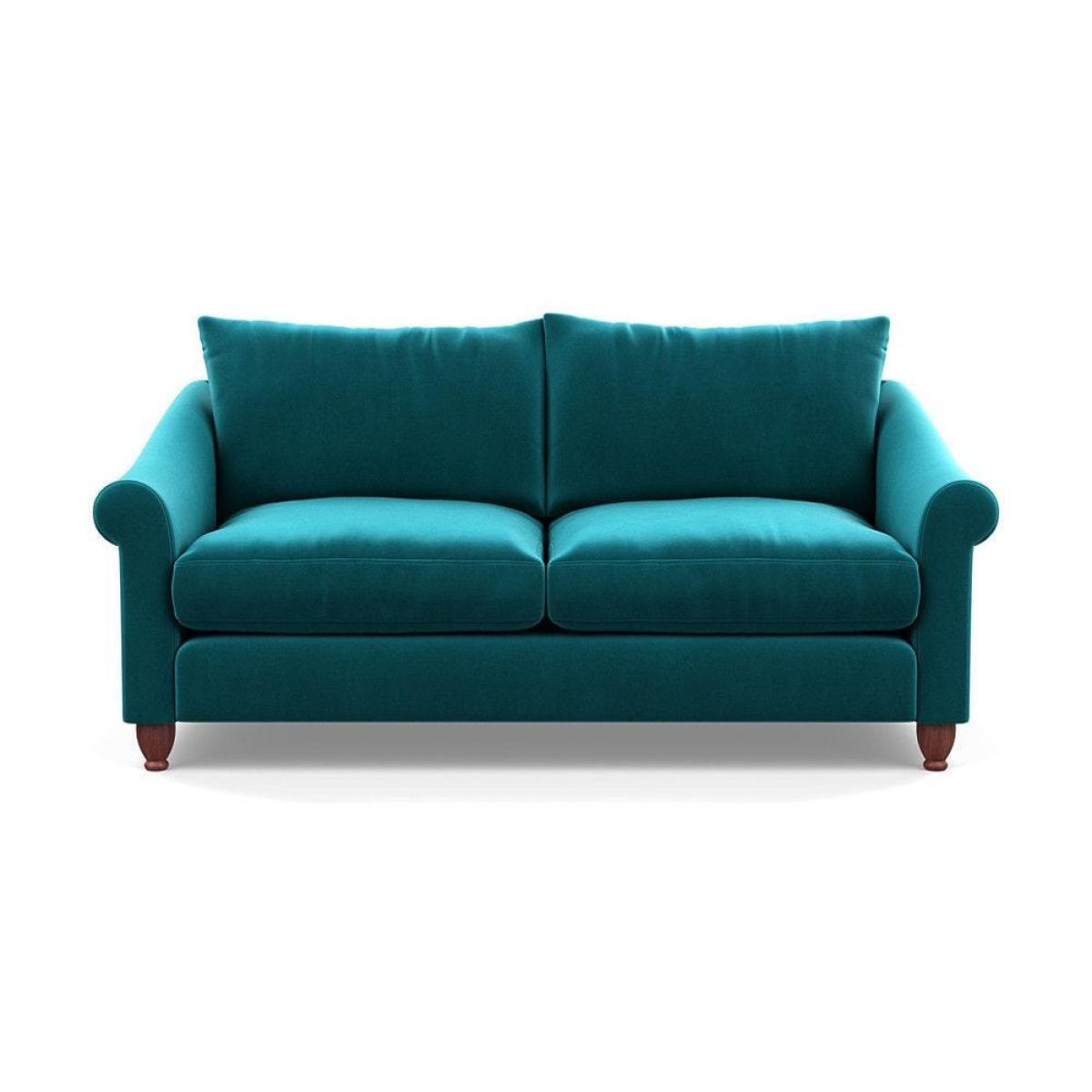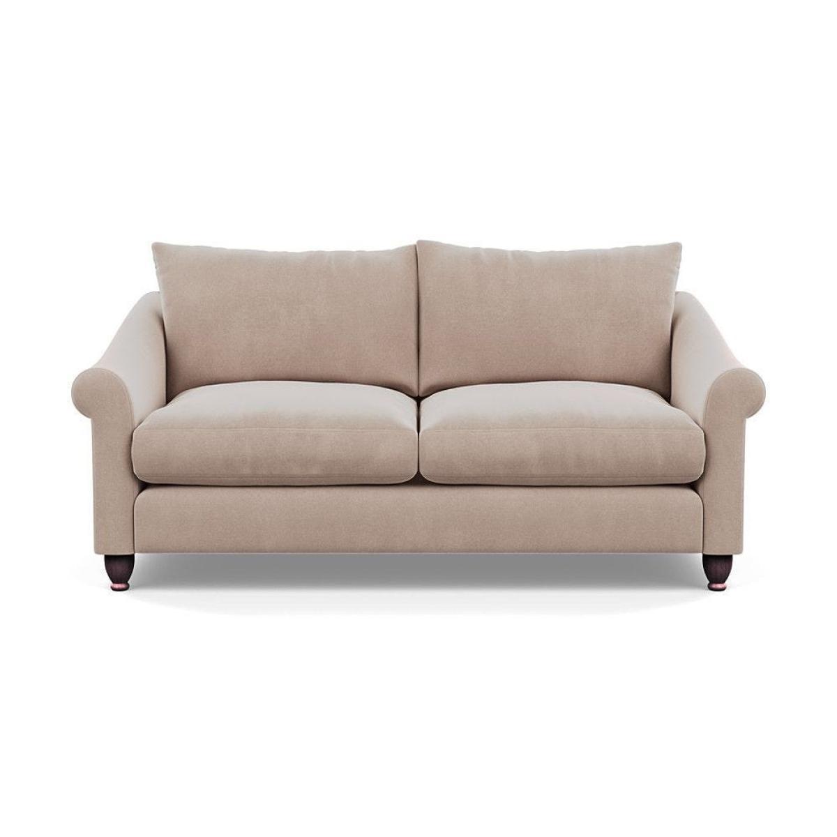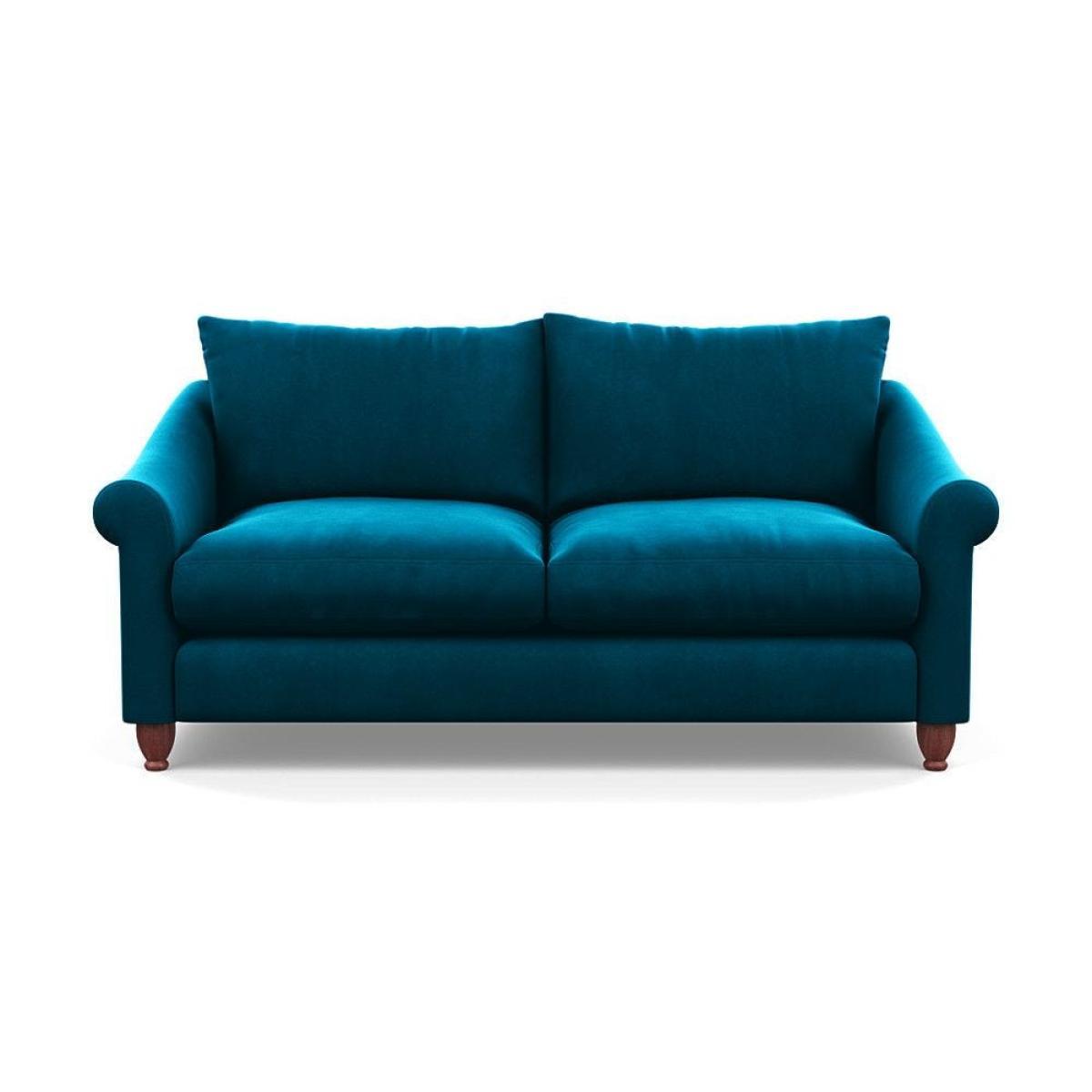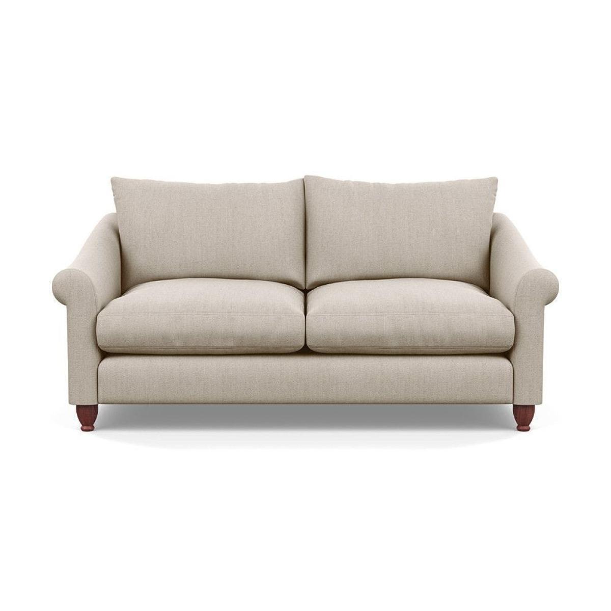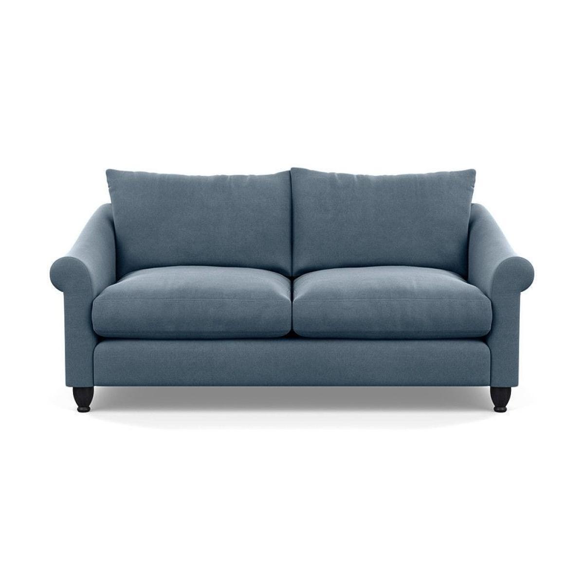 Recreating a classic British design in contemporary materials, this sofa is part of the Heal’s exclusive Devon collection. With its scroll-armed profile, high cushioned seat back, and tapered legs, this sofa is a true luxury to sink into. Its feather-filled cushions are available in a range of Heal’s fabrics and colours – to perfectly match your style and interior design. Pair alongside a Devon armchair or loveseat for a complete contemporary look. Scatter cushions not included.