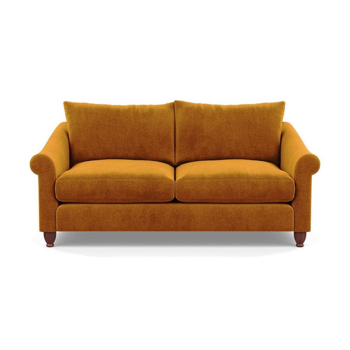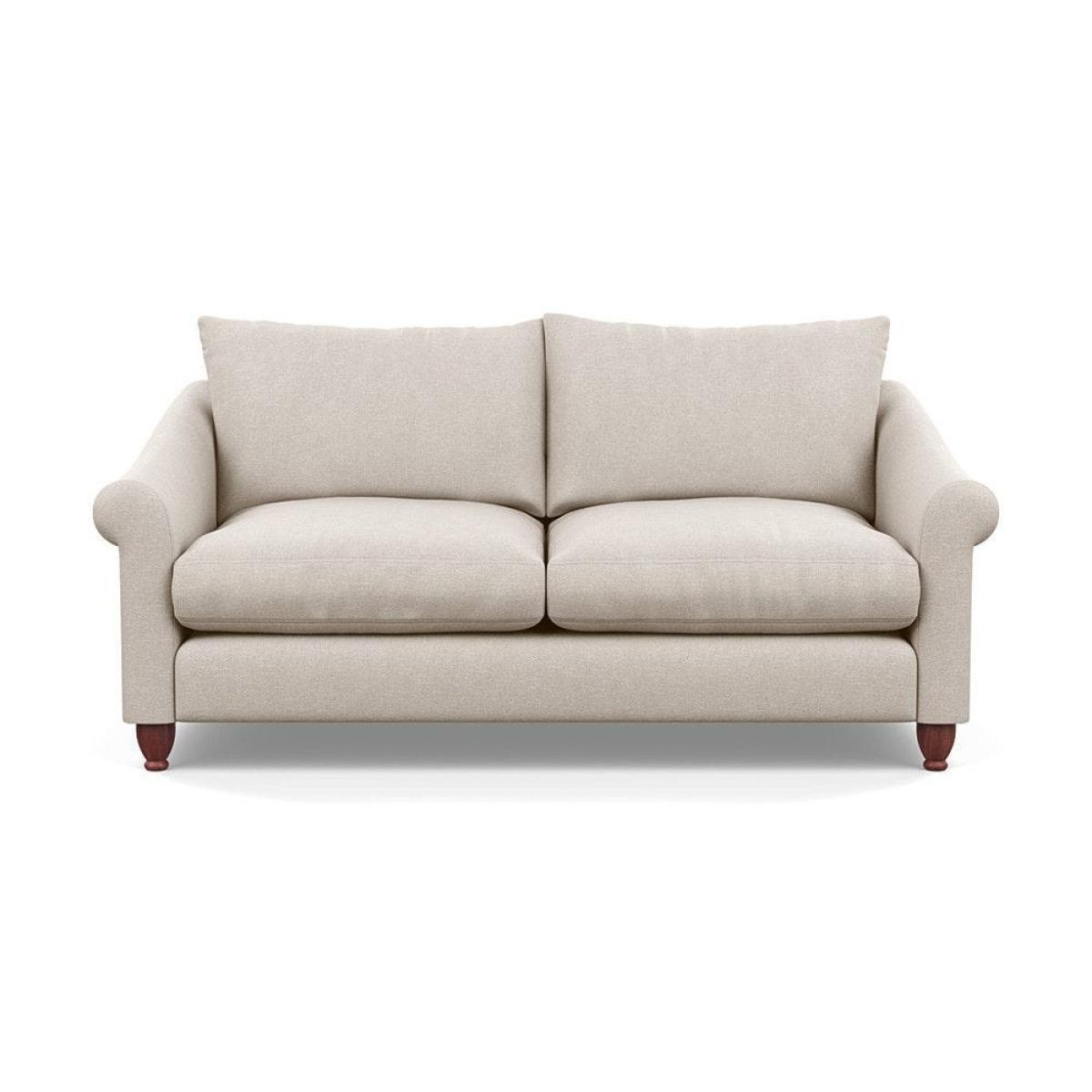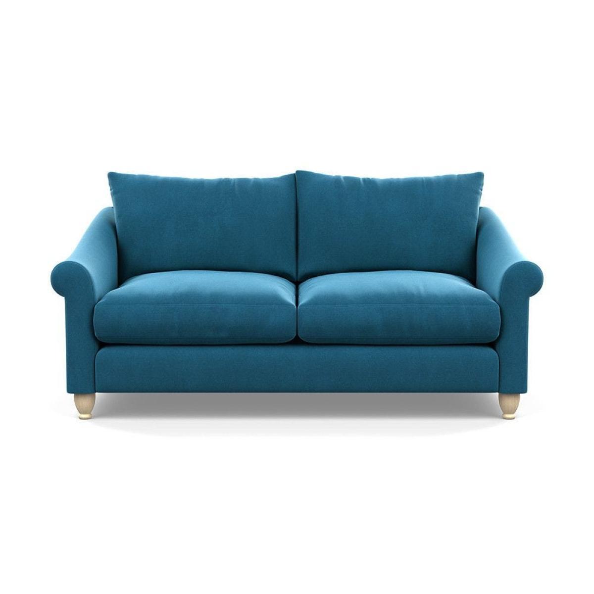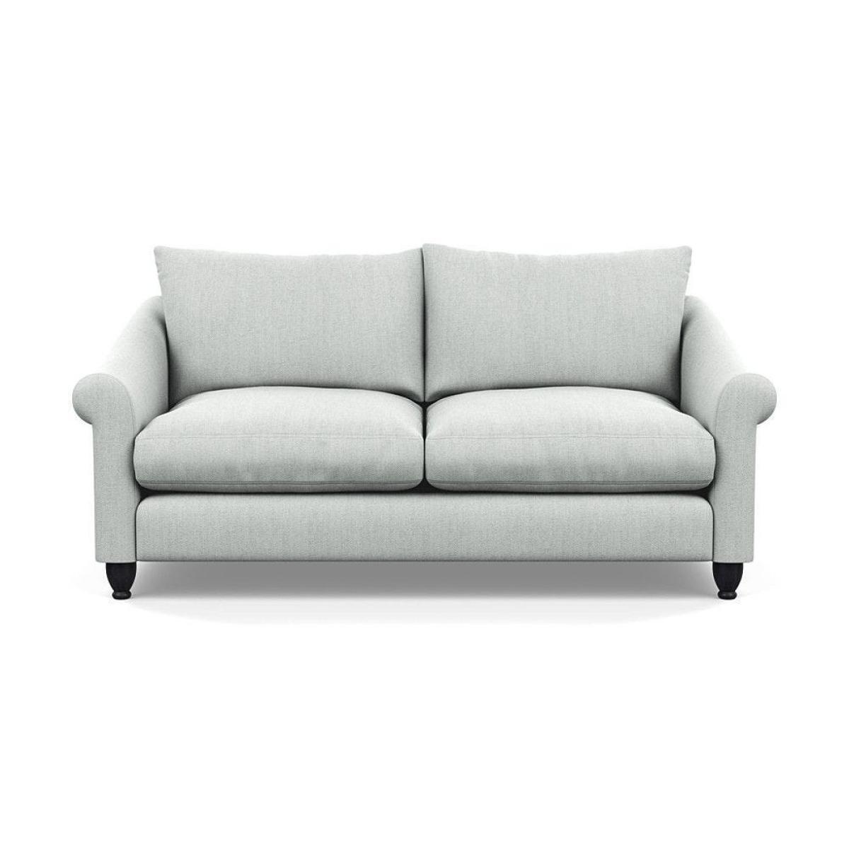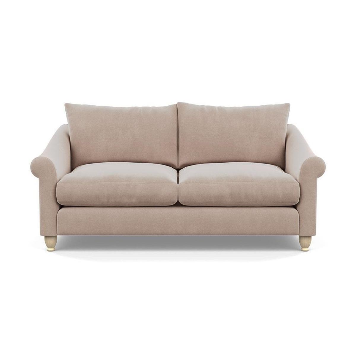 Recreating a classic British design in contemporary materials, this sofa is part of the Heal’s exclusive Devon collection. With its scroll-armed profile, high cushioned seat back, and tapered legs, this sofa is a true luxury to sink into. Its feather-filled cushions are available in a range of Heal’s fabrics and colours – to perfectly match your style and interior design. Pair alongside a Devon armchair or loveseat for a complete contemporary look. Scatter cushions not included.
