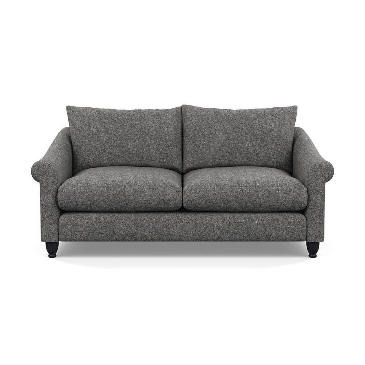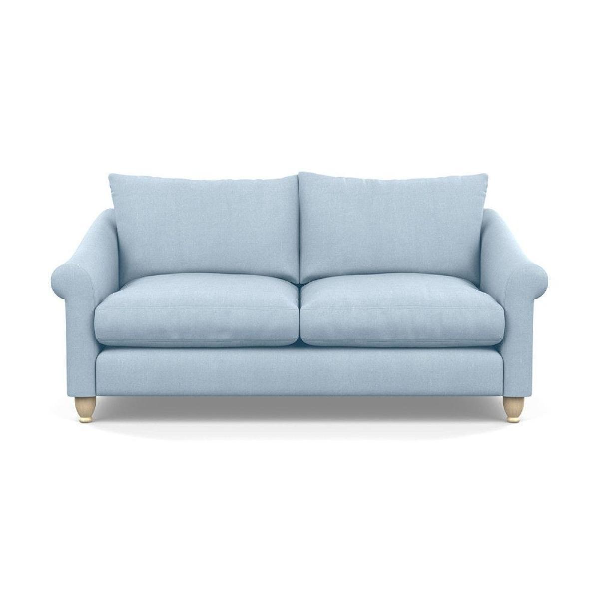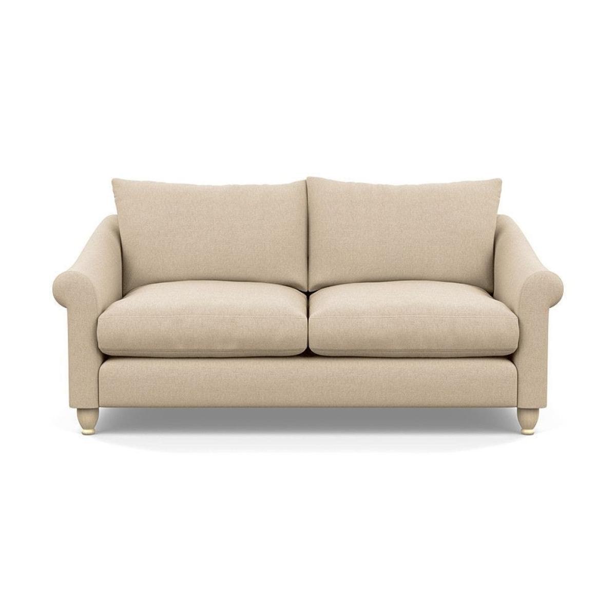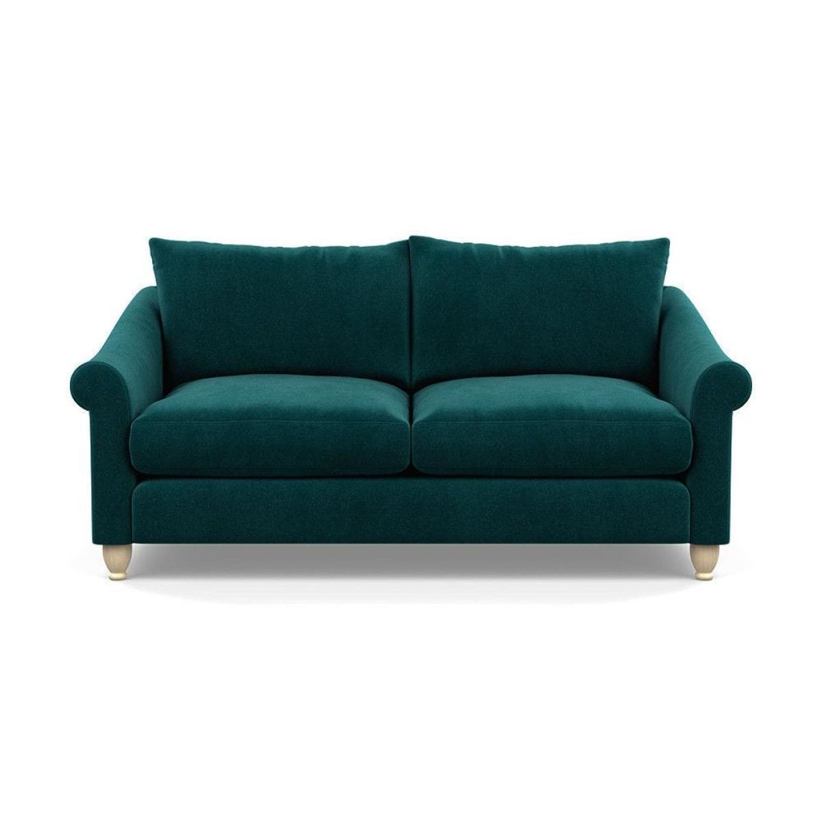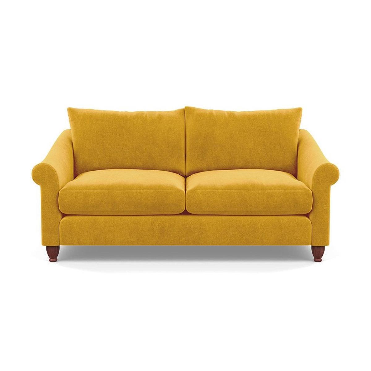Recreating a classic British design in contemporary materials, this sofa is part of the Heal’s exclusive Devon collection. With its scroll-armed profile, high cushioned seat back, and tapered legs, this sofa is a true luxury to sink into. Its feather-filled cushions are available in a range of Heal’s fabrics and colours – to perfectly match your style and interior design. Pair alongside a Devon armchair or loveseat for a complete contemporary look. Scatter cushions not included.