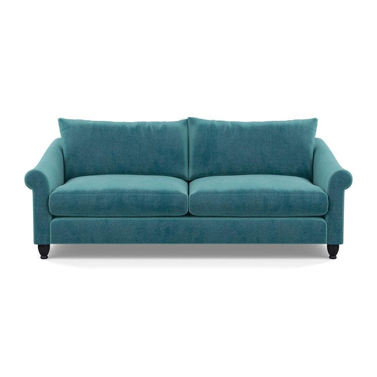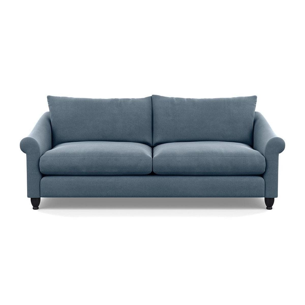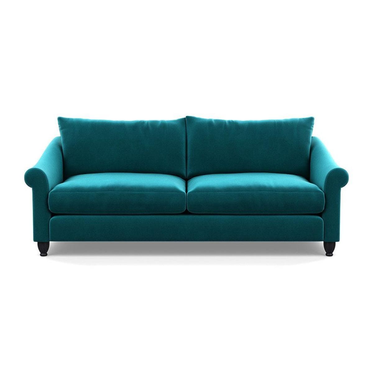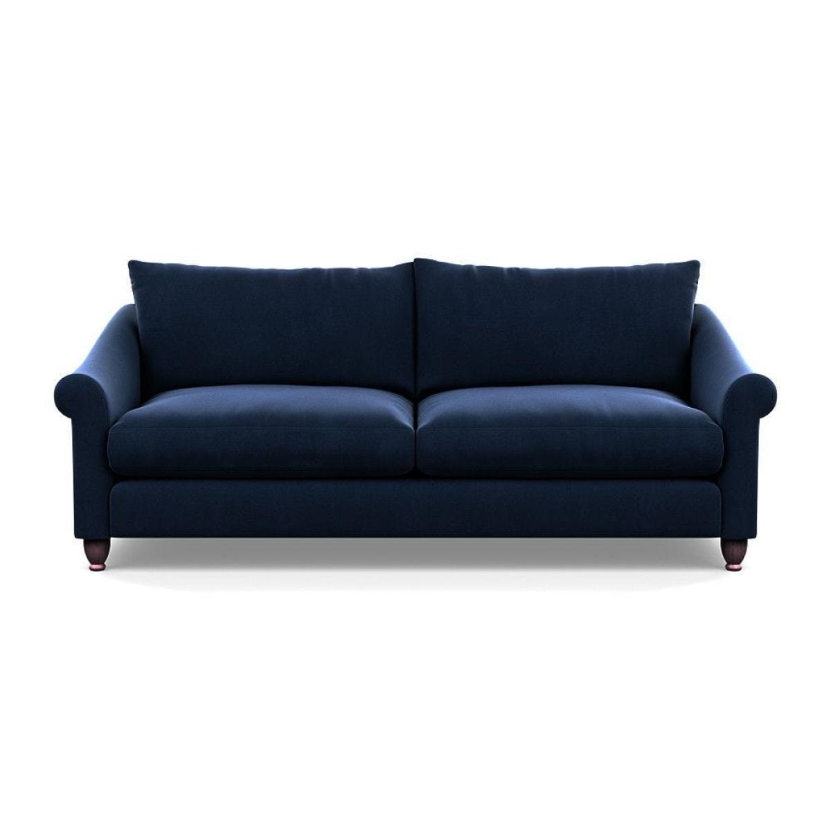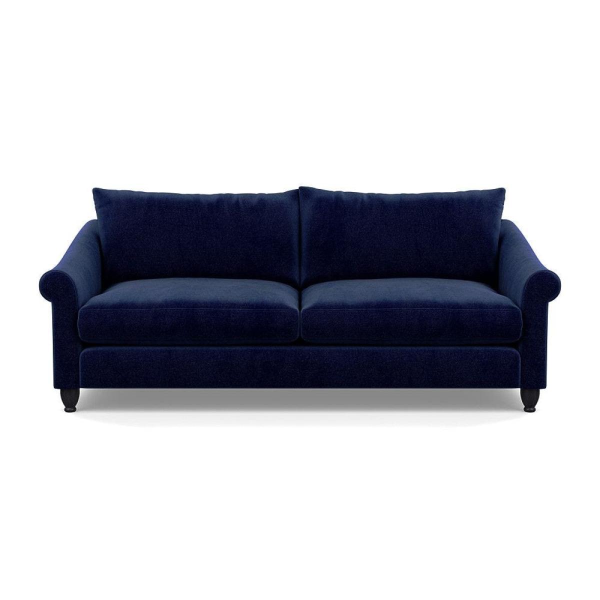 This sofa is a fantastic choice for those looking to add a touch of luxury to their living space. I love its rich velvet fabric in a deep midnight hue, which pairs beautifully with both neutral and bold colour schemes. The natural ash feet give it a subtle warmth that helps ground the piece in various interior styles. It's versatile enough to work well in contemporary settings, especially with minimalistic or modern design, but can also add a touch of elegance to more eclectic or classic schemes. For styling tips, consider layering with textured cushions or throws to soften the look, and it pairs especially well with warm wood accents or metallic accessories to enhance its luxe feel. This sofa's compact four-seater size makes it perfect for cosy lounge areas or open-plan living rooms aiming for a sophisticated yet inviting atmosphere.