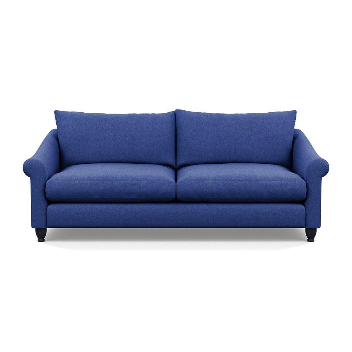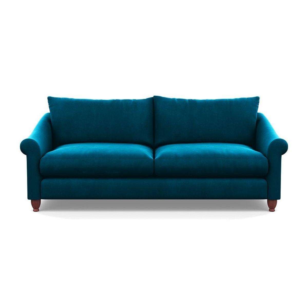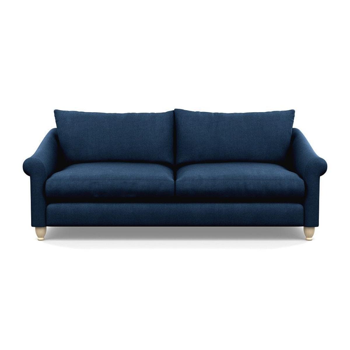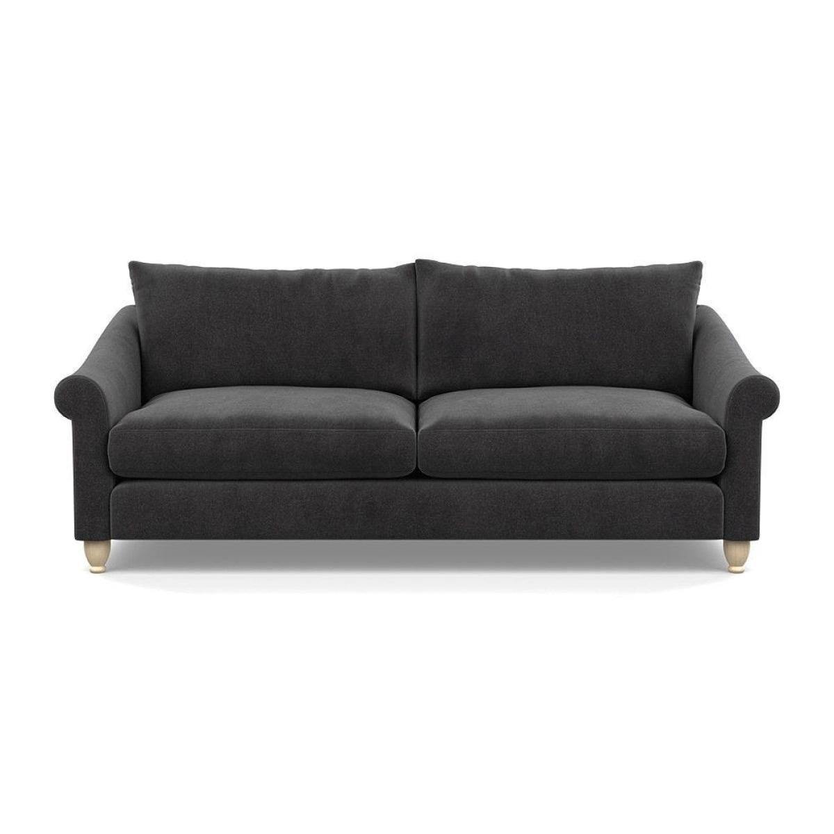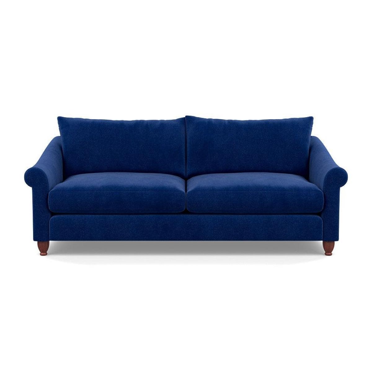 This sofa is a fantastic choice for those looking to add a touch of luxury to their living space. I love its rich velvet fabric in a deep midnight hue, which pairs beautifully with both neutral and bold colour schemes. The natural ash feet give it a subtle warmth that helps ground the piece in various interior styles. It's versatile enough to work well in contemporary settings, especially with minimalistic or modern design, but can also add a touch of elegance to more eclectic or classic schemes. For styling tips, consider layering with textured cushions or throws to soften the look, and it pairs especially well with warm wood accents or metallic accessories to enhance its luxe feel. This sofa's compact four-seater size makes it perfect for cosy lounge areas or open-plan living rooms aiming for a sophisticated yet inviting atmosphere.