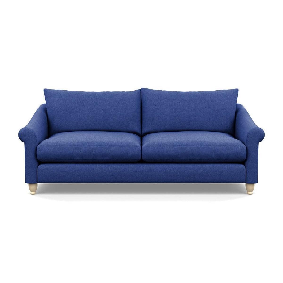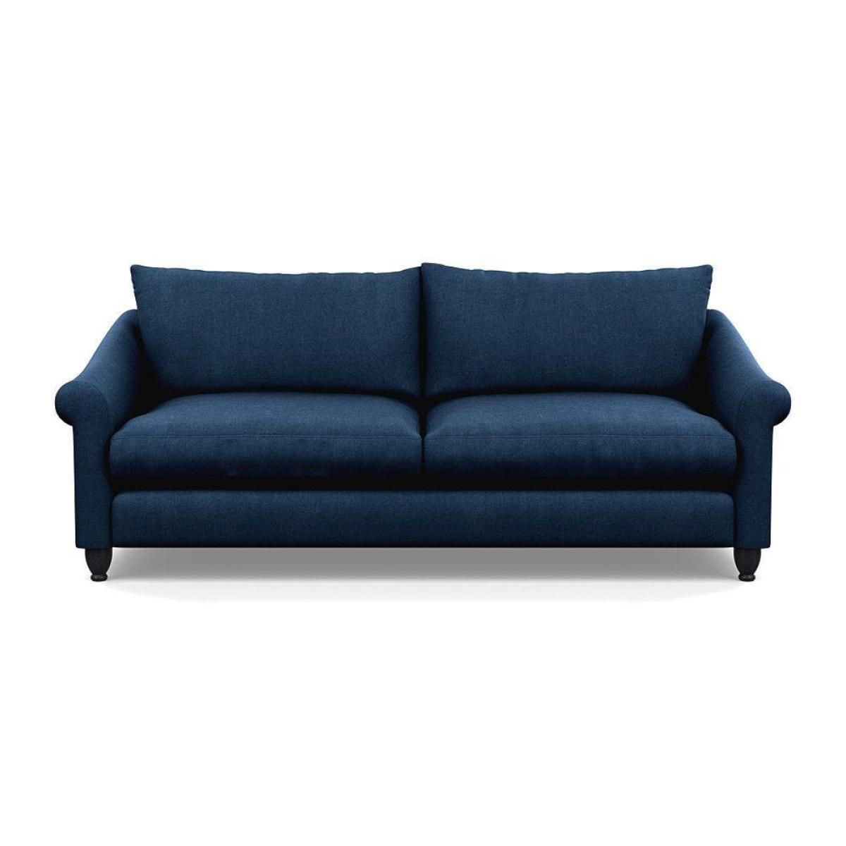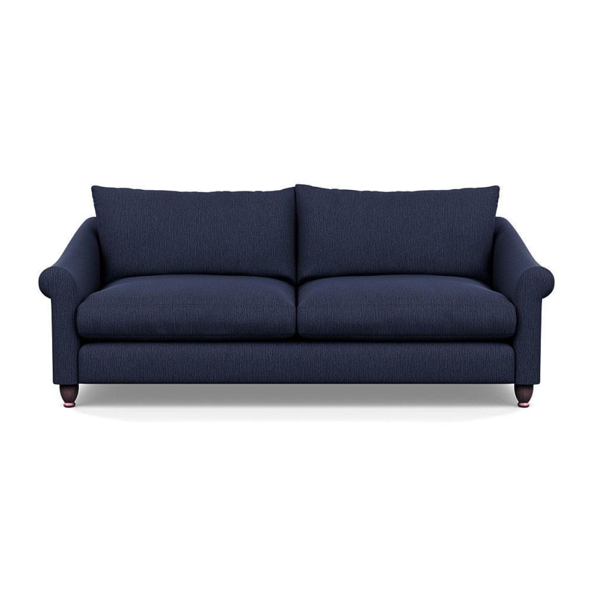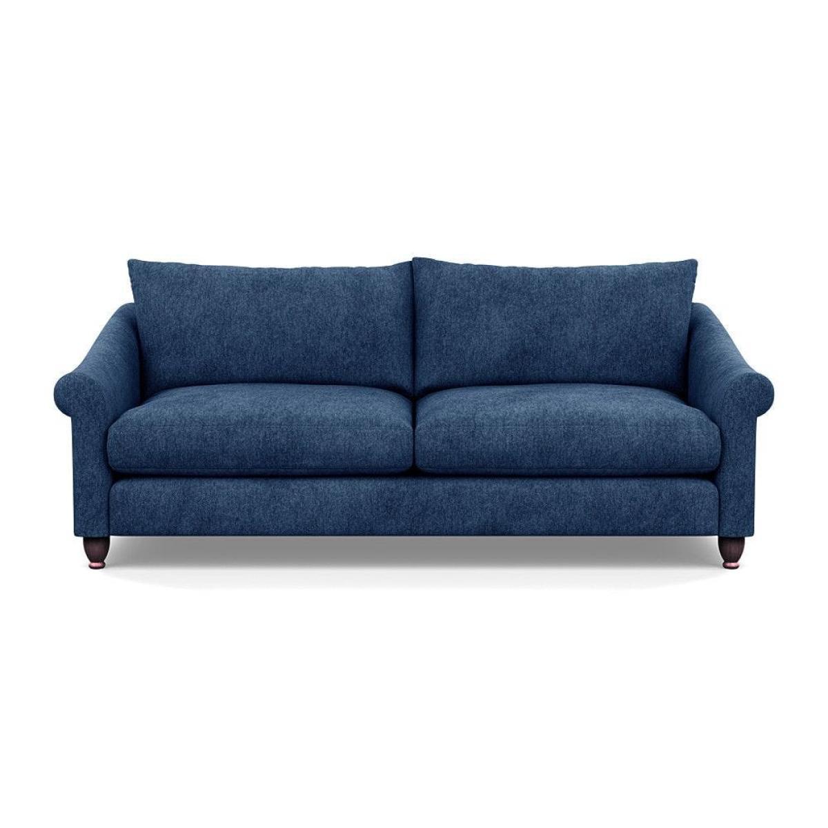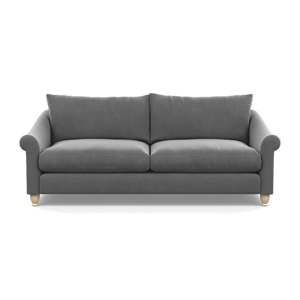This sofa is a fantastic choice for those looking to add a touch of luxury to their living space. I love its rich velvet fabric in a deep midnight hue, which pairs beautifully with both neutral and bold colour schemes. The natural ash feet give it a subtle warmth that helps ground the piece in various interior styles. It's versatile enough to work well in contemporary settings, especially with minimalistic or modern design, but can also add a touch of elegance to more eclectic or classic schemes. For styling tips, consider layering with textured cushions or throws to soften the look, and it pairs especially well with warm wood accents or metallic accessories to enhance its luxe feel. This sofa's compact four-seater size makes it perfect for cosy lounge areas or open-plan living rooms aiming for a sophisticated yet inviting atmosphere.