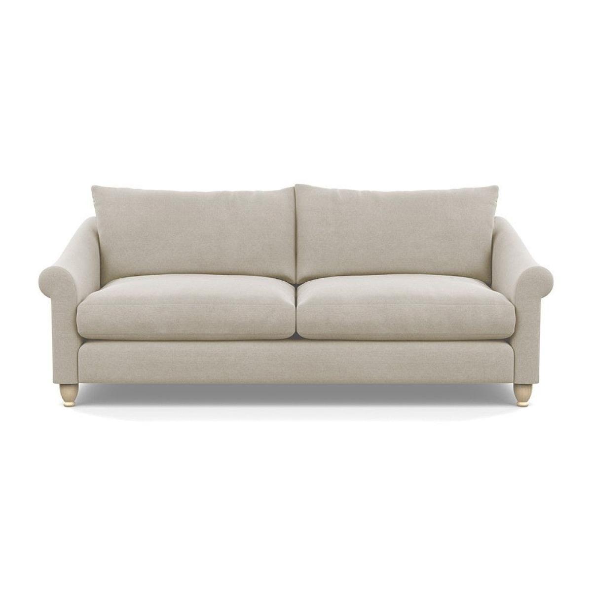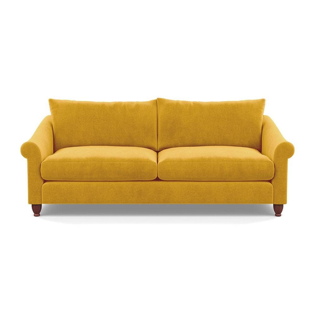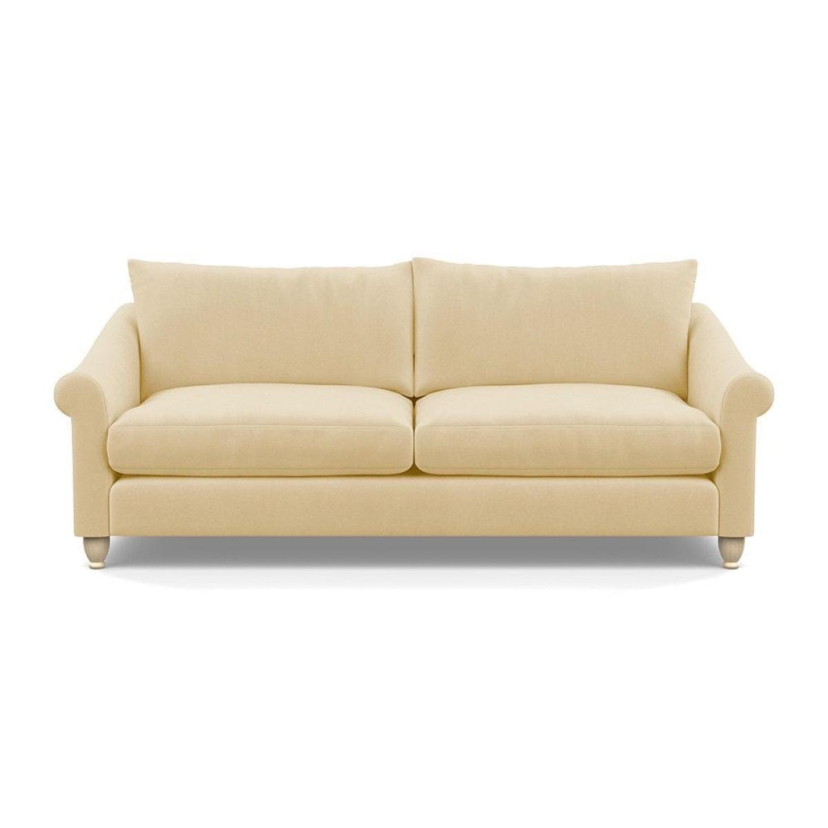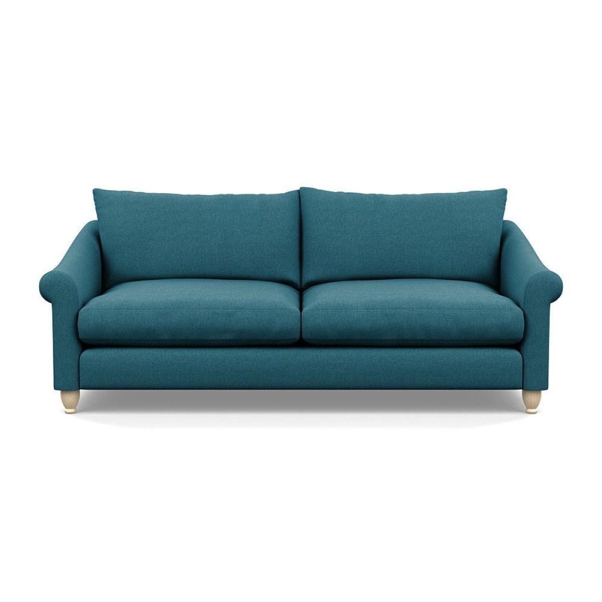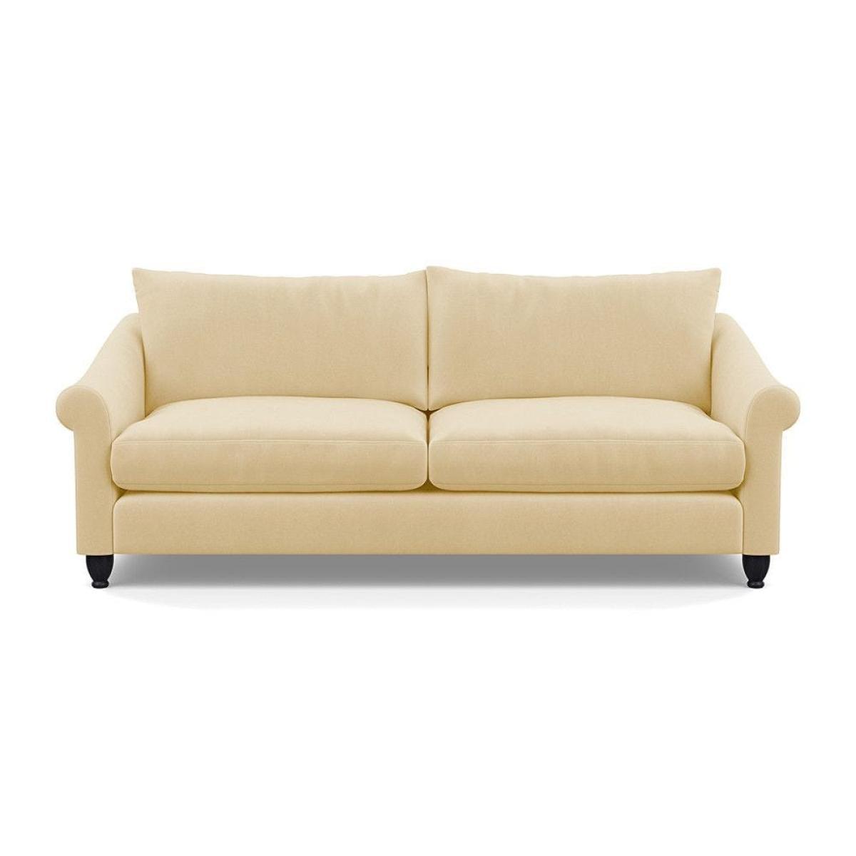 This sofa is a fantastic choice for those looking to add a touch of luxury to their living space. I love its rich velvet fabric in a deep midnight hue, which pairs beautifully with both neutral and bold colour schemes. The natural ash feet give it a subtle warmth that helps ground the piece in various interior styles. It's versatile enough to work well in contemporary settings, especially with minimalistic or modern design, but can also add a touch of elegance to more eclectic or classic schemes. For styling tips, consider layering with textured cushions or throws to soften the look, and it pairs especially well with warm wood accents or metallic accessories to enhance its luxe feel. This sofa's compact four-seater size makes it perfect for cosy lounge areas or open-plan living rooms aiming for a sophisticated yet inviting atmosphere.