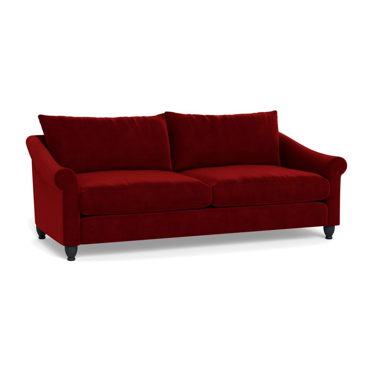 I love this sofa for its luxurious velvet finish and rich Mulberry colour, which adds warmth and sophistication to a variety of interiors. It works particularly well in modern or contemporary spaces, but can also anchor a more classic room when styled with textured cushions or throws. Practical styling tips include pairing it with neutral or metallic accents to let the deep velvet tone stand out, and adding a cosy rug for extra comfort. Its dark beech feet give a subtle grounding touch, so it's versatile enough for both minimalist and eclectic settings. This sofa is both a statement piece and a functional, inviting seating option.