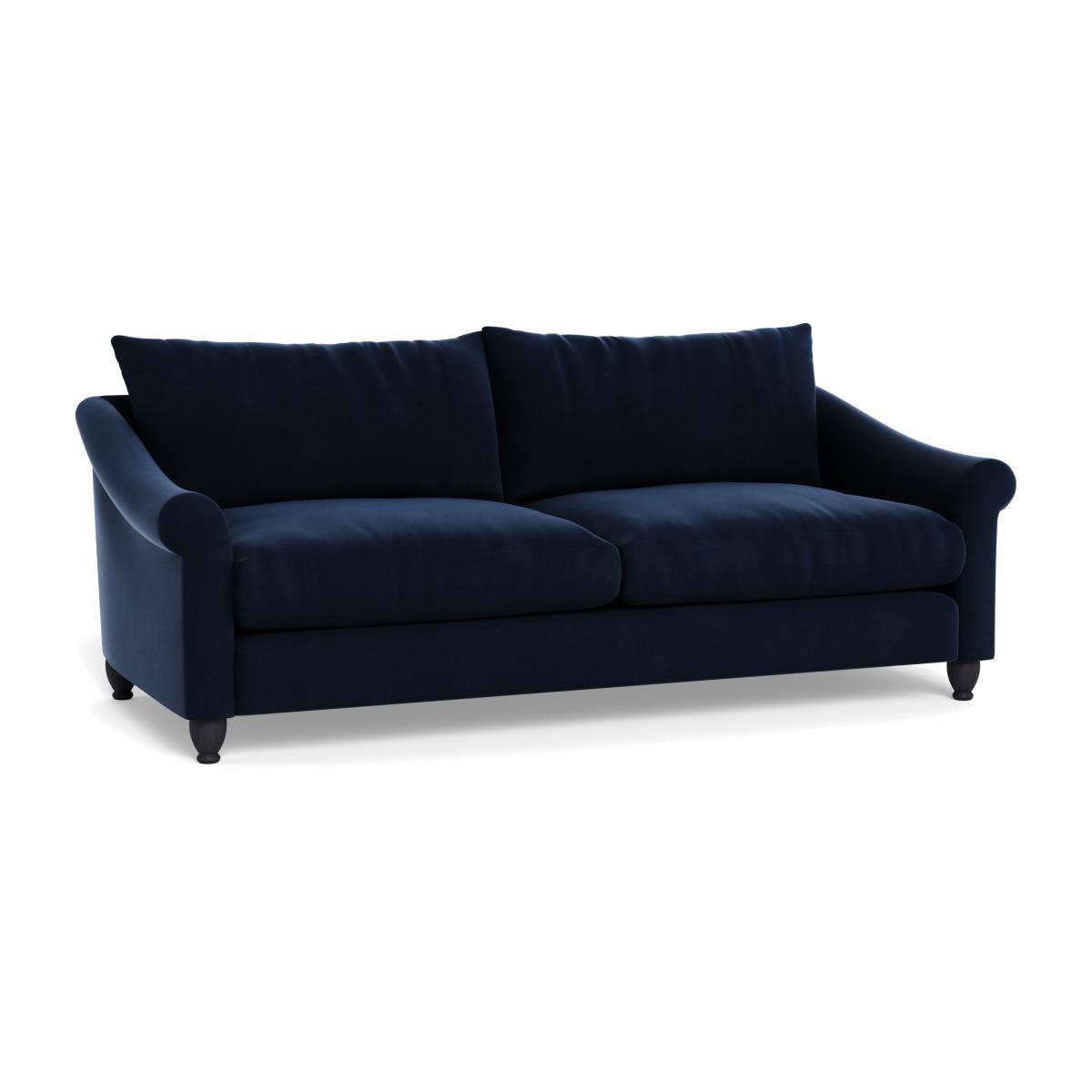 I love this navy sofa for its versatile colour and timeless silhouette, making it a great anchor piece in both modern and traditional interiors. The velvet fabric adds a touch of luxe without feeling overly formal, while the natural ash feet give it a subtle, contemporary edge. It works particularly well in neutral spaces with layered textures or in more maximalist settings that embrace colour and pattern. Practical styling tips include pairing it with cosy throws and plush cushions to enhance comfort, or accessorising with metallic or wood accents for added warmth. Its clean lines and adaptable hue make it a smart choice for open plan living rooms or larger multipurpose spaces where you want a statement piece that still feels inviting.