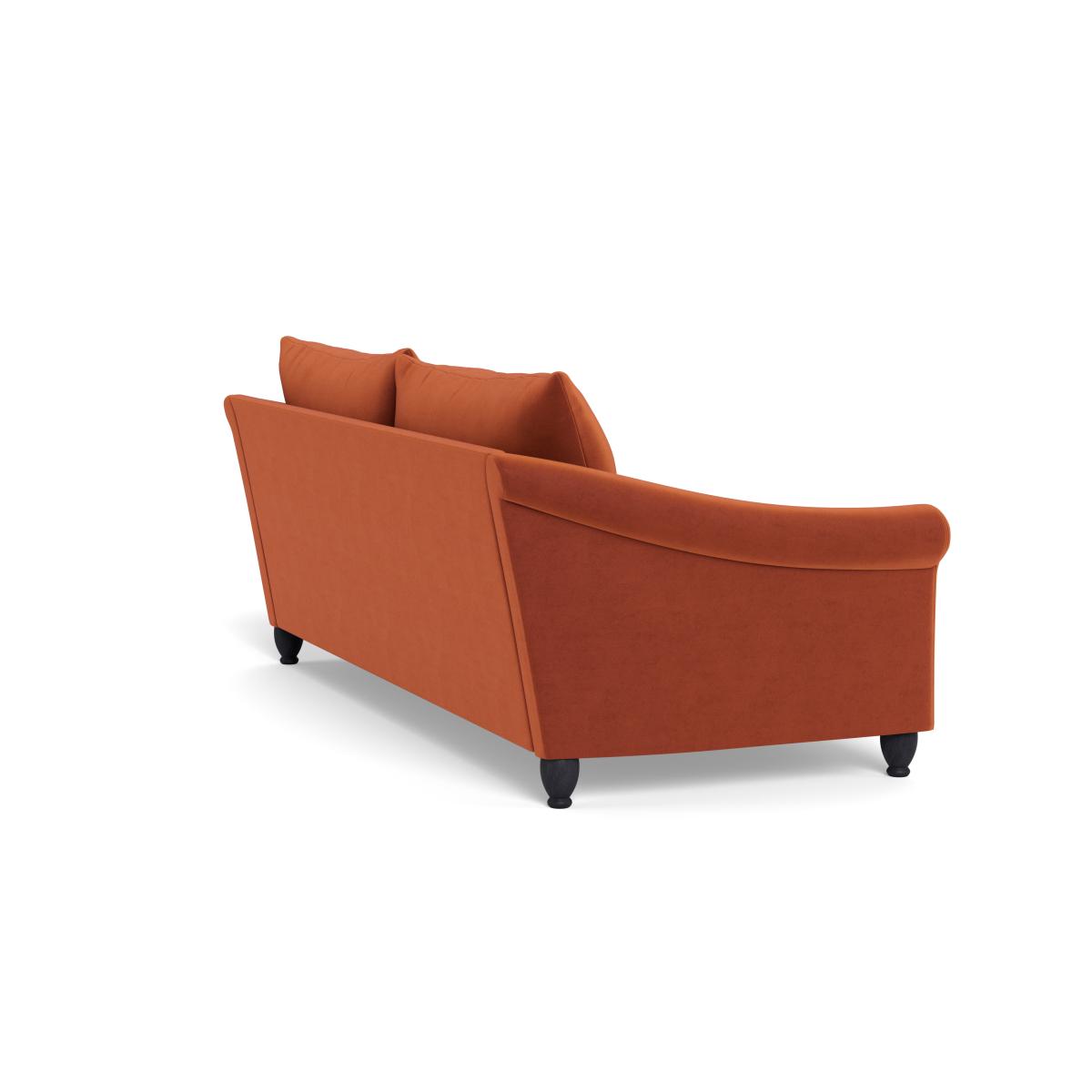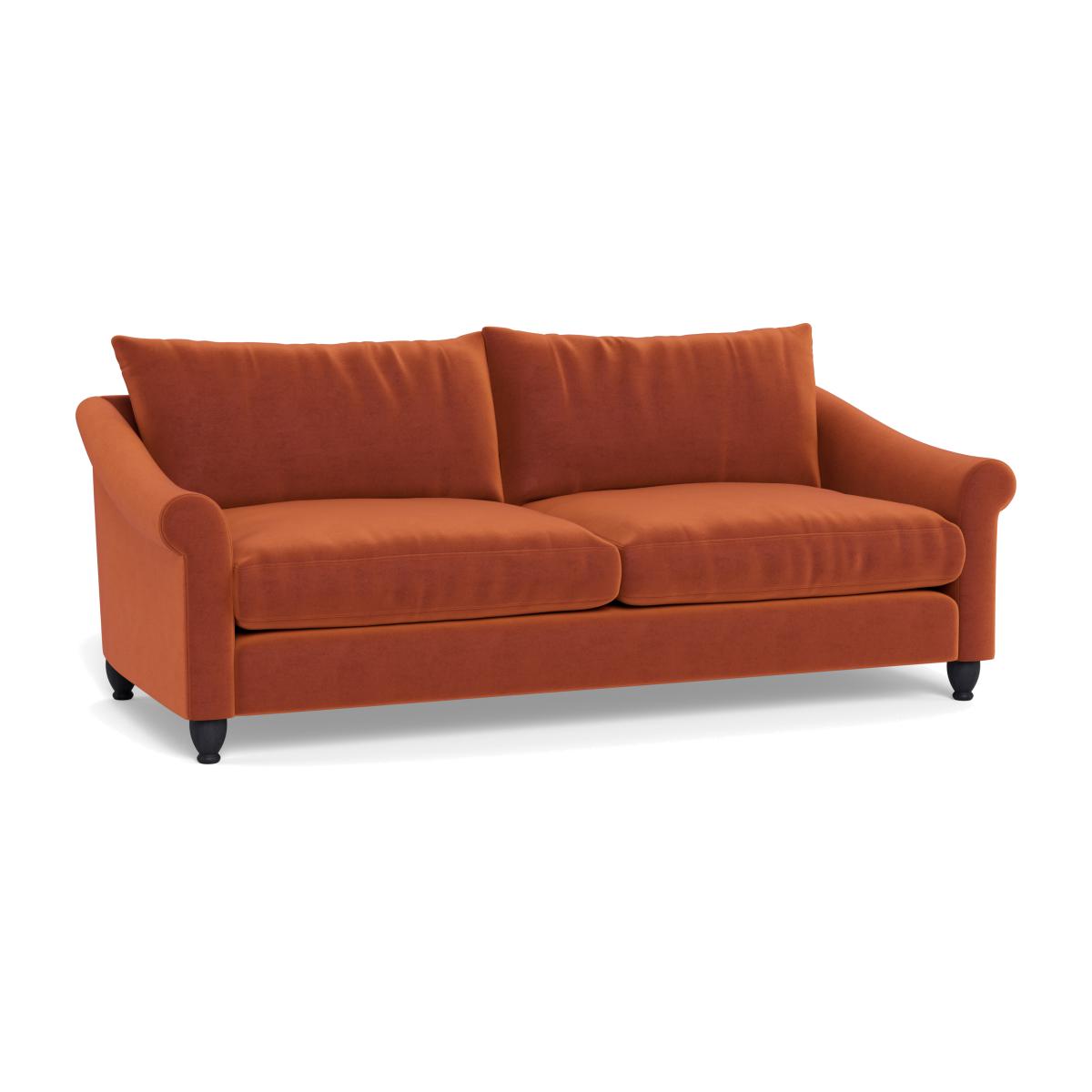I’m a fan of this russet velvet four-seater for its rich, autumnal hue and generously plumped cushions - it instantly warms up a living room without feeling fussy. The walnut-stained feet give it a subtle nod to classic design, so it sits comfortably in both modern and retro-inspired interiors. Pair it with muted ochre or slate-grey walls for a contemporary look, or layer in botanical prints and natural-weave rugs if you prefer a more eclectic vibe. For styling, scatter a couple of patterned cushions in contrasting textures and drape a neutral throw over one arm; flank the sofa with slim metal-framed side tables to echo its clean lines and keep the floor space feeling open.