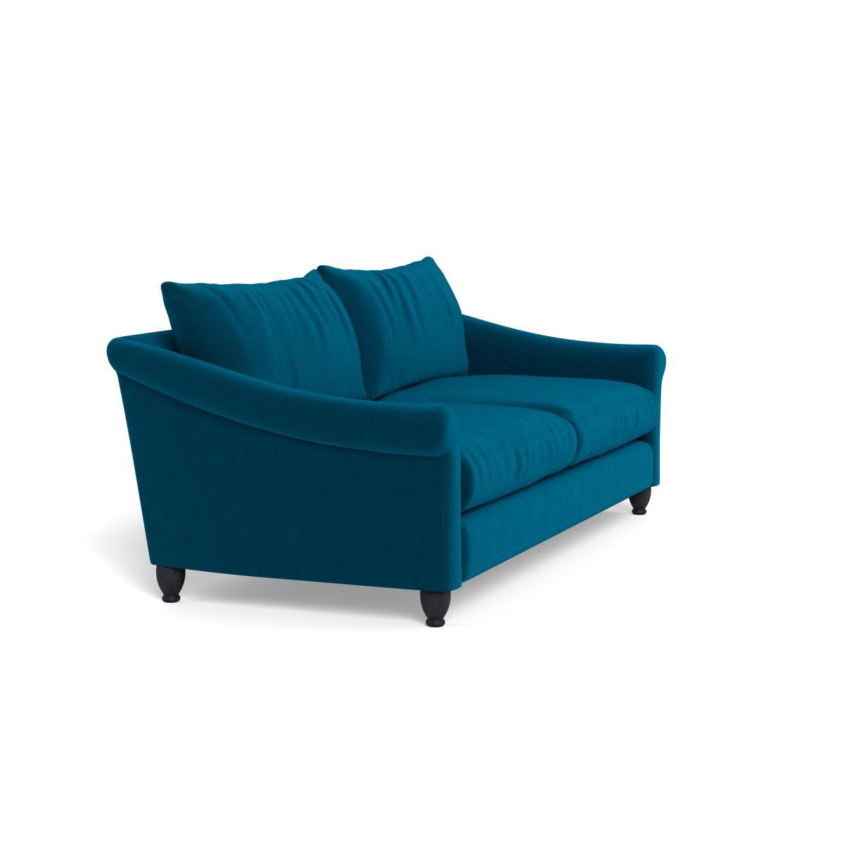 I love this sofa for its versatile, modern appearance combined with the luxurious teal velvet that adds richness and depth to a space. Its natural ash feet give it a fresh, Scandinavian-inspired feel that pairs well with both contemporary and transitional interiors. It works particularly well in neutral-toned rooms where it can act as a focal point, but it’s equally at home in more eclectic schemes when styled with textured cushions and throws. For practical styling, consider pairing it with some metallic or wooden accents to enhance its natural feel, and remember that the velvet upholstery can be easily brushed or vacuumed to maintain its plush look. It’s a great choice for those wanting a statement piece that’s both stylish and comfortable.