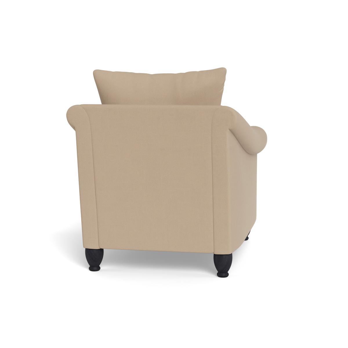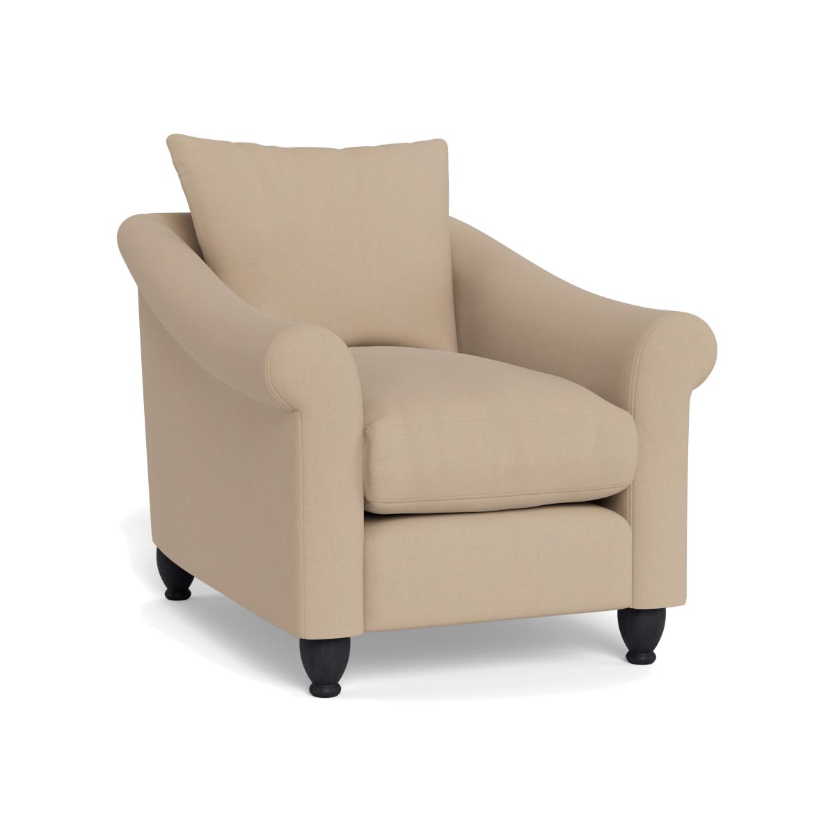 I’d call this the Devon armchair - its soft linen-cotton mix and neat black feet make it a win for both modern and traditional schemes. The neutral Capelo shade works equally well against pale walls or deeper accent tones, while the rolled arms and loose back cushion keep it feeling relaxed rather than formal. For styling, tuck it into a reading corner with a slim-leg side table and a duo of cushions in contrasting texture (think boucle or velvet). In a minimalist space it’ll add just enough warmth; in a country-inspired living room it’ll sit happily alongside a chunky rug and natural-wood coffee table.