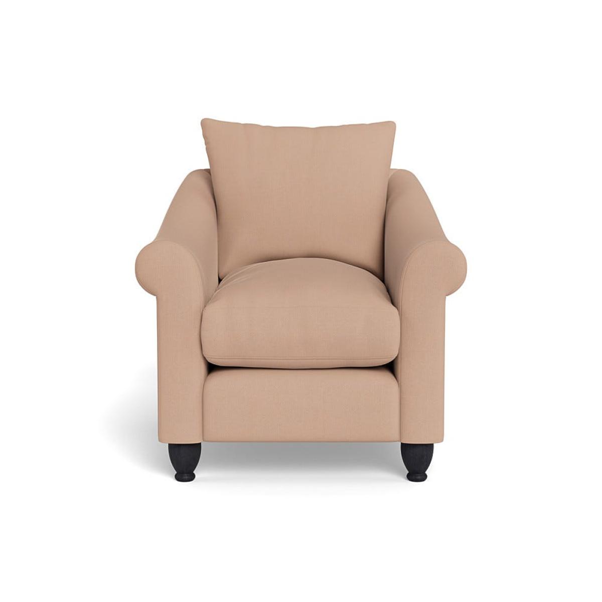 I’d call this simply the Devon armchair. I love its clean, rolled-arm silhouette and sturdy black feet - it feels both relaxed and refined. The Capelo linen-cotton fabric works equally well in modern Scandi, contemporary country or pared-back industrial schemes. For styling, place it beside a slim oak side table and a floor lamp to create a reading nook, and add a textured wool throw or a bold cushion in tonal shades to balance the natural linen look.