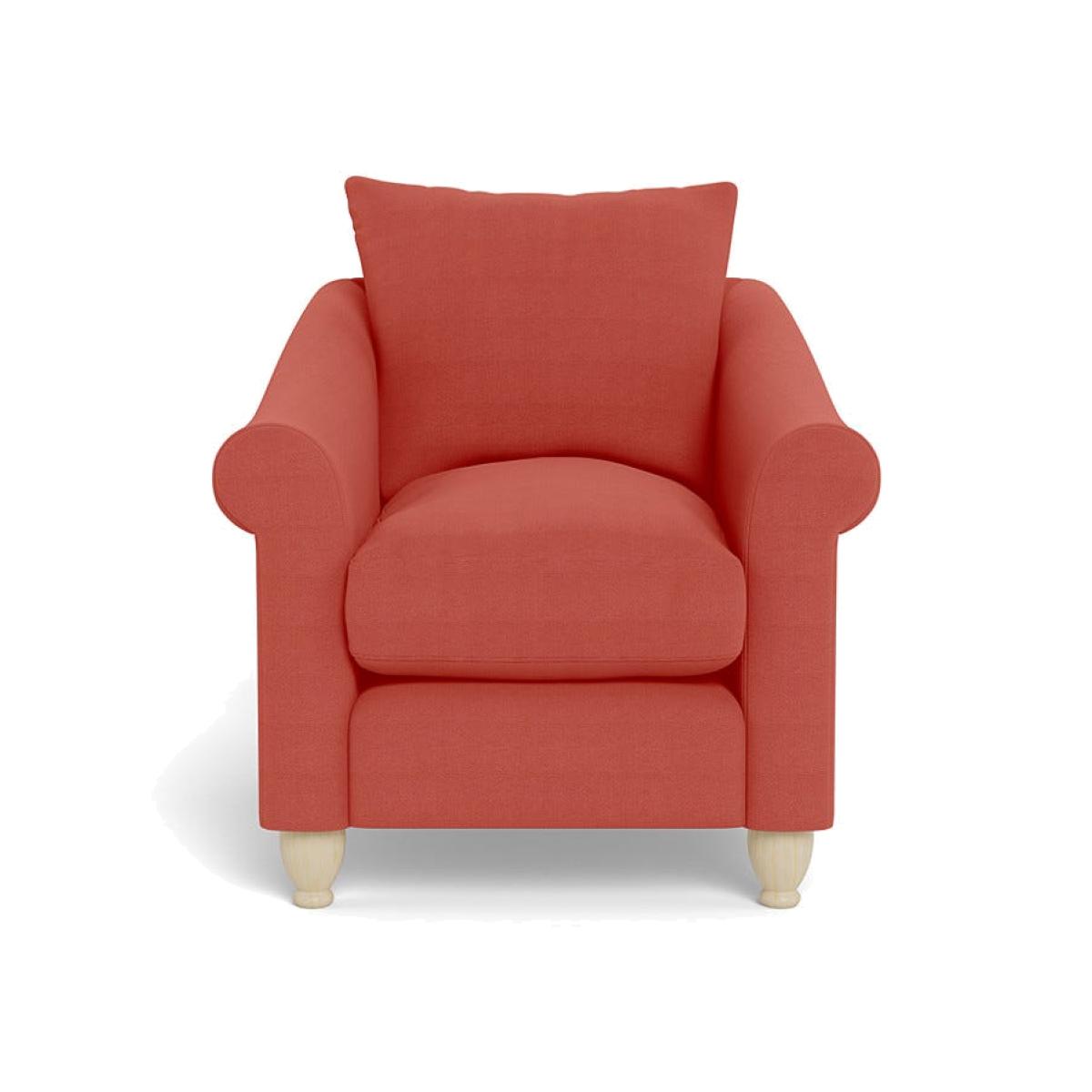 I love this armchair because of its versatile classic design and fresh linen fabric in a warm Grenadine hue, making it an inviting focal point. It works well in both traditional and contemporary interiors, providing a pop of colour without feeling overwhelming. To style it effectively, try pairing with neutral or patterned cushions to add texture, and consider placing it near natural wood finishes or soft lighting for a cosy, lived-in feel. Its light feet help create a sense of openness, so it’s perfect for smaller spaces or to keep a room feeling airy. Overall, it’s a practical yet stylish choice that brings colour and comfort to any lounge or study.