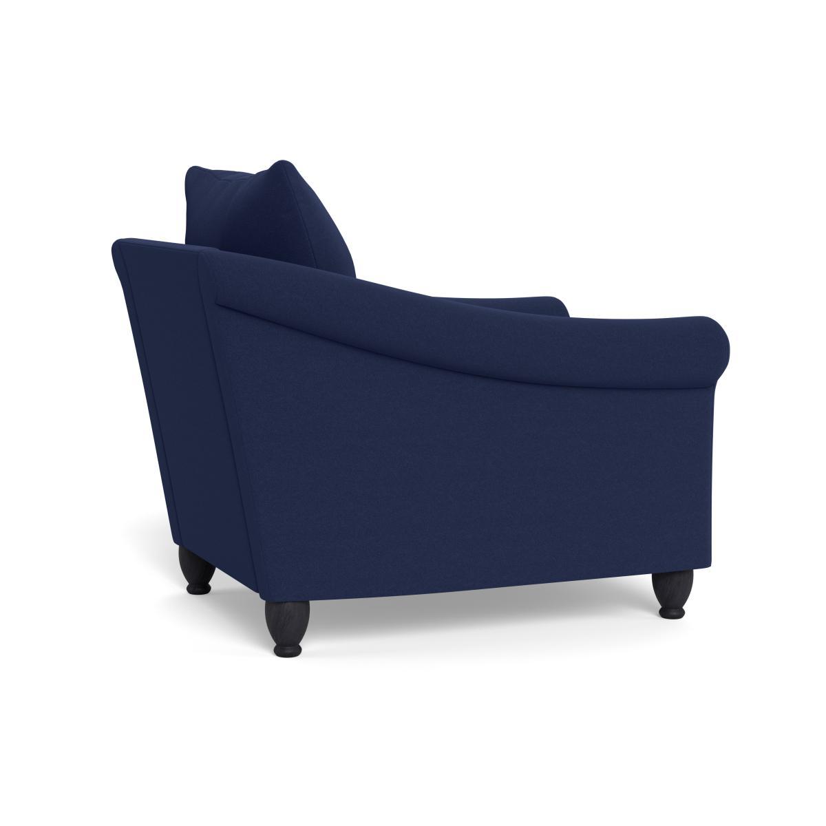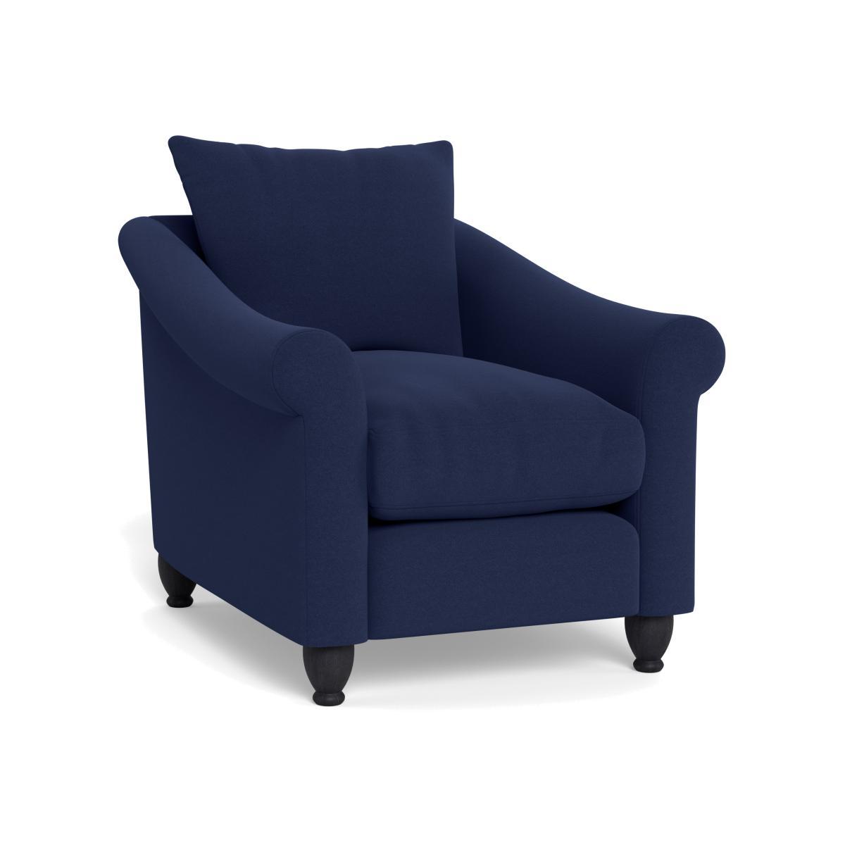 I’d describe this as a smart, navy Melton-wool chair with turned beech feet that works equally well in both traditional and more pared-back contemporary schemes. The rich blue keeps things grounded, while the dark-stained legs add a subtle nod to classic craftsmanship. Pair it with a pale, textured rug and a simple brass floor lamp to lift the tone, or introduce a mustard-yellow throw and geometric cushion for a modern twist. The wool fabric is hard-wearing, so it’s a good choice for a busy home - just rotate the cushions regularly to keep everything looking fresh.