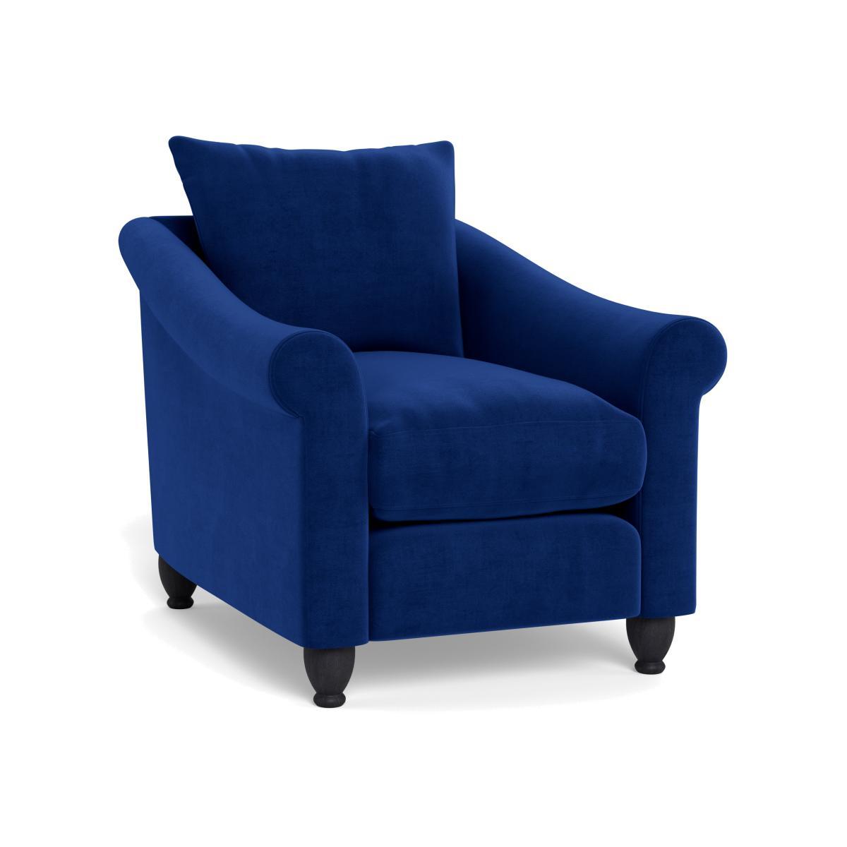 Heal's Devon Armchair Smart Luxe Velvet Azure Black Stain Beech Feet - Heal's UK Furniture