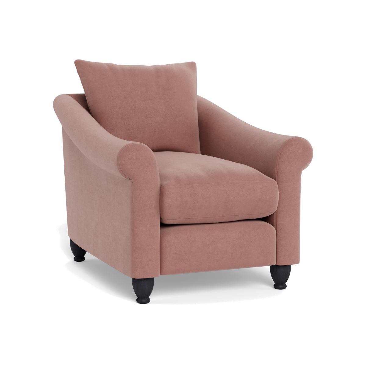 Heal's Devon Armchair Smart Luxe Velvet Dusky Pink Natural Beech Feet