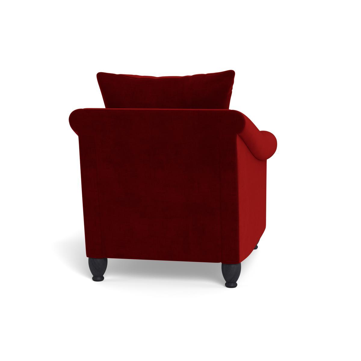 I love the Devon armchair for its deep mulberry velvet and solid beech feet - it brings just the right balance of comfort and style without overpowering a room. The clean lines and rolled arms suit both contemporary and more traditional schemes, especially when paired with warm neutrals or jewel- toned accents. For practical styling, position it by a slim metal side table and a textured wool rug to add contrast, or cluster two in front of a low media unit to create a relaxed seating area. To keep the velvet looking its best, give it a gentle brush with a soft upholstery brush and rotate the cushions regularly so the pile wears evenly.