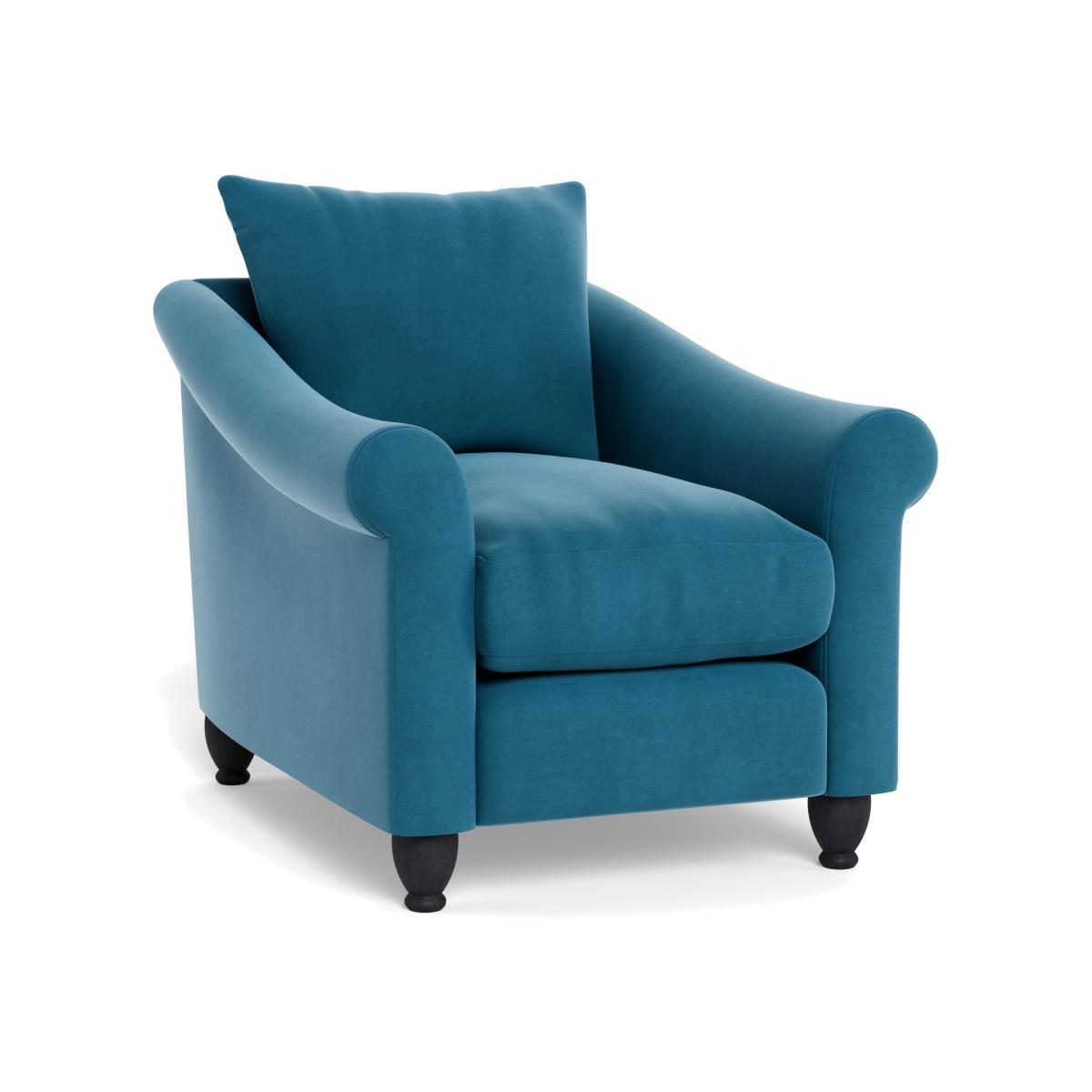 Heal's Devon Armchair Smart Velvet Ocean Natural Ash Feet - Heal's UK Furniture