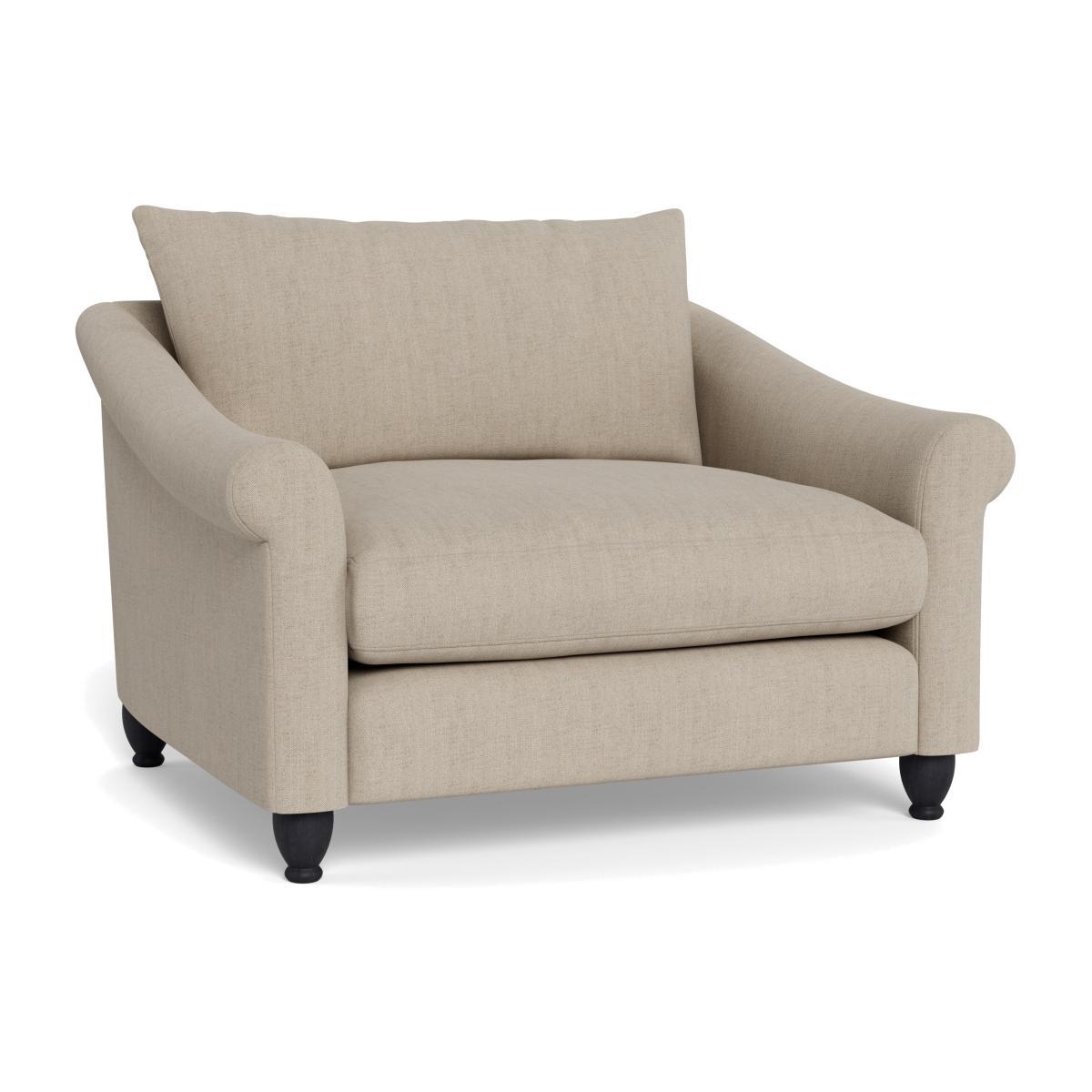 I love this loveseat for its versatile, timeless appeal and understated elegance. The broad weave fabric in a putty hue makes it a great anchor piece that works well in both classic and contemporary interiors. Its neutral tone allows for flexibility in accessorising with bold cushions or throws, or keeping a minimalist aesthetic. The black stain beech feet add a subtle contrast, helping it stand out without overpowering the space. Practical styling tips include pairing it with soft, textured rugs and layered lighting to create a cosy, inviting corner. It's ideal for smaller living rooms, guest spaces, or even corner functionality in larger rooms, offering comfort with a refined, understated look.