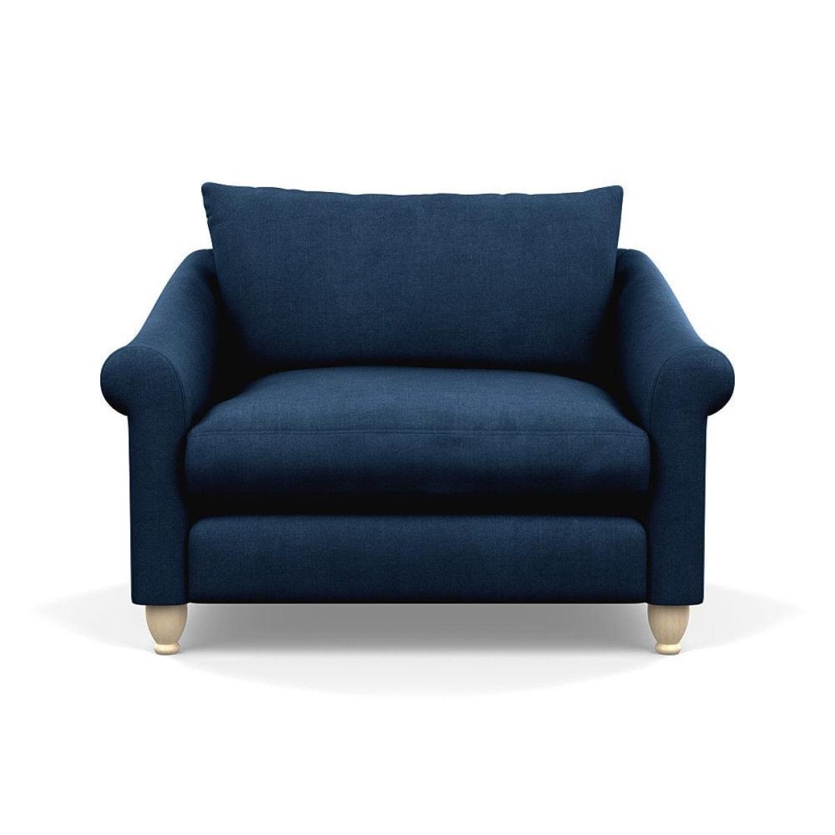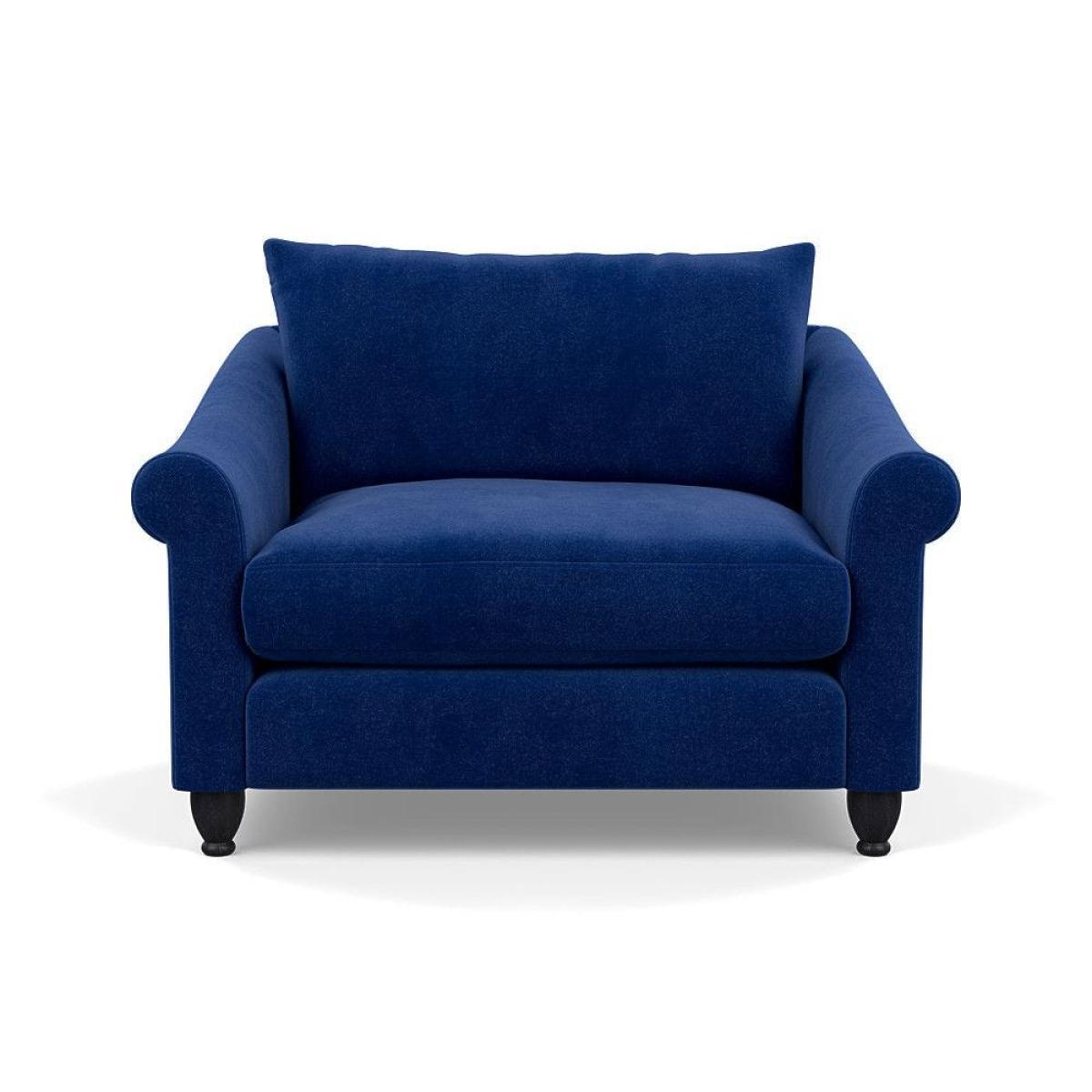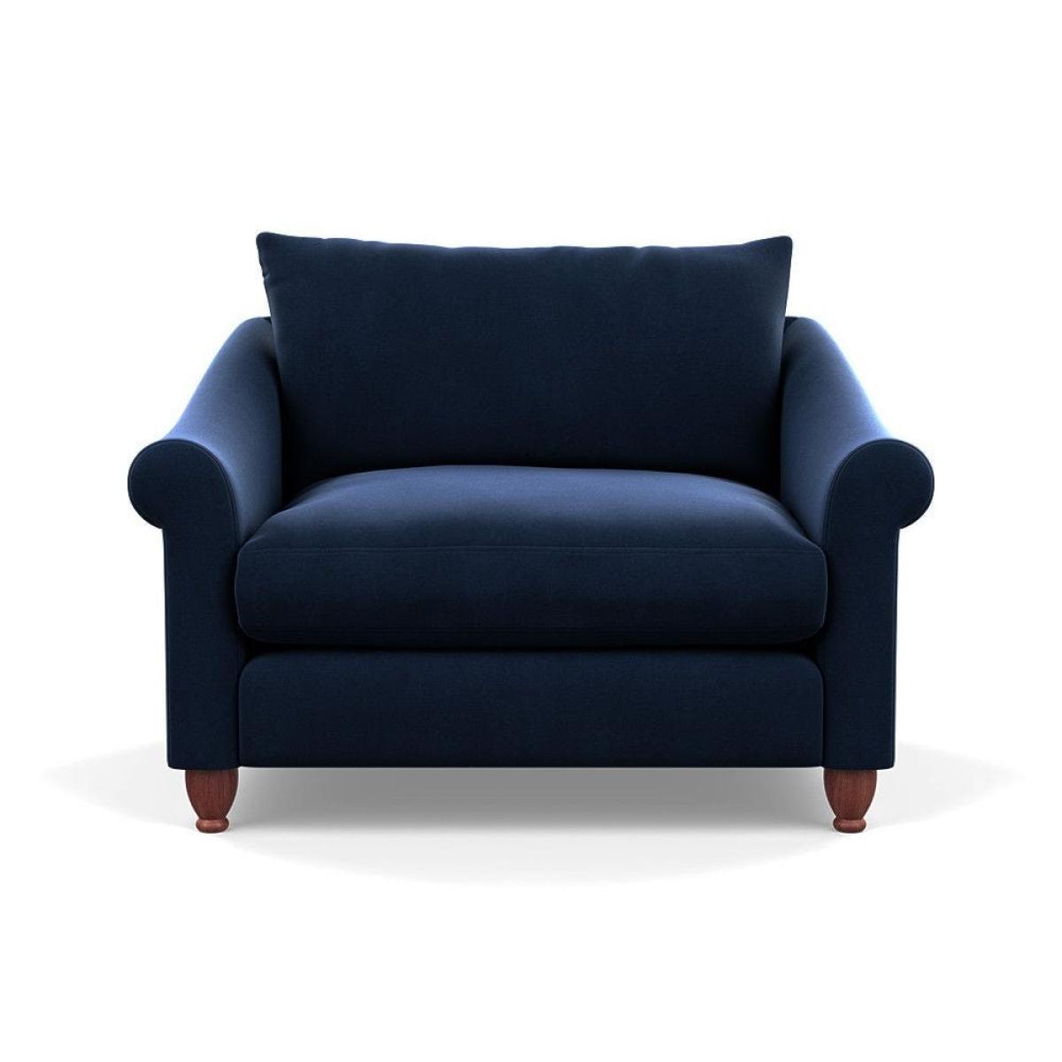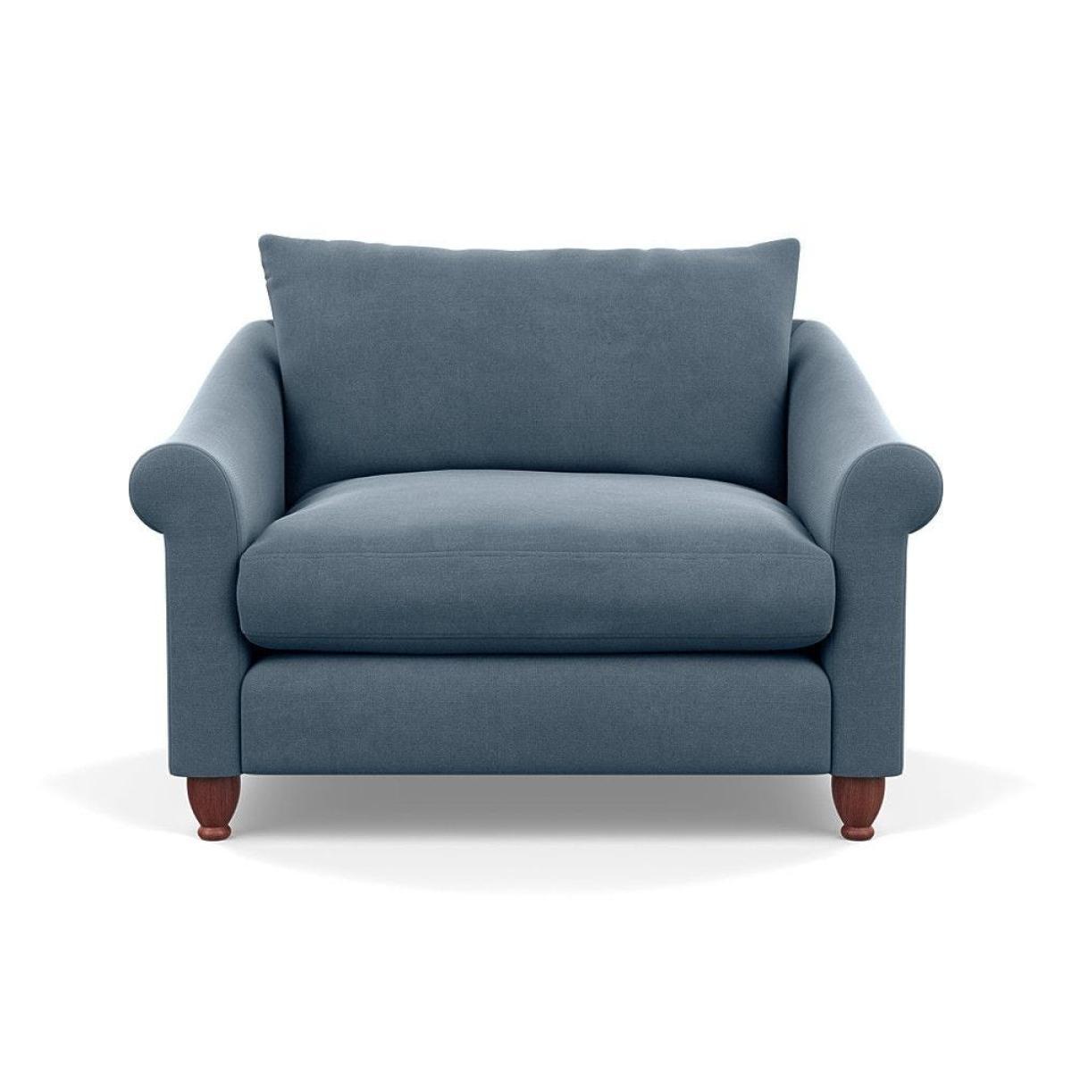 Heal's Devon Loveseat Smart Luxe Velvet Airforce Blue Dark Brown Stain Beech Feet - Heal's UK Furniture