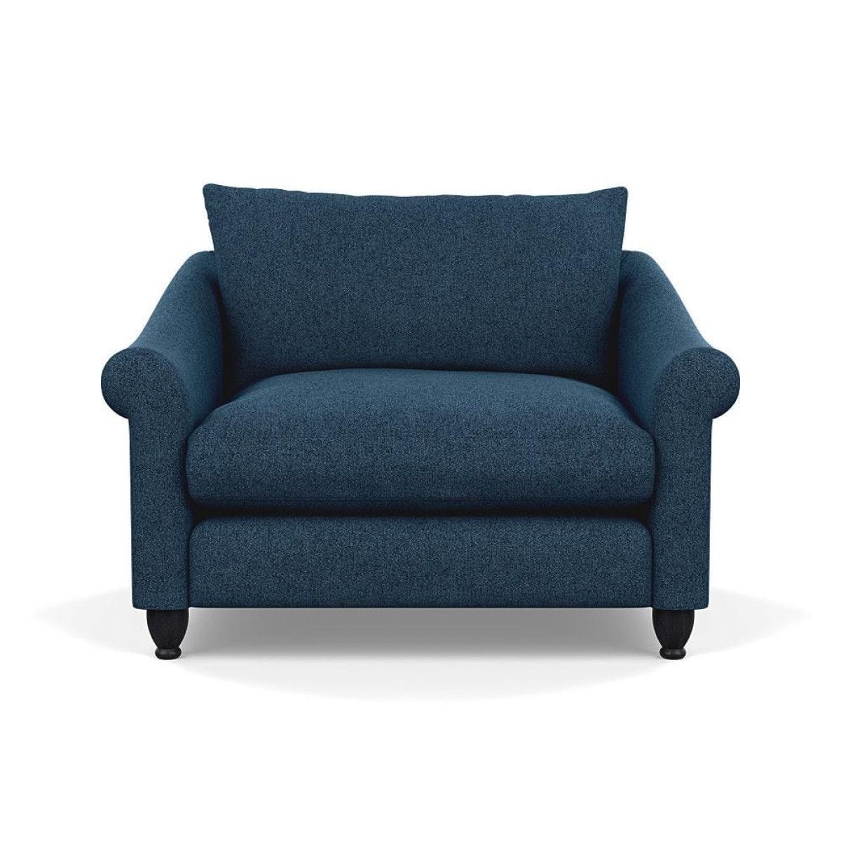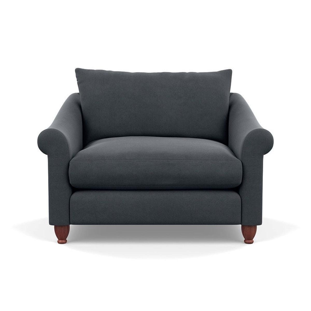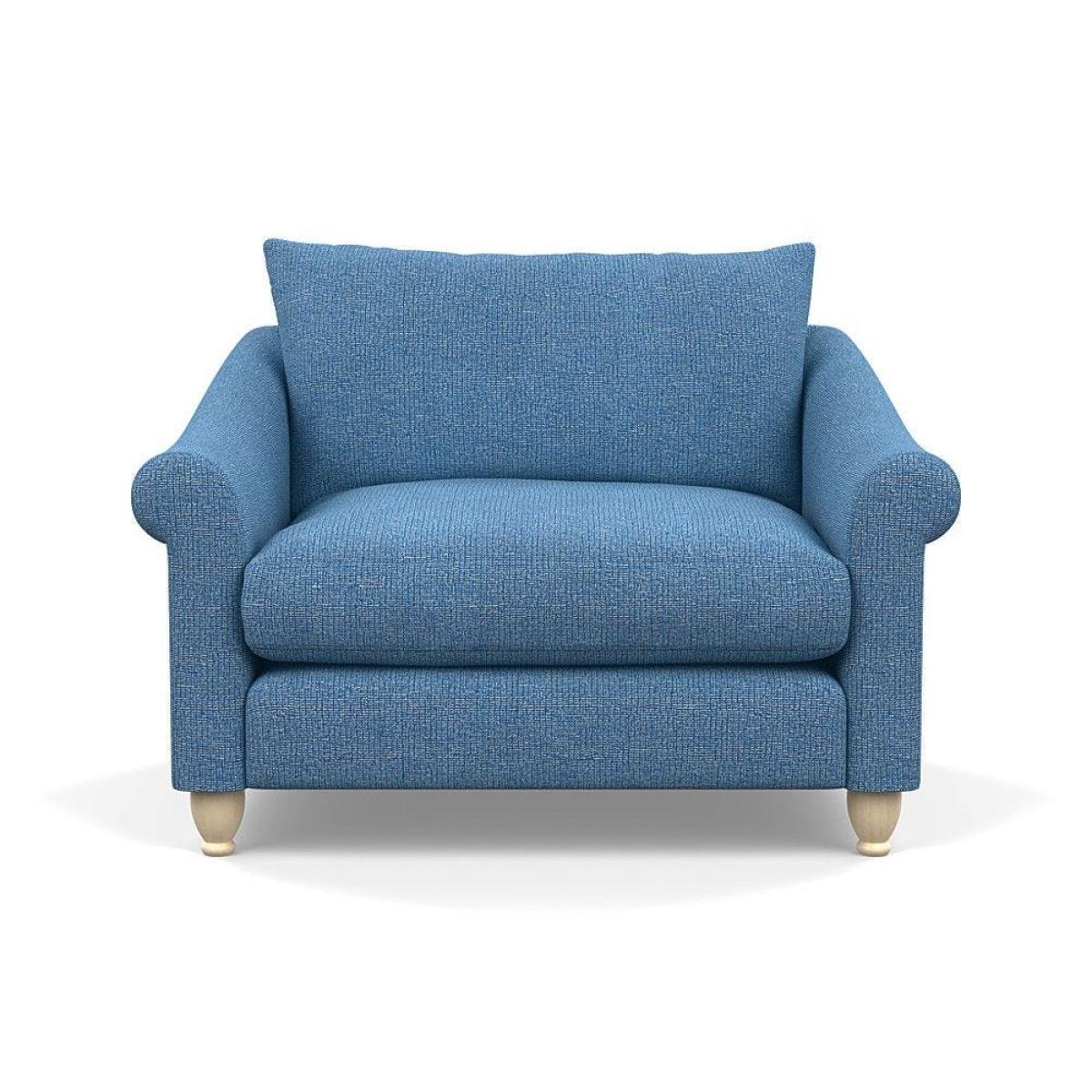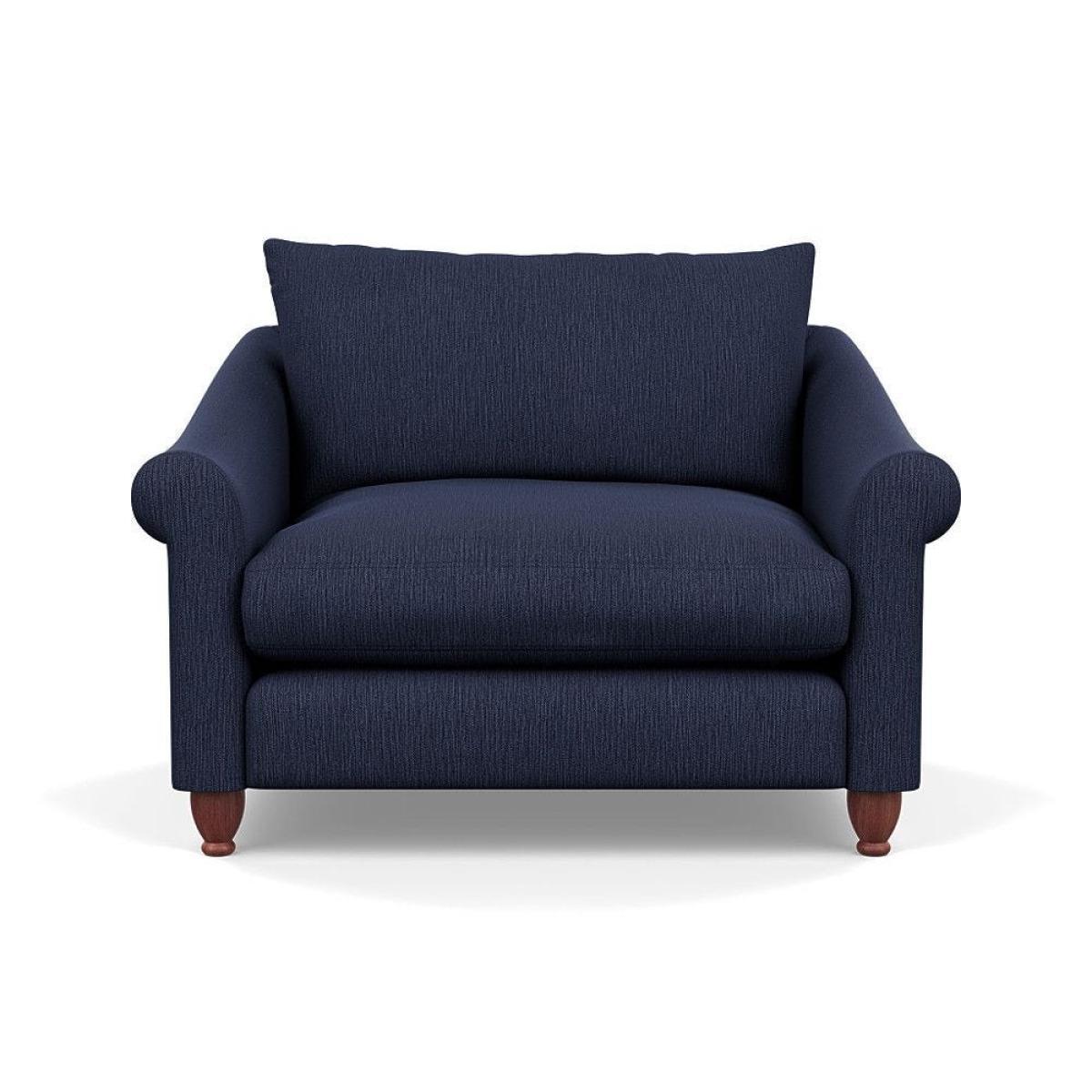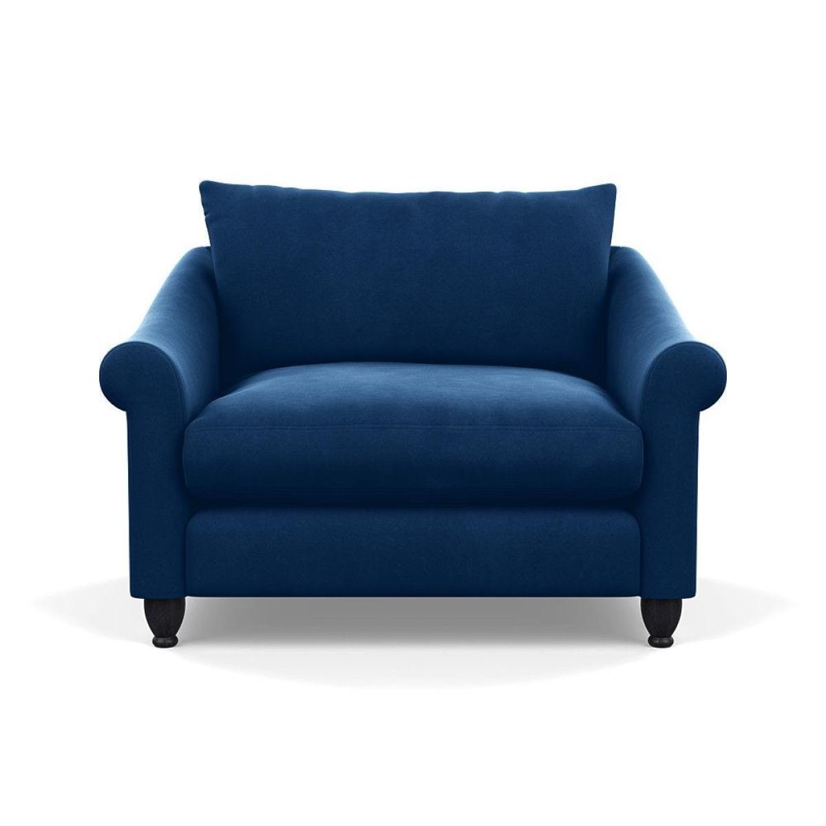 Heal's Devon Loveseat Smart Luxe Velvet Airforce Blue Dark Brown Stain Beech Feet - Heal's UK Furniture