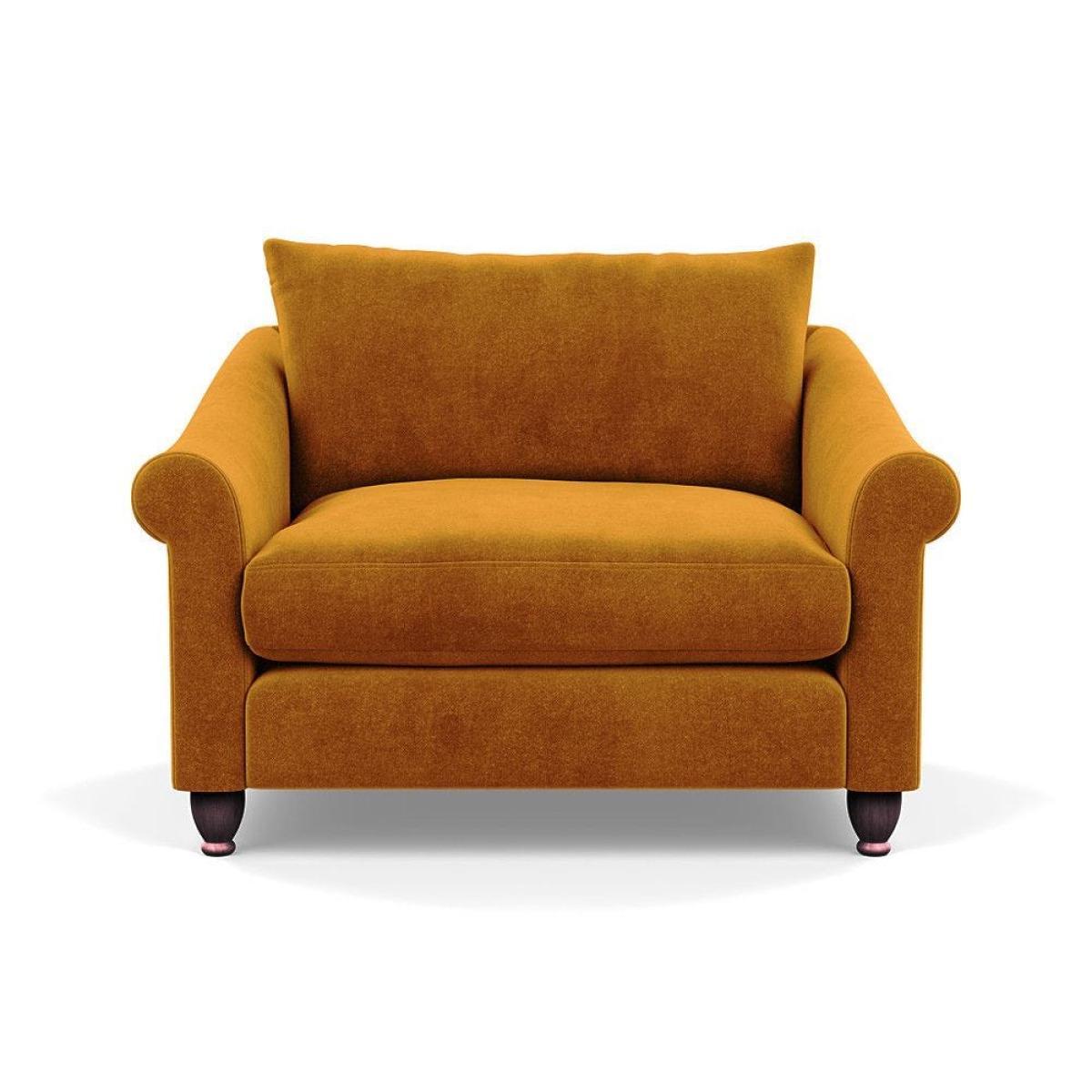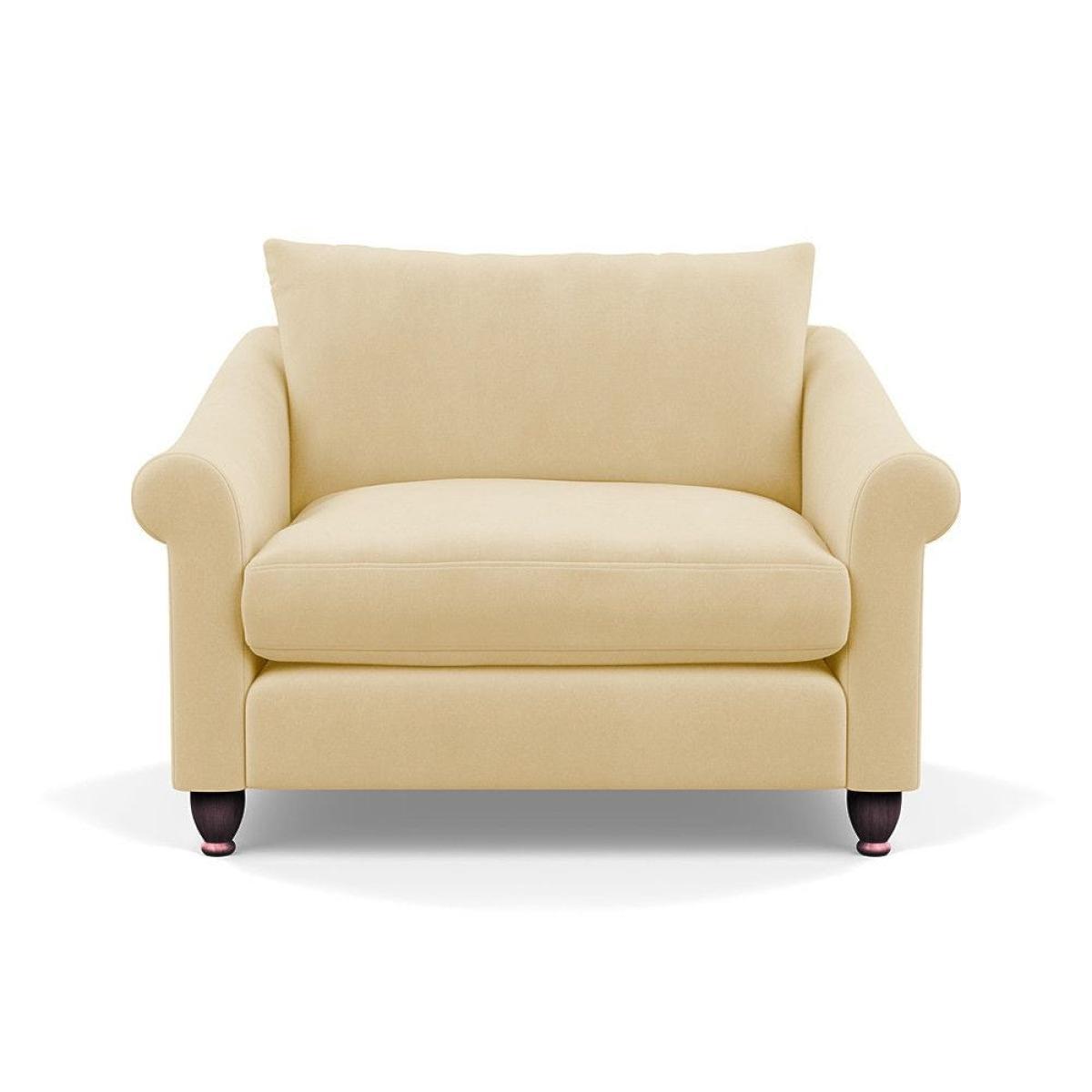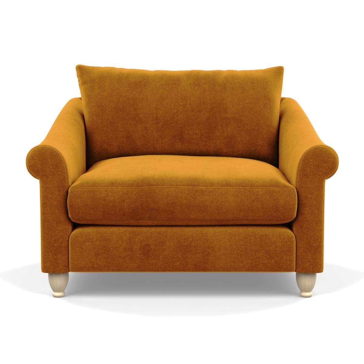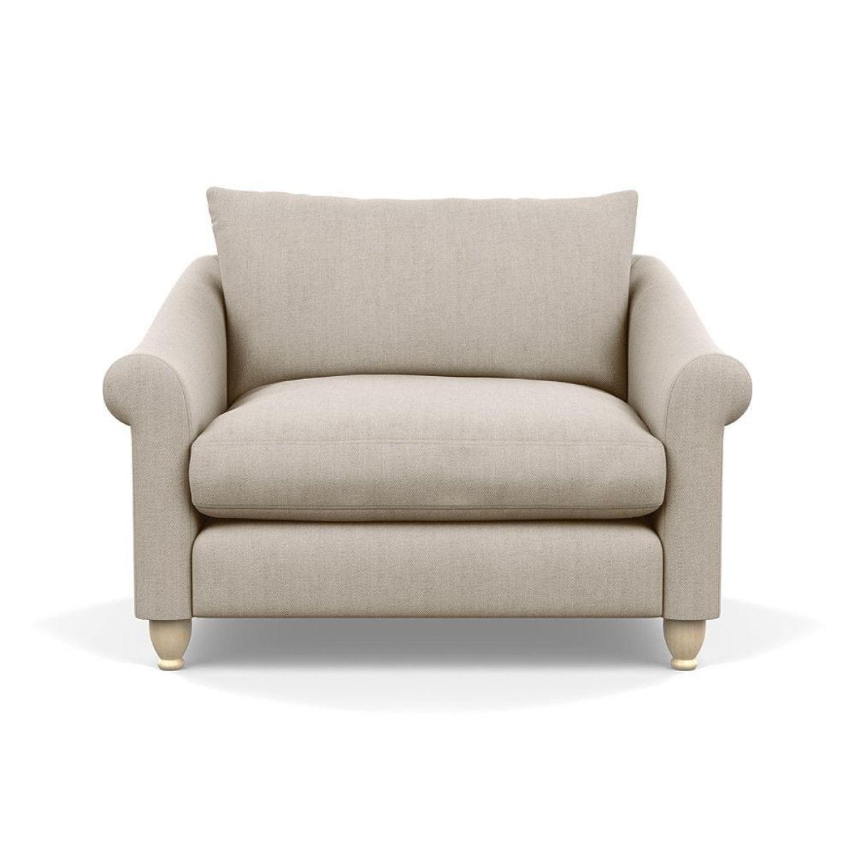 Recreating a classic British design in contemporary materials, this loveseat is part of the Heal’s exclusive Devon collection. With its scroll-armed profile, high cushioned seat back, and tapered legs, this loveseat is a true luxury to sink into. Its feather-filled cushions are available in a range of Heal’s fabrics and colours – to perfectly match your style and interior design. Pair alongside a Devon sofa for a complete contemporary look. Scatter cushions not included