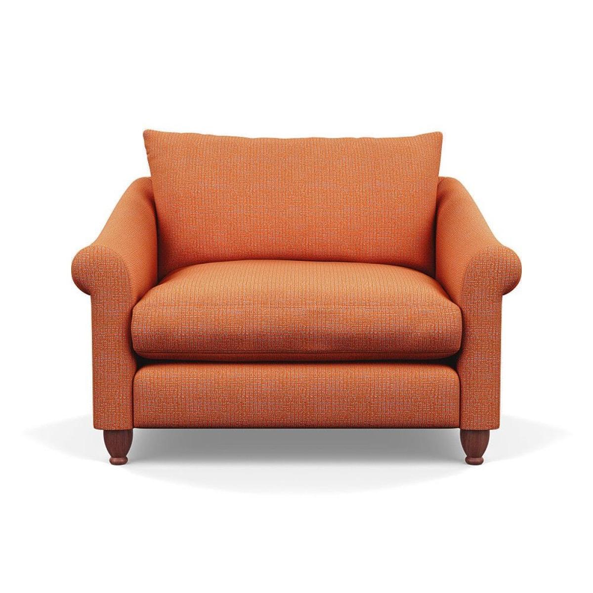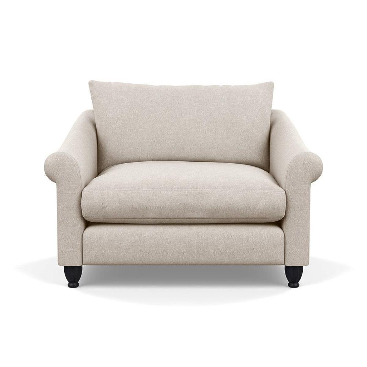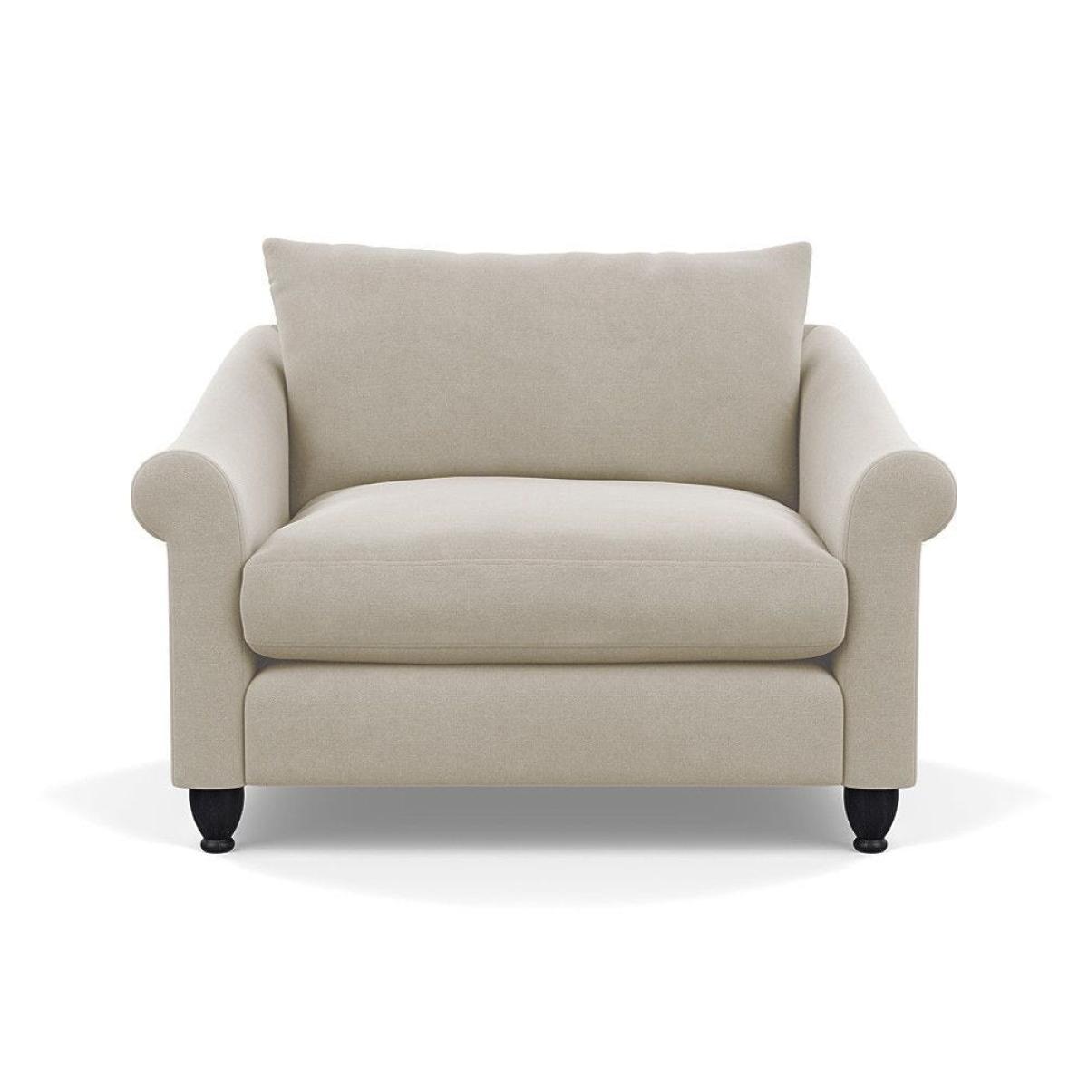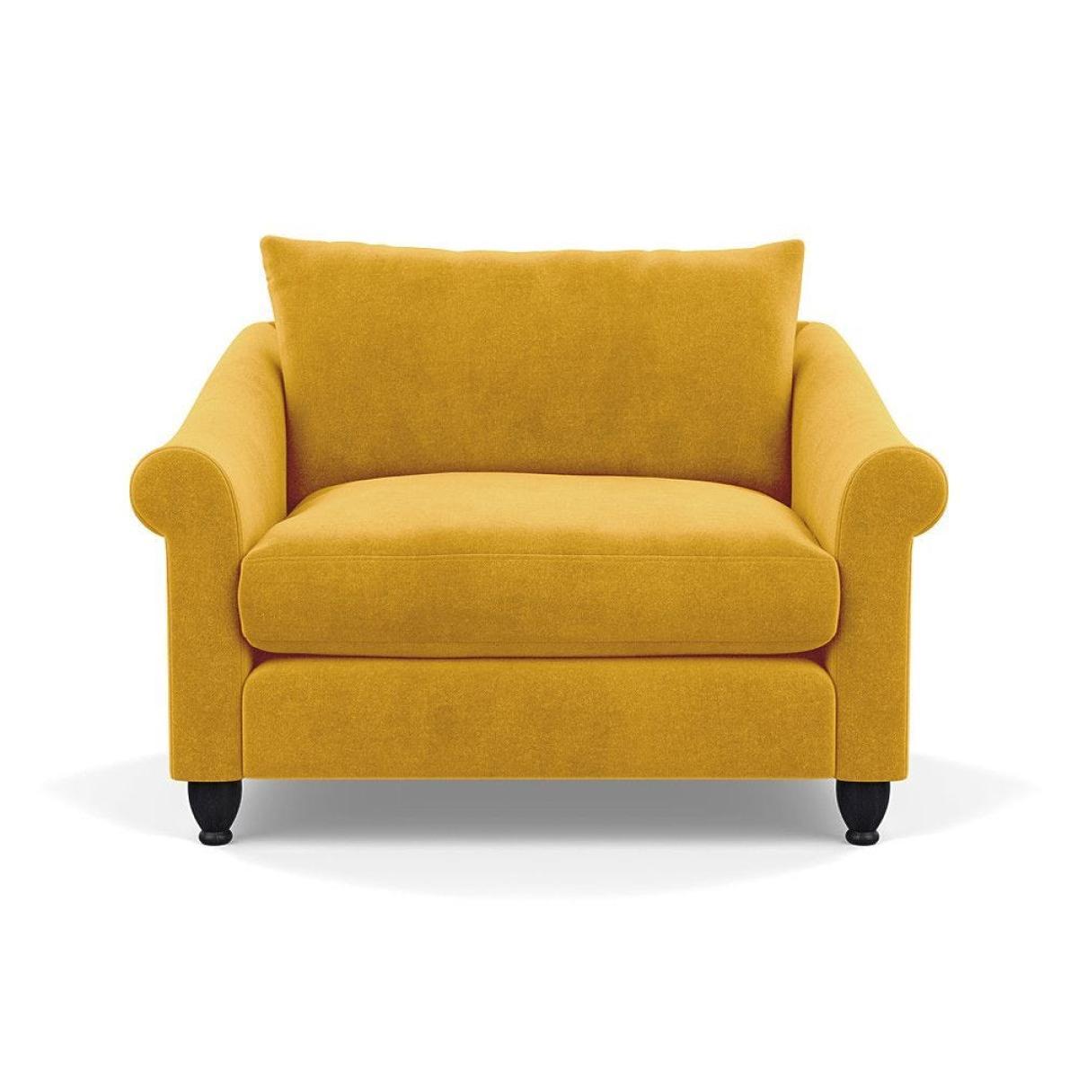 Recreating a classic British design in contemporary materials, this loveseat is part of the Heal’s exclusive Devon collection. With its scroll-armed profile, high cushioned seat back, and tapered legs, this loveseat is a true luxury to sink into. Its feather-filled cushions are available in a range of Heal’s fabrics and colours – to perfectly match your style and interior design. Pair alongside a Devon sofa for a complete contemporary look. Scatter cushions not included