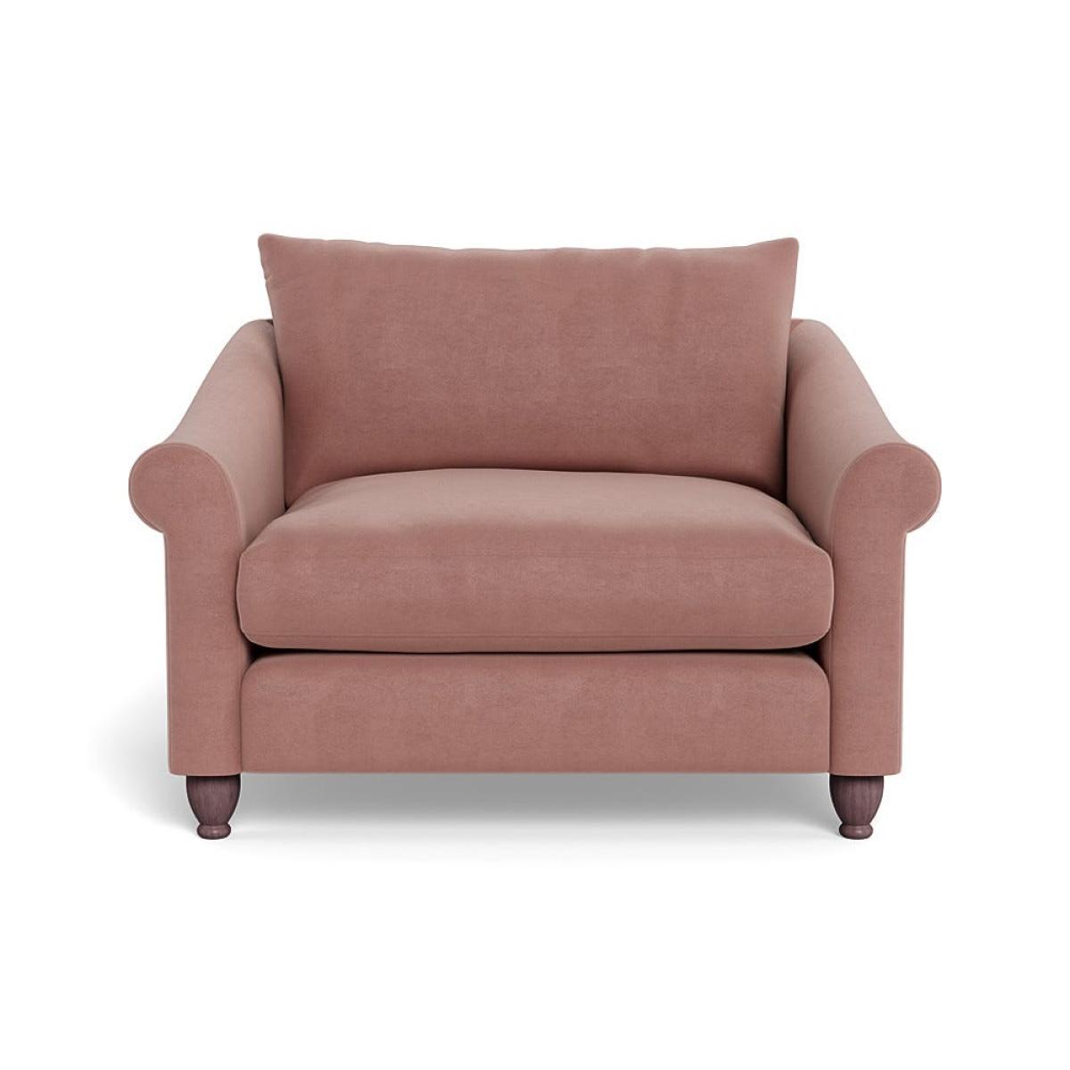 I love this loveseat for its versatility and sophisticated charm. The Dusky Pink velvet adds a plush, inviting feel, making it a great statement piece in both contemporary and traditional interiors. It works particularly well in muted colour schemes or layered with soft neutrals, but can also serve as a pop of colour in more minimalist spaces. Practical styling tips include pairing it with textured cushions or throws in contrasting fabrics for added depth, and placing it against a neutral wall to really let the colour stand out. The walnut-stained beech feet bring a warm, natural touch that complements wood or earthy-toned accents, making it a stylish and practical choice for smaller living areas or cosy corners.