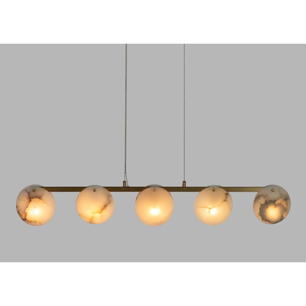 I love this long pendant because it combines elegance with modernity, making it a versatile piece for various interiors. Its brushed gold finish adds warmth and sophistication, perfect for contemporary or even transitional spaces, while the alabaster globes soften the light and create a calm, inviting atmosphere. It works well above dining tables, kitchen islands, or in larger entryways where a statement piece is desired. For styling, consider pairing it with minimalist or neutral-toned interiors to let the pendant shine, and keep surrounding lighting soft to enhance its subtle glamour. Installing at the right height is key to balancing its striking presence without overwhelming your space.