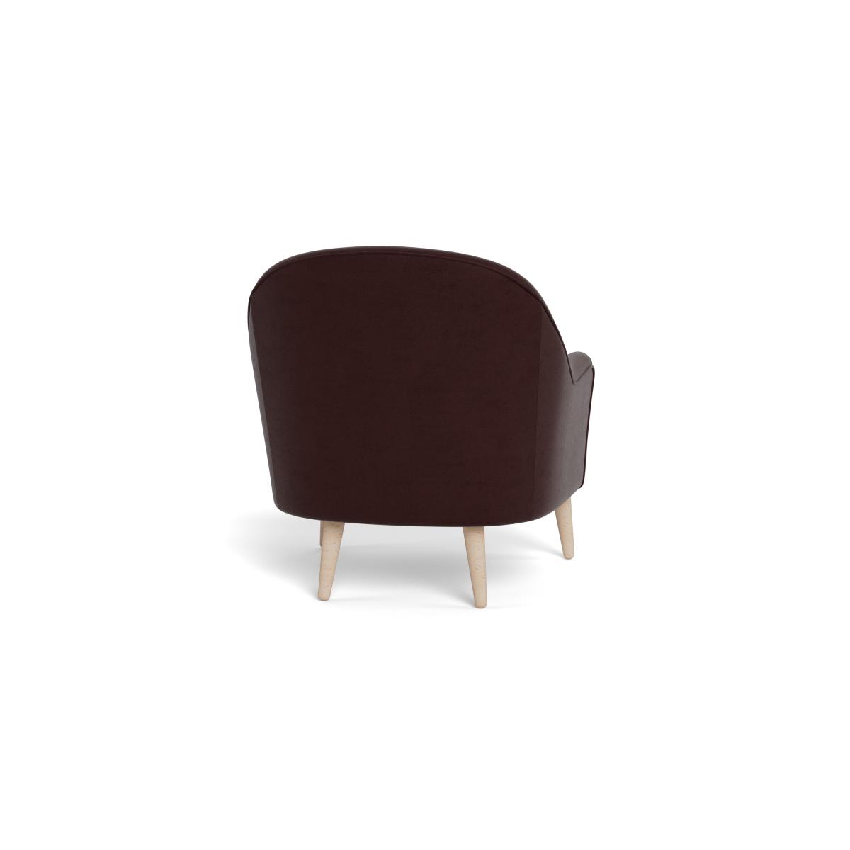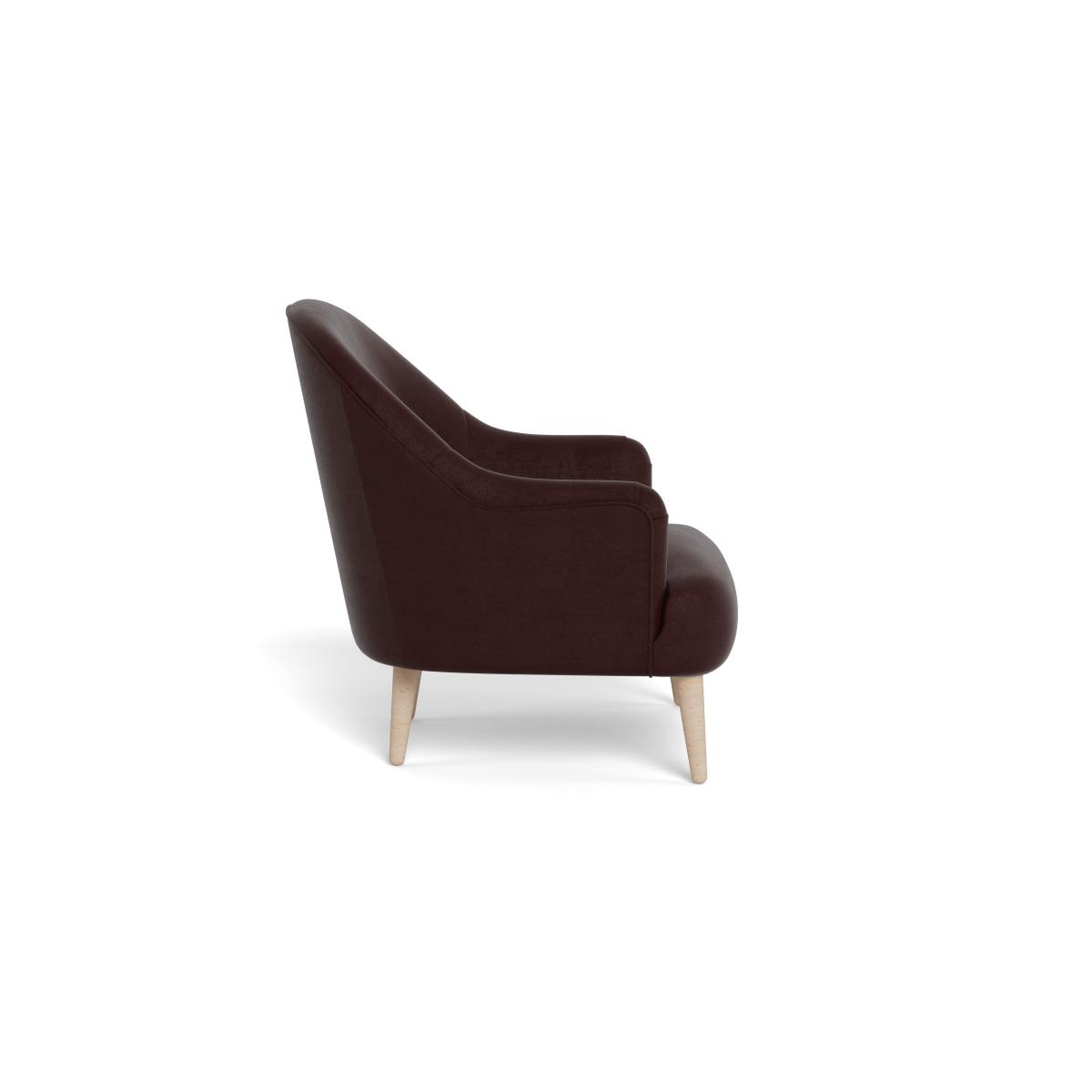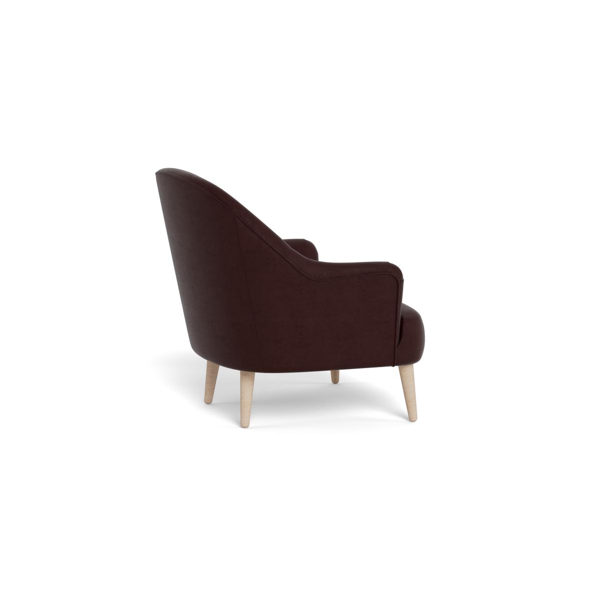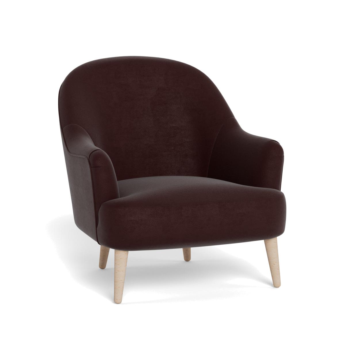 I refer to this simply as the Elgin chair - its warm acorn-toned velvet and compact, rounded profile make it a very versatile occasional seat. I love it for the way the dark upholstery balances lighter woods or pale walls, and the neat black-stained feet lend it an elevated, contemporary look. It sits comfortably in Scandi-inspired living rooms, mid-century schemes or even more eclectic spaces as a cosy reading perch. Keep styling simple: a slim side table in oak or brass, a low-pile rug in neutral tones and a single, textured throw or cushion to add depth without overwhelming its clean lines.