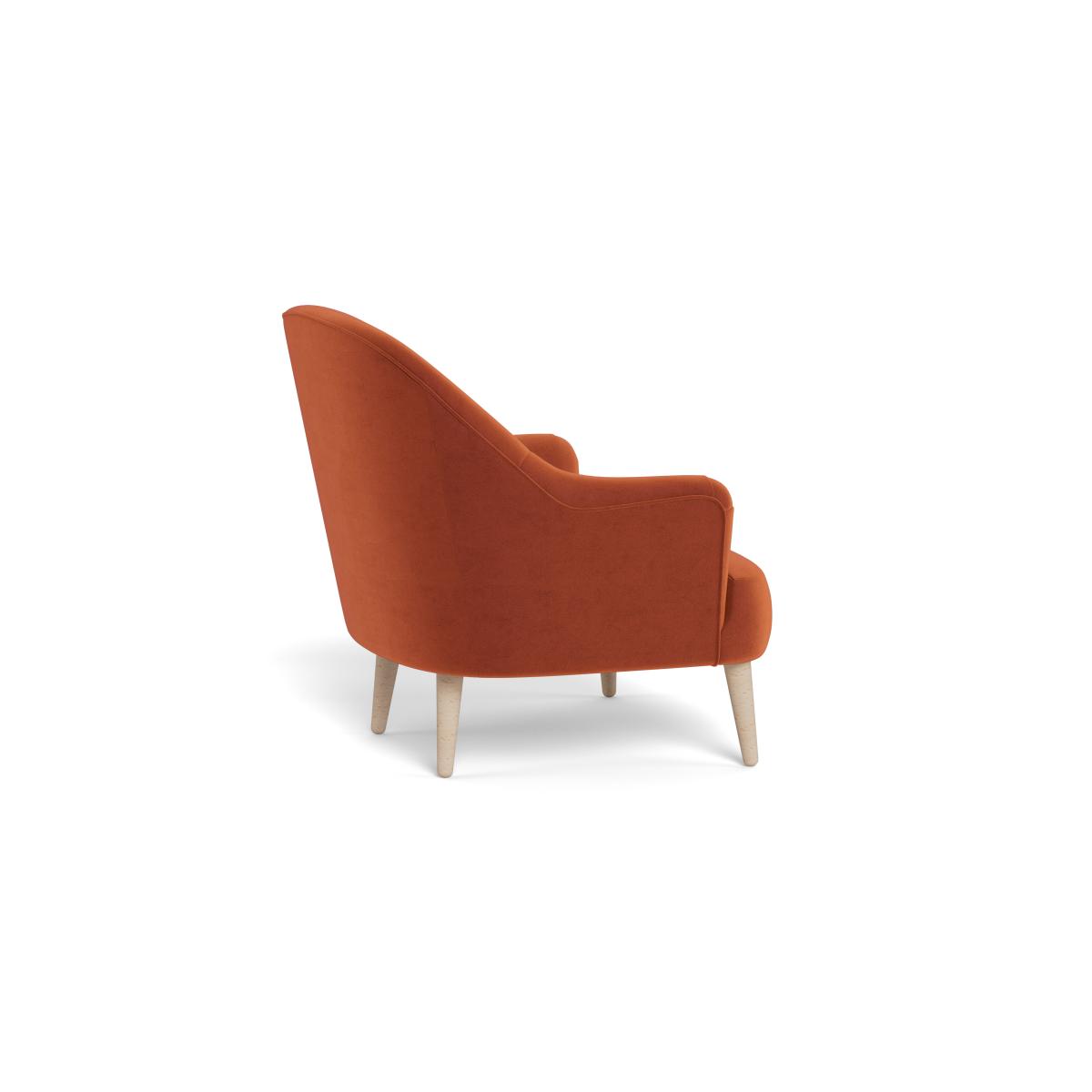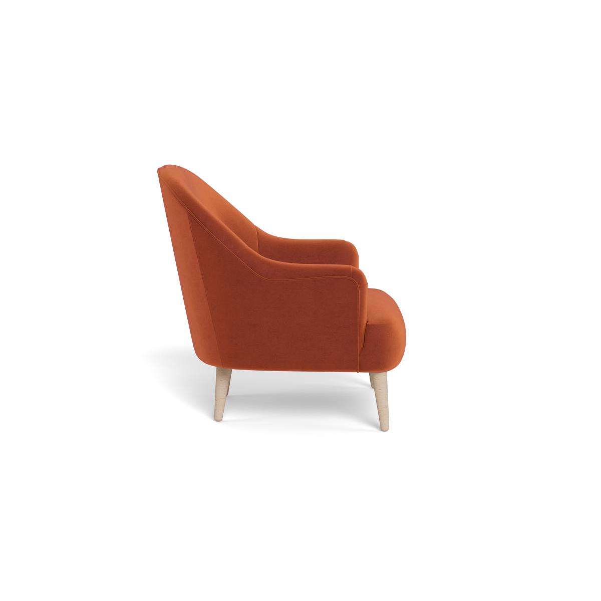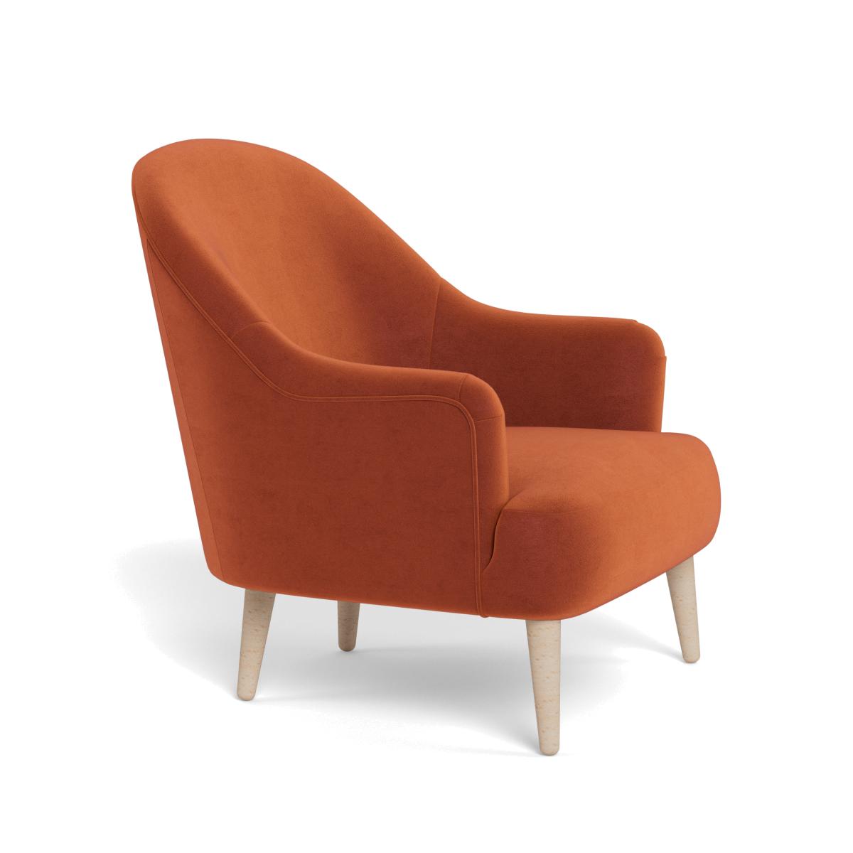 I’m a big fan of this russet Elgin chair for adding a warm, modern touch without feeling too bold. The soft velvet finish pairs beautifully with muted neutrals or deep jewel tones, and the walnut-stained legs ground the look in natural timber. It sits well in both contemporary and mid-century schemes - think alongside a sleek metal coffee table or a vintage oak bookshelf. For styling, drape a textured throw over one arm and tuck in a small lumbar cushion in a contrasting hue (mustard or teal work nicely) to break up the tone and add extra comfort.