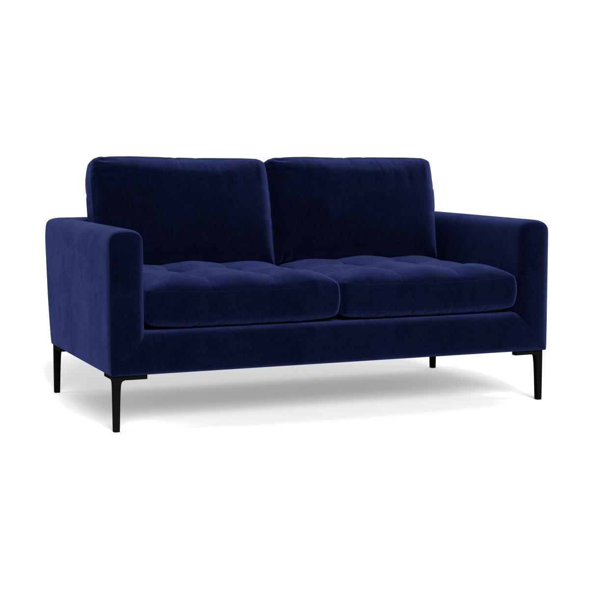 I love the Eton two-seater for its sophisticated combination of smart luxe velvet and brass feet, which elevates its visual appeal. It works particularly well in contemporary or modern interiors, adding a touch of elegance without overwhelming the space. When styling, consider pairing it with neutral or muted tones to let the deep midnight blue pop, or contrast with jewel tones for a more opulent look. Practical tips include accessorising with textured cushions or throws to soften its form, and placing it against a bold or patterned wallpaper to make it a statement piece. Its sleek legs also make it easier to position within various room layouts, maximising space and functionality.