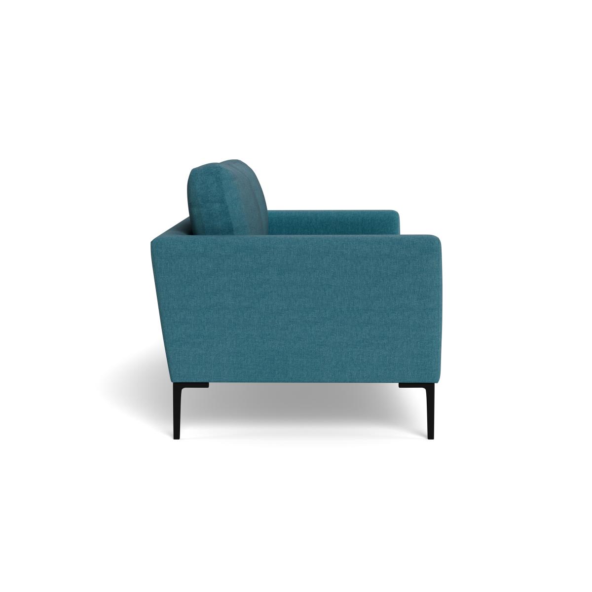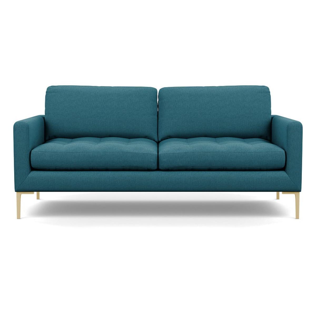 I love this sofa for its versatile yet contemporary appeal, especially with the brushed cotton in Cadet, which adds a subtle textured finish that feels both cosy and stylish. Its clean lines and slender black legs make it a great choice for modern interiors, but it can also work well in more eclectic or minimal schemes. When styling around it, consider neutral or warm-toned accessories to complement the cotton fabric, and add a statement centrepiece or textured cushions for visual interest. Practical tips include pairing it with a patterned rug or layered throws for added warmth and personality, while the sleek brass feet give it a slightly luxurious edge that elevates the overall look without overpowering a space.