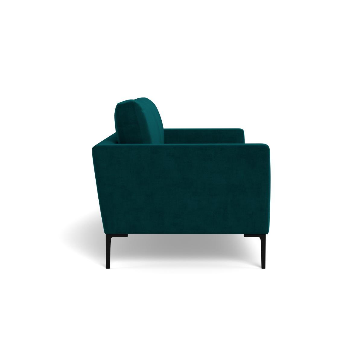I love this sofa for its sophisticated yet contemporary look. The velvet in Jade adds a rich pop of colour that enlivens both modern and traditional interiors. It works particularly well in neutral or pared-back schemes, where the colour can be a statement piece, but also pairs beautifully in eclectic or luxe settings. Practical styling tips include accessorising with textured cushions or a cosy throw to highlight the velvet’s plush feel. Its sleek design and brass feet give it a refined edge, making it versatile for both chilled-out living rooms and more polished, formal spaces.