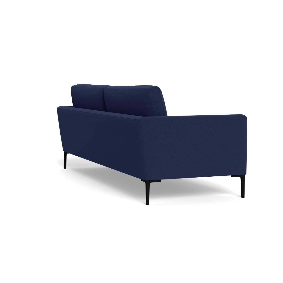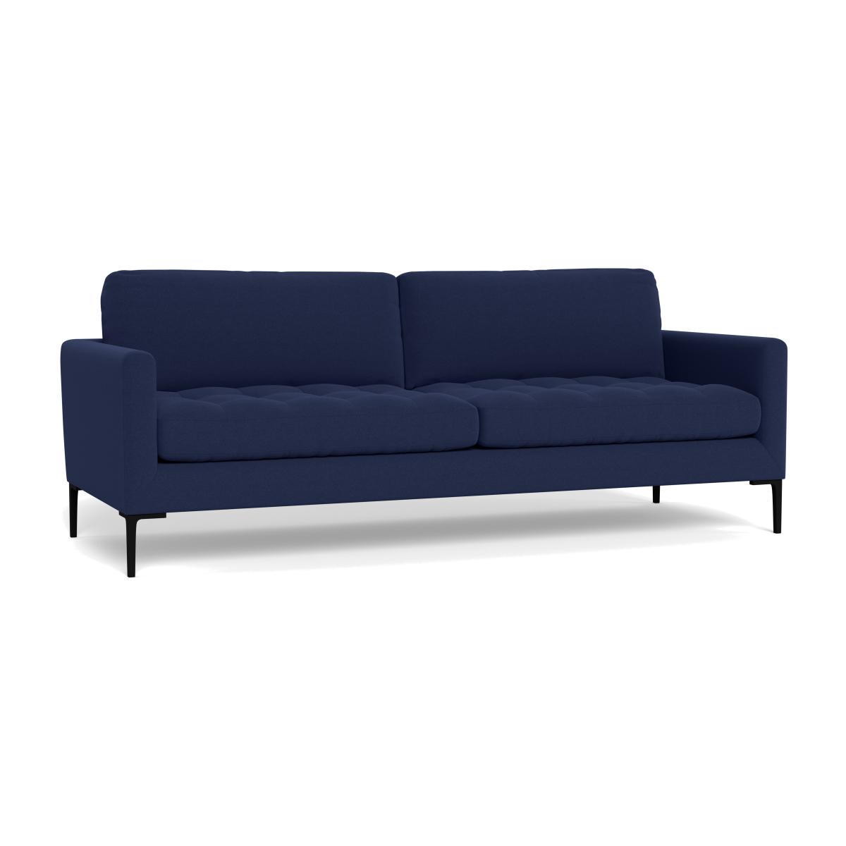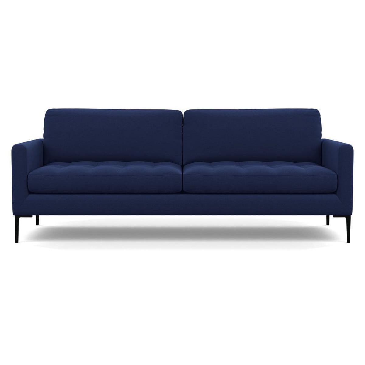 I love this sofa for its timeless elegance and versatility. The melton wool in a rich navy offers a luxurious texture that pairs well with both contemporary and classic interiors, making it a flexible piece for various colour schemes. Its clean lines and understated silhouette allow it to sit comfortably in modern, minimalist spaces, while the deep hue adds a touch of sophistication. Practical styling tips include accessorising with patterned cushions or throws in contrasting tones to add warmth and personality. Pairing it with sleek side tables and statement lighting creates a balanced, inviting living area. Its black feet are a subtle detail that grounds the piece, making it suitable for both open-plan living and more cosseted settings.