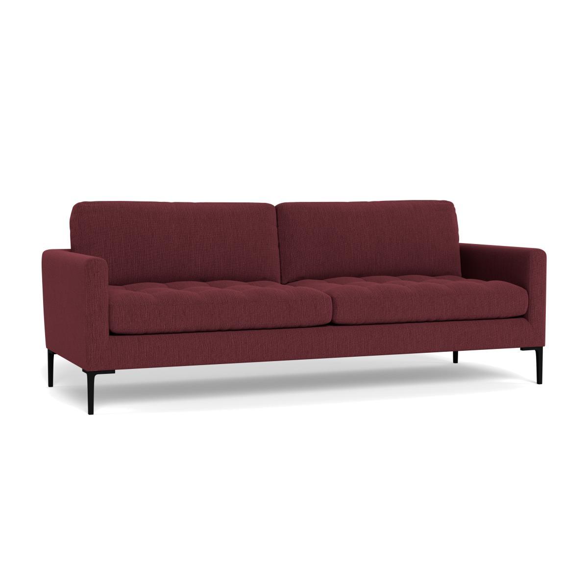 I love the Eton sofa for its clean, modern lines and versatile maroon linen mix fabric, which adds warmth and richness to a variety of interiors. The brass feet introduce a subtle touch of sophistication, making it suitable both in contemporary spaces and more eclectic, vintage-inspired settings. It works particularly well in open-plan living rooms, sitting comfortably with everything from statement artworks to textured throws. For styling tips, consider pairing it with neutral-toned cushions or patterned textiles to add visual interest, and position it in a well-lit corner to showcase its colour and sleek design. Its size and shape make it a practical choice for family rooms or lounge areas that need a stylish but functional seating option.