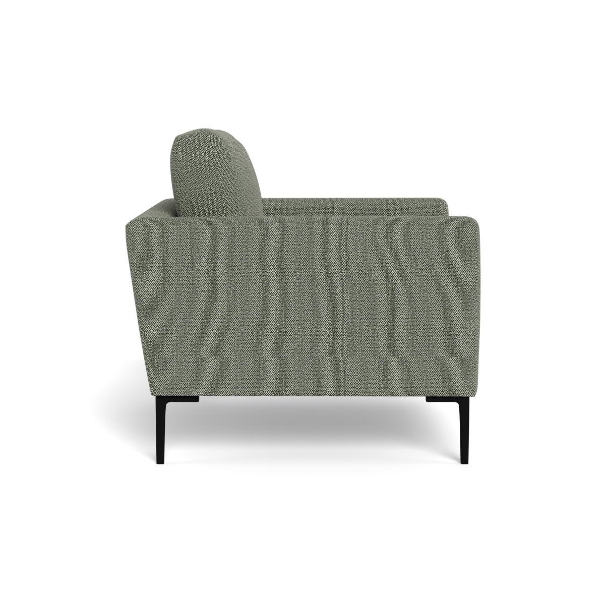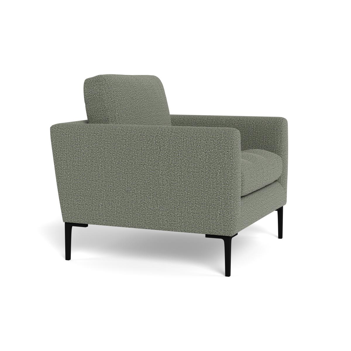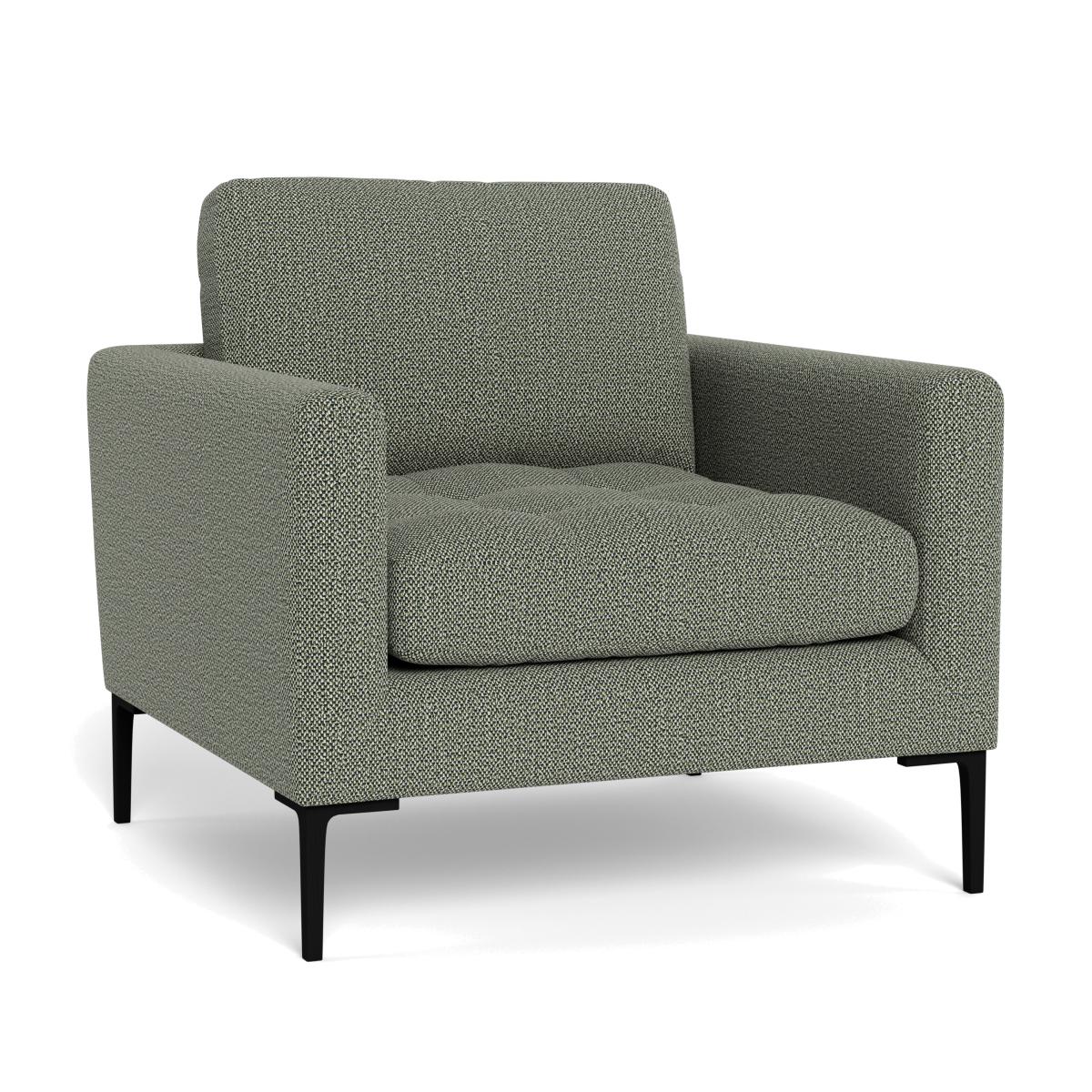 I’d call this our Eton boucle armchair, and what stands out is that textured tweed in lapis - it brings just enough colour without overpowering a scheme. The slim brass-coloured feet lift it off the floor, giving it a lighter feel that works brilliantly in both modern and mid-century styles. Pair it with a simple oak side table or a low-profile console, then add a cream wool throw and a charcoal linen cushion for contrast. It’s firm enough for daily use, so it’s ideal in a snug living room or a study corner. Keep surrounding accessories minimal - think a single sculptural lamp or a stack of art books - to let the chair’s texture do the talking.
