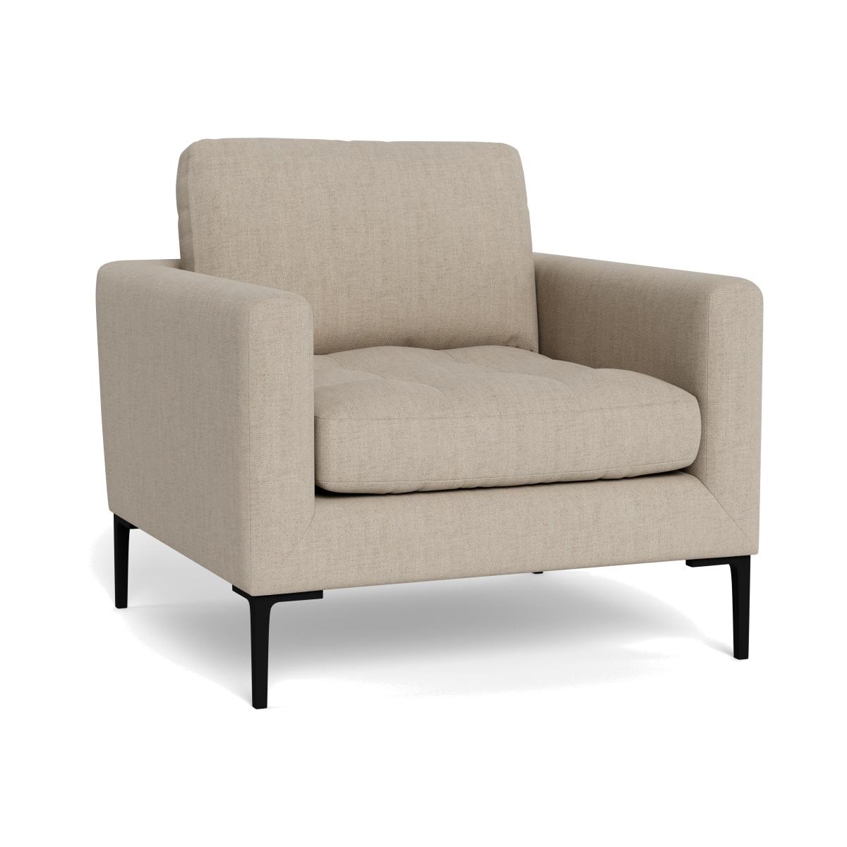 I’m a fan of the Eton armchair in putty because its broad-weave fabric and slim brass feet strike a nice balance between comfort and a clean, modern look. Its neutral hue makes it versatile in contemporary, Scandi or soft-industrial schemes, especially when paired with light timbers and simple metal accents. For practical styling, layer a textured throw over one arm and add a cushion in a boucle or velvet to introduce subtle contrast. Tuck it beside a slim side table or a sculptural floor lamp to form a compact reading nook, or slot it into a bedroom corner for extra seating without overwhelming the space.