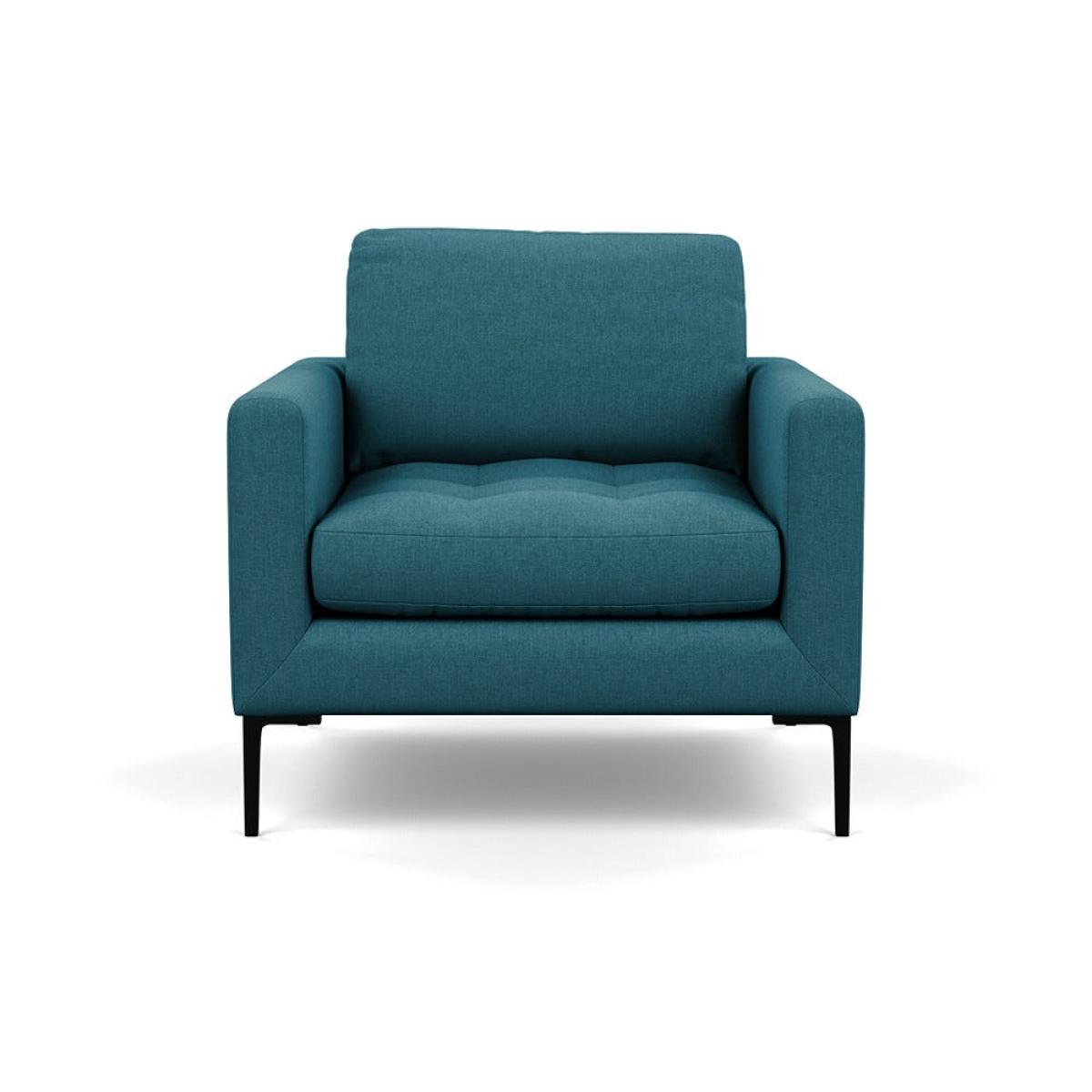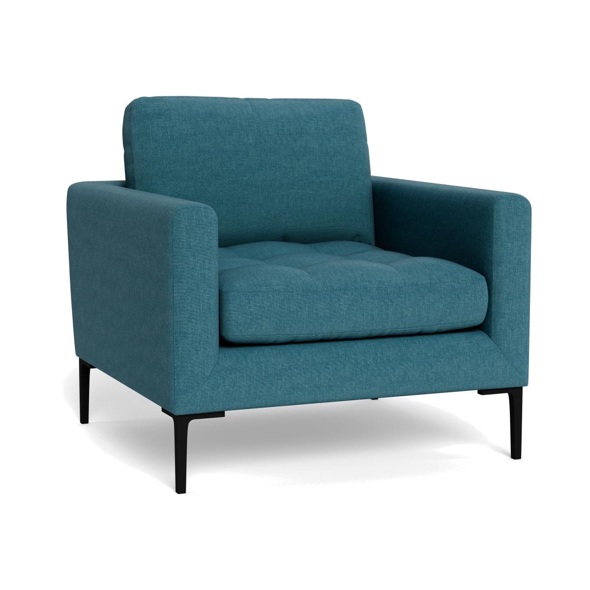 I’m a fan of the Eton armchair for its clean lines and sturdy cotton upholstery - the cadet shade adds a subtle pop without overwhelming a room. Its slim, black metal legs give it a contemporary edge, making it a natural fit in modern or Scandi‐inspired living spaces, but it also works well against warmer woods in an eclectic scheme. For styling, pair it with a simple wool throw draped over one arm and a geometric cushion in muted tones to emphasise the chair’s shape. Position it near a low-profile side table and a floor lamp for a cosy reading nook, or match two in a larger lounge for easy, symmetrical seating.