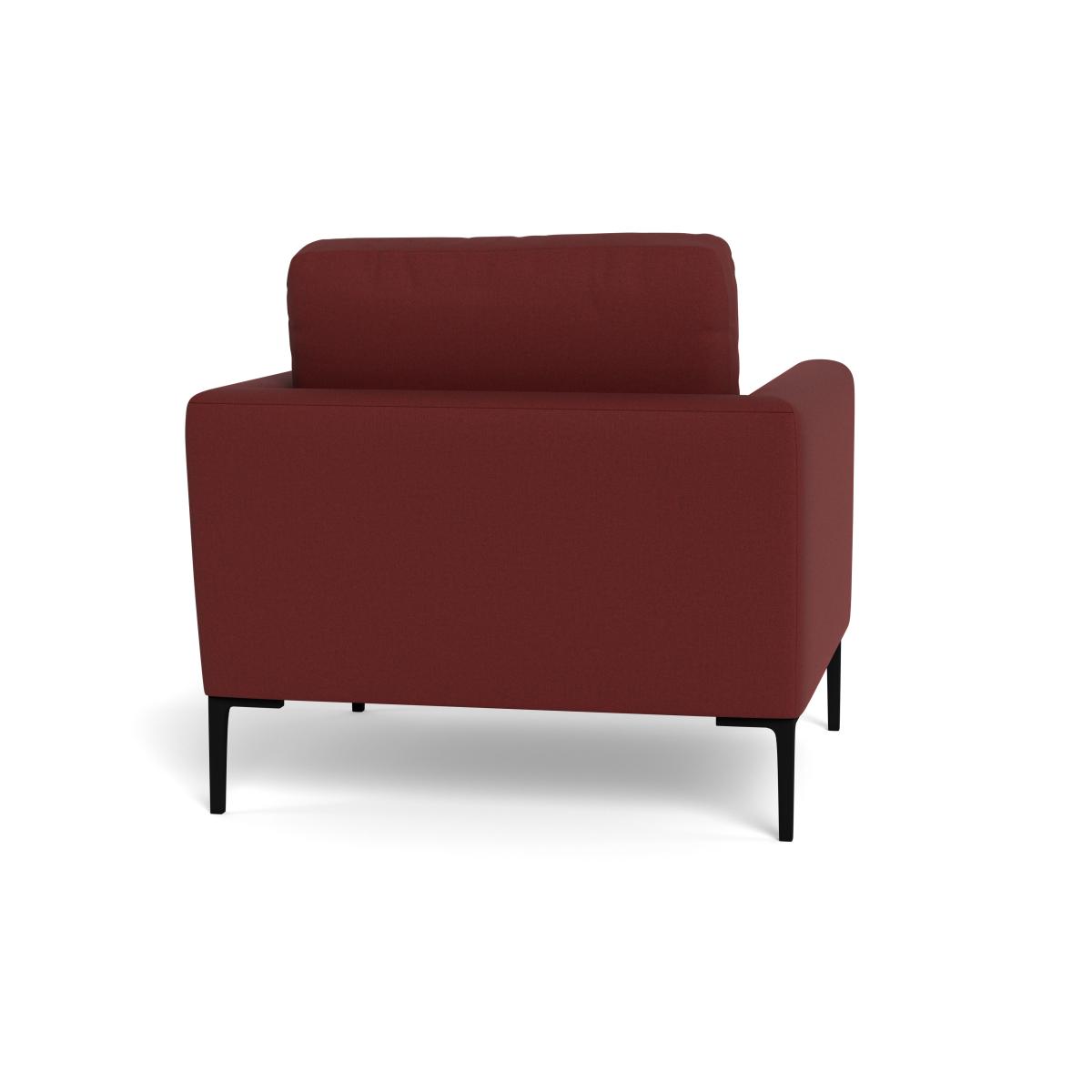 I’m a big fan of the Eton armchair in that deep red-it’s clean-lined yet comfortable, and the slender metal legs (or brass feet on some finishes) keep it feeling light rather than bulky. The linen-cotton mix gives it just enough texture to sit happily in both contemporary Scandi schemes or more eclectic, layered rooms. Pair it with a soft wool throw in a neutral hue and a couple of graphic cushions to balance its colour intensity. It works equally well as a solo reading chair next to a slim-legged side table and statement lamp, or in a two-seater grouping with a low coffee table and sculptural accessories to bring the look together.