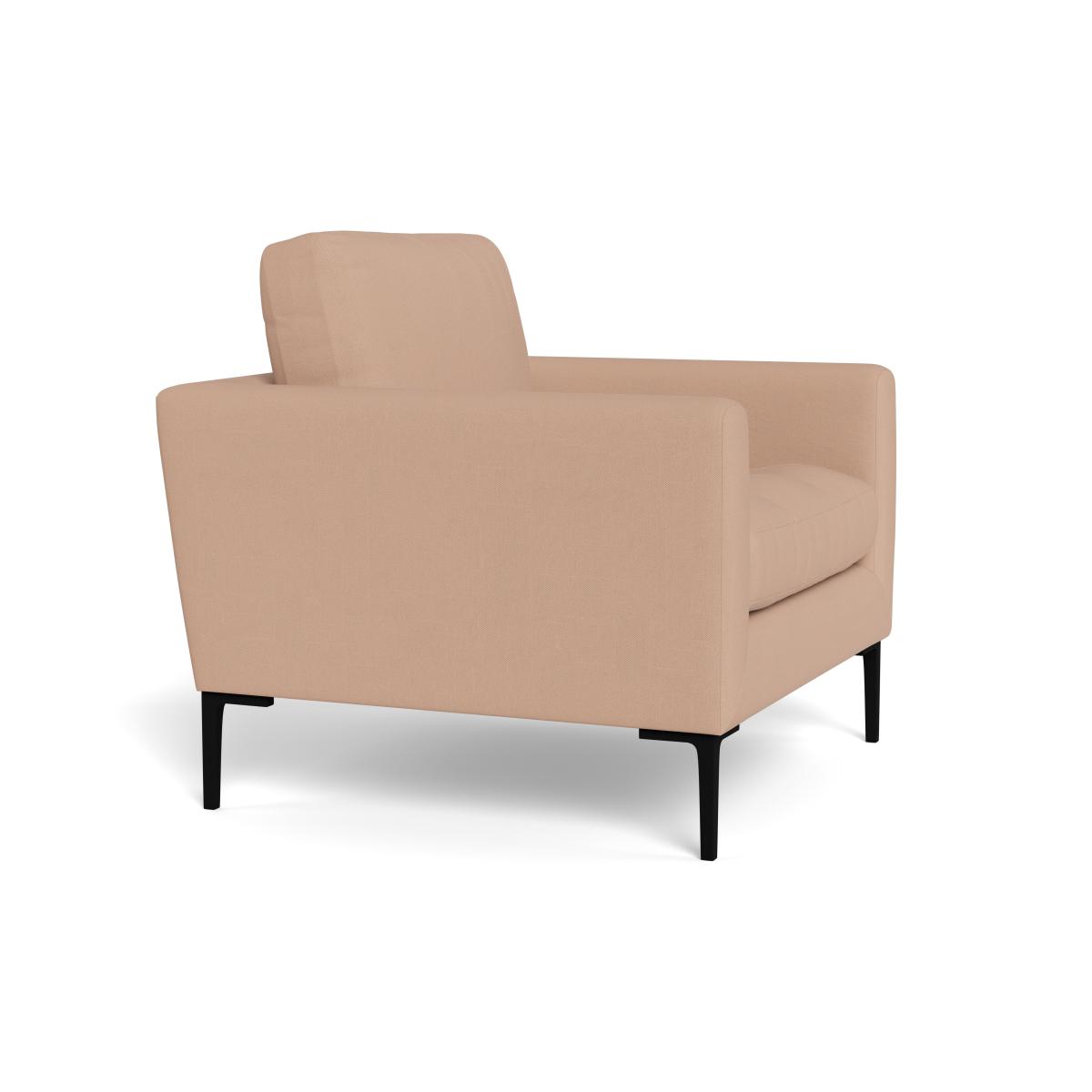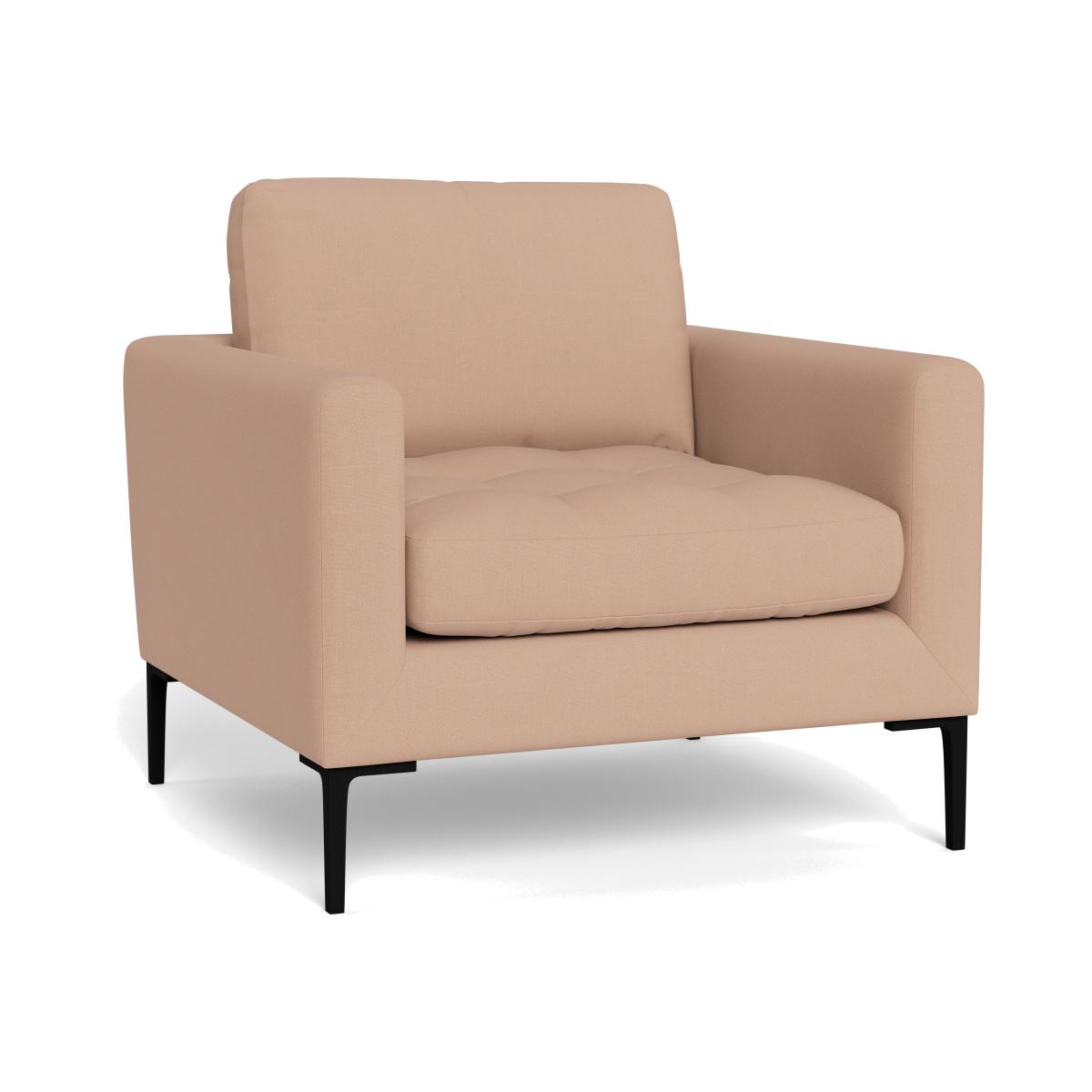 I tend to call it the Eton chair, and what I really like is its clean-lined frame and the soft linen-cotton mix, which feels both relaxed and smart. The subtle brass feet add a touch of warmth without shouting for attention, making it a versatile piece that suits Scandi-inspired, modern-classic or even pared-back traditional interiors. For styling, position it beside a slim oak or marble side table and pop on a contrasting cushion in forest green or deep navy. A neutral wool throw casually draped over one armrest adds both texture and comfort, while any brass or black-metal accessories elsewhere in the room will echo those legs and pull the look together.
