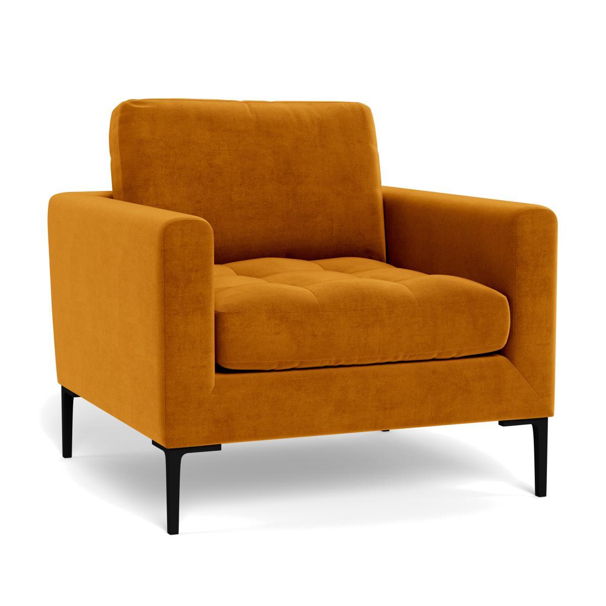 Heal's Eton Armchair Smart Luxe Velvet Cognac Black Feet - Heal's UK Furniture