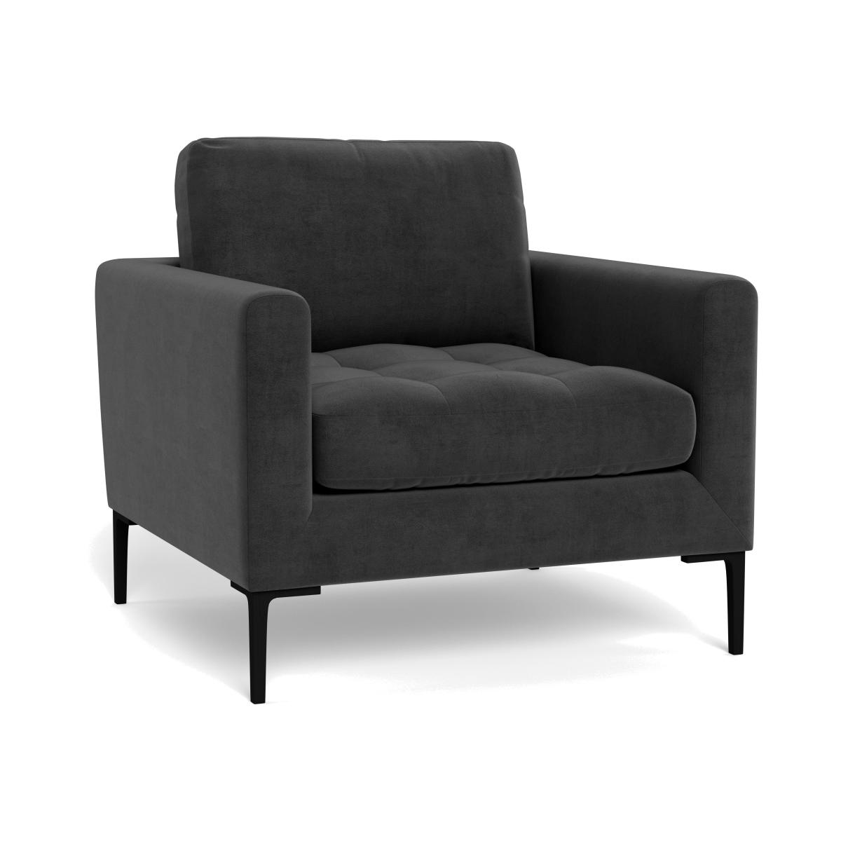 I’m a big fan of the Eton armchair for its neat, squared-off silhouette and sumptuously soft velvet - it instantly lifts a living room or snug without feeling fussy. The slim metal feet in a nickel-brass finish give it a light, modern profile that works equally well in contemporary, Scandi-inspired or mid-century settings. For styling, tuck a fine-knit throw over one arm and add a small lumbar cushion in a contrasting hue or pattern for visual interest. Position it beside a slimline side table or a minimal floor lamp to create a cosy reading corner, and balance the look with natural textures - think jute rug or stoneware accessories - to stop the velvet from overwhelming the scheme.